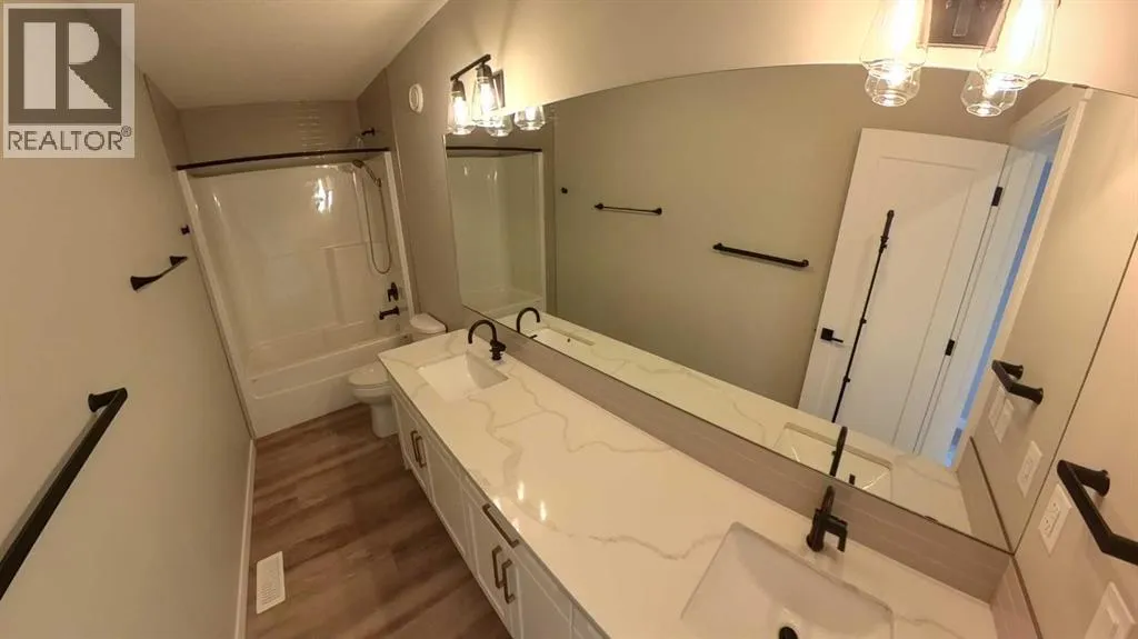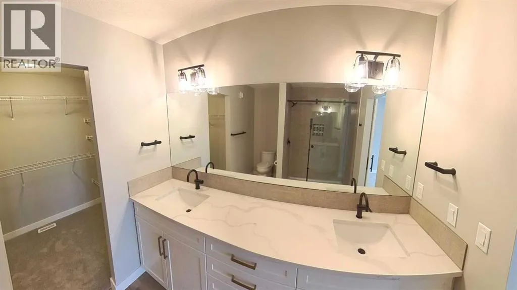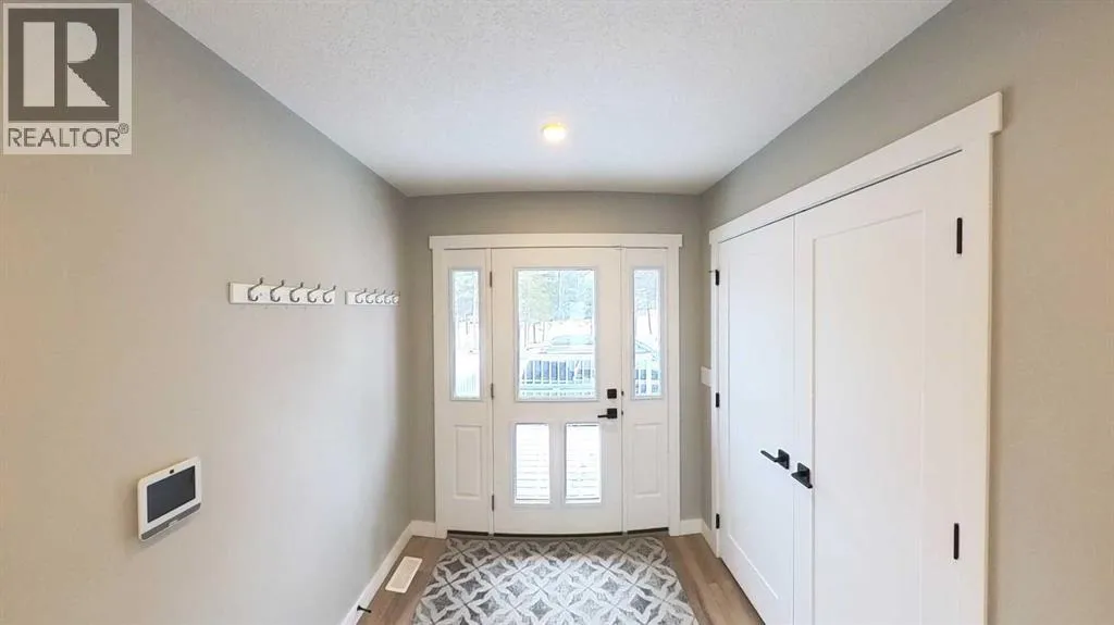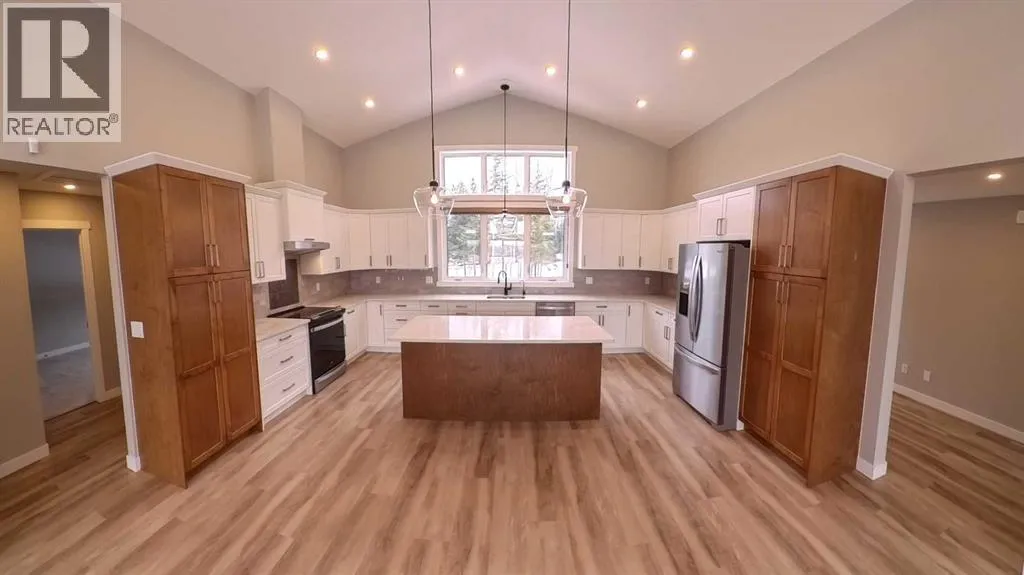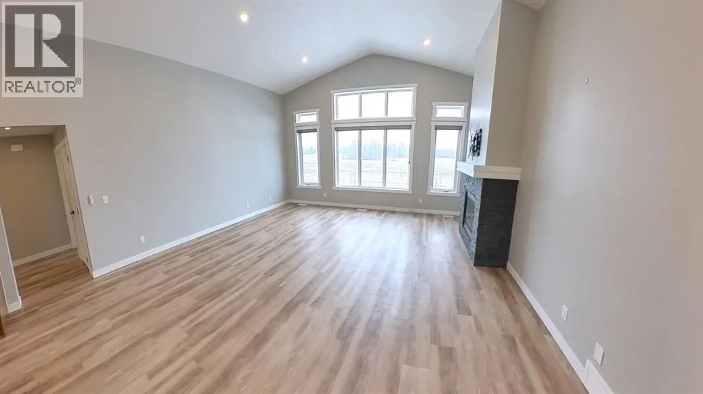 Welcome to the perfect blend of country serenity and urban convenience in the quaint community of Diamond Willow Estates. Located just minutes from Rocky Mountain House, this beautiful three-bedroom, two-bathroom home offers a lifestyle of comfort and style. The heart of the home features an expansive open floor plan where every corner of the great room captures your attention, from the statement gas fireplace to the oversized kitchen island. Large windows throughout the modern kitchen and living area flood the space with natural light, creating a warm and inviting atmosphere for daily living. Entertaining is effortless with seamless access from the living room to a large deck and a fully fenced yard, providing an ideal setting for family gatherings. The main floor is thoughtfully designed with two spacious secondary bedrooms, a convenient laundry room, and a five-piece bathroom featuring a large vanity. Tucked away as a private sanctuary, the master suite is a true dream, boasting a walk-in closet and an ensuite with a double vanity and a sleek glass-door shower. You can even enjoy your morning coffee on the deck directly from your bedroom while taking in the peaceful views of the meadow located right behind the property. Additional highlights include a two-car garage, a dedicated dog run, and a storage shed to keep your outdoor tools organized. Gardening enthusiasts will fall in love with the showstopping greenhouse that sits on the property. With a partially finished basement that is already plumbed for an additional bathroom, there is plenty of room to grow and customize this home to your needs. This property is a rare find that combines modern interior finishes with the tranquility of a meadow-side retreat. (id:27476)