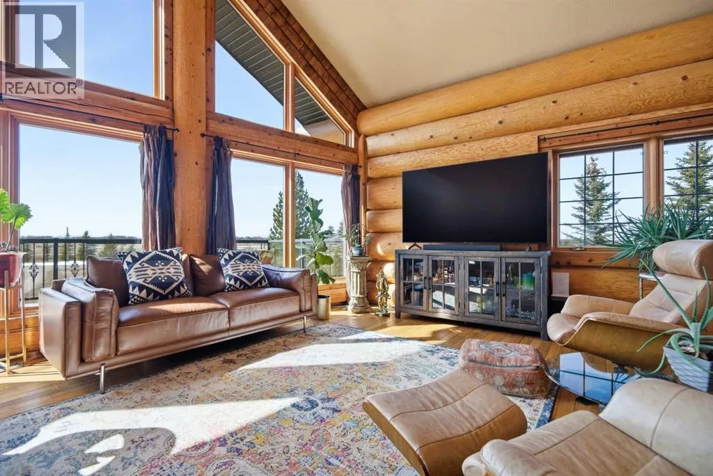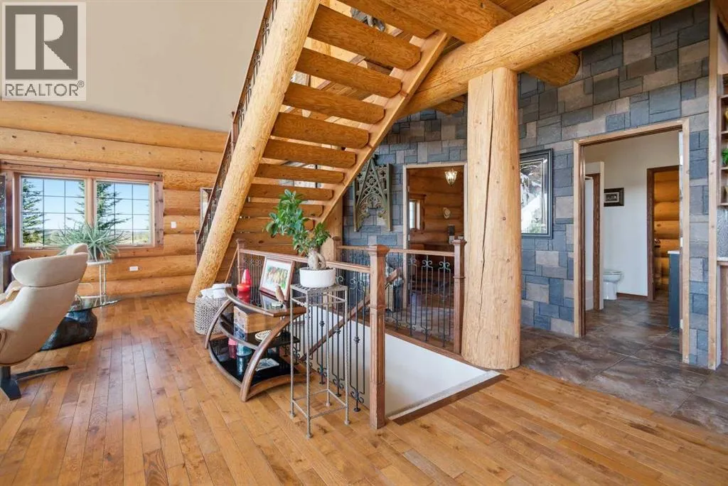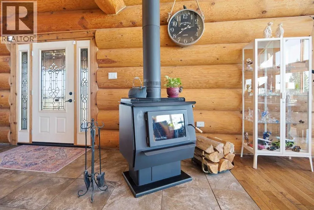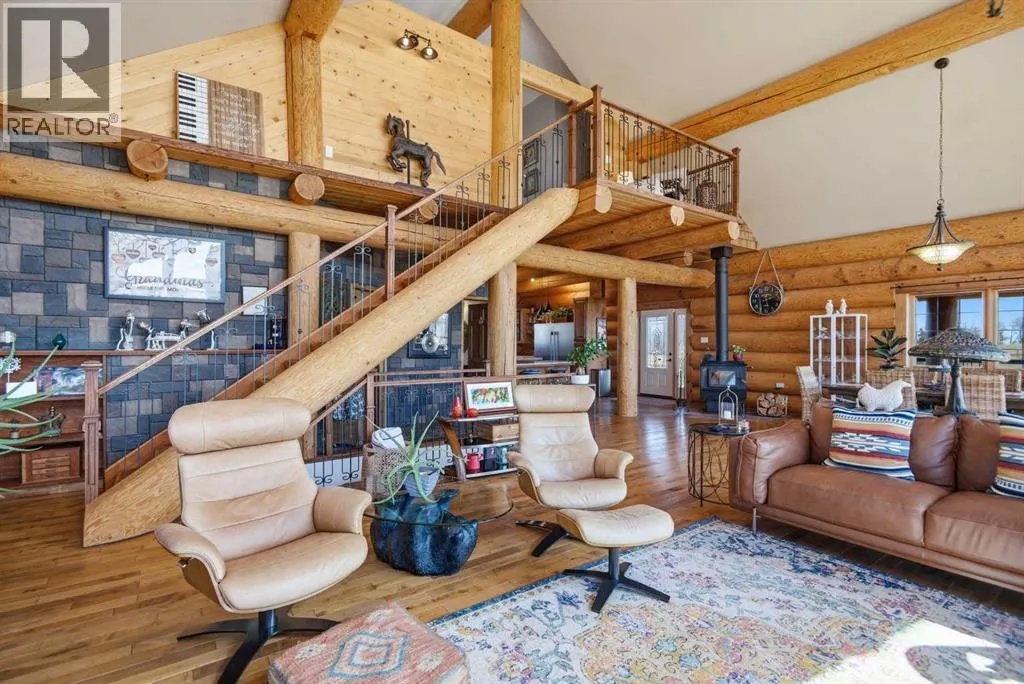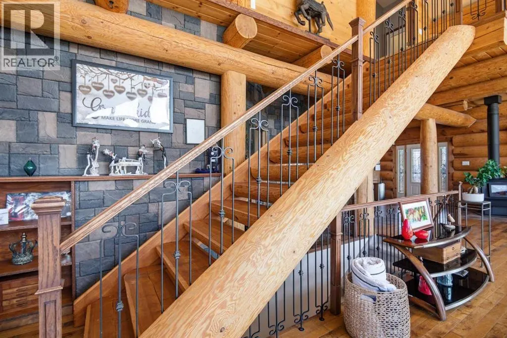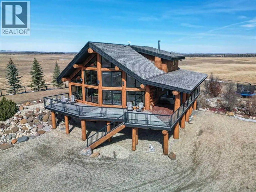 The ultimate in country lifestyle! True LOG home featuring exceptional privacy and stunning 360 degree views. This breathtaking property does not disappoint. Enjoy sunrise coffee off the east deck, then end the day with spectacular sunsets on the west deck. Soaring vaulted ceiling with a wall of glass (all triple pane windows) provides a year round view of mother nature that always amazes. Entering the home from the front door invokes sighs of stunned admiration for the huge living area, soaring ceiling and massive windows that greet visitors. Hardwood flooring spreads across the entertainment area. Kitchen is functional and fabulous. Granite counters, upscale appliances and lots of prep space make cooking enjoyable and shareable. This home has been meticulously maintained over the past several years. Updates include all the appliances, the furnace and hot water tank, light fixtures, paint and in summer '25 a complete sand blast of the log exterior and clear coat sealing installation. The upper level was completely renovated in '22 and now features a massive primary bedroom, step up to a heated tile floor ensuite with magnificent "copper" soaker tub, gigantic open shower and water closet. There are 2 walk in closets, one that has room to be both a nursery and closet if desired. Morning sun can be enjoyed on the totally private balcony. Walkout basement has 2 large bedrooms, bath with another giant sized shower and family/games/flex room, all situated on a heated floor. Don't miss the infra red sauna! The oversized garage (24x32)is heated and has a 3 piece bath and boiler system of its own as well as a workshop. The other ancillary building can have multiple functions. It could be a guest house, garage, storage building or even a barn or stable.... hard to believe so you'll have to see it! This building measures 21x27 with a 13x20 mezzanine. The acreage is zoned to allow a couple large animals or chickens etc, large garden spot and more potential than you can dream. Home was originally heated via the hot water floor and the woodstove on the main... logs and the triple pane windows are fairly energy efficient and the owner says his monthly winter gas bill is just under $300 on average, including heating the oversized garage. This is a one of a kind opportunity... (id:27476)