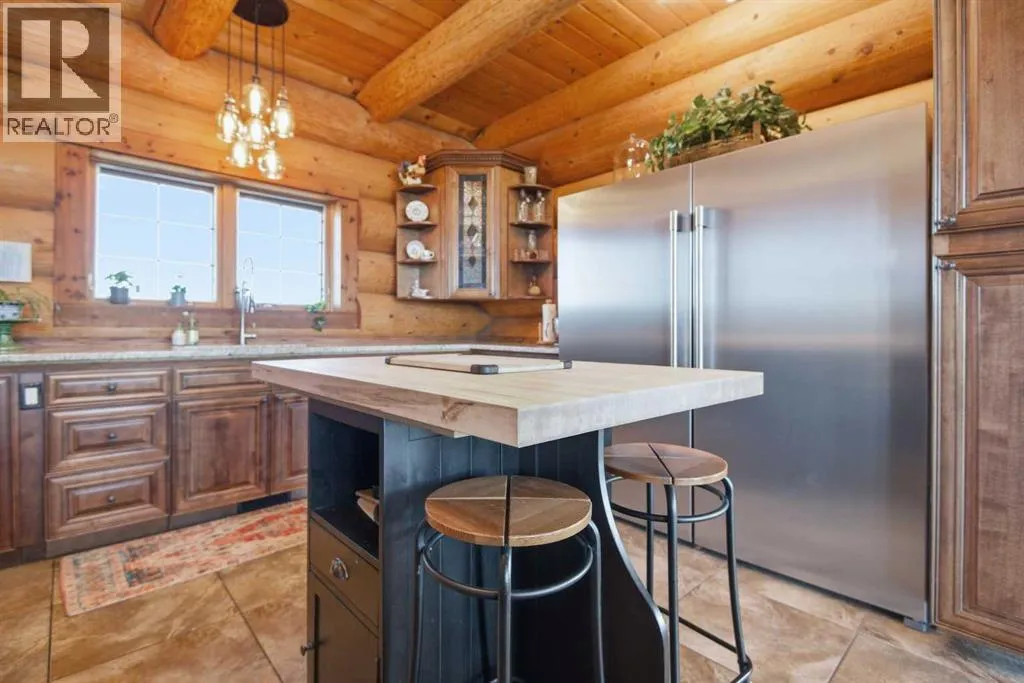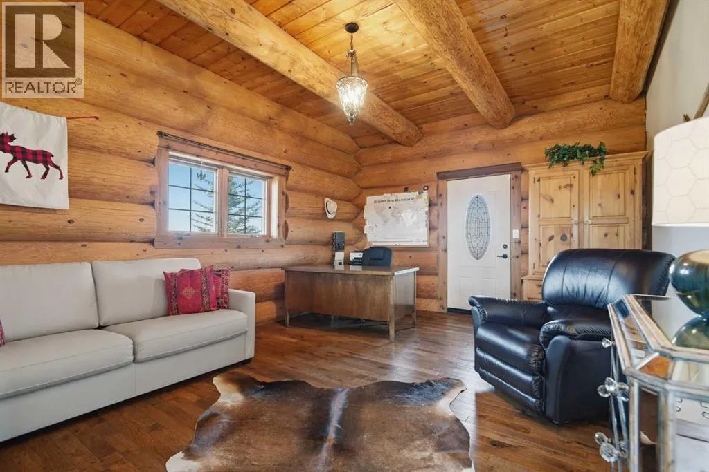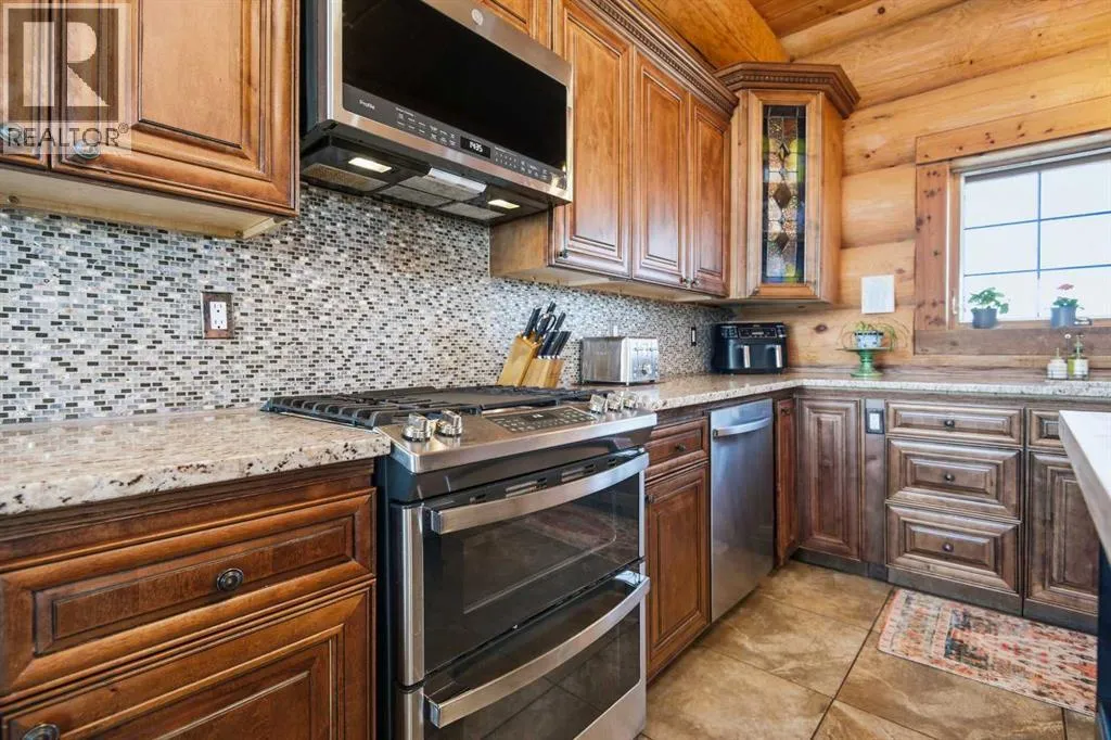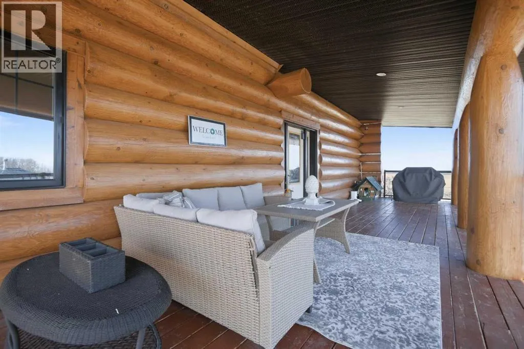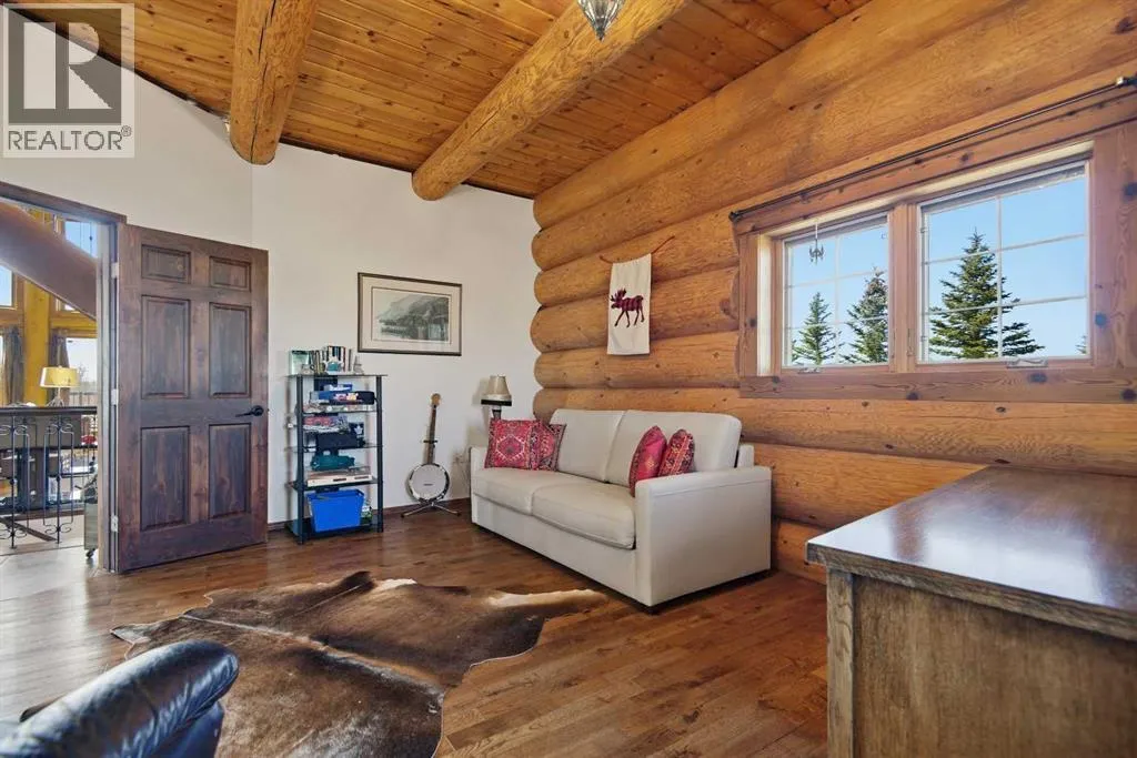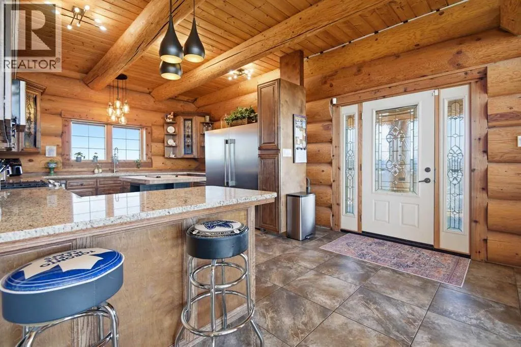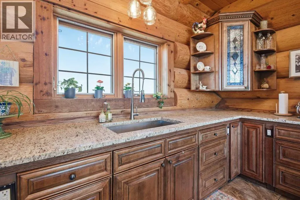 The ultimate in country lifestyle! True LOG home featuring exceptional privacy and stunning 360 degree views. This breathtaking property does not disappoint. Enjoy sunrise coffee off the east deck, then end the day with spectacular sunsets on the west deck. Soaring vaulted ceiling with a wall of glass (all triple pane windows) provides a year round view of mother nature that always amazes. Entering the home from the front door invokes sighs of stunned admiration for the huge living area, soaring ceiling and massive windows that greet visitors. Hardwood flooring spreads across the entertainment area. Kitchen is functional and fabulous. Granite counters, upscale appliances and lots of prep space make cooking enjoyable and shareable. This home has been meticulously maintained over the past several years. Updates include all the appliances, the furnace and hot water tank, light fixtures, paint and in summer '25 a complete sand blast of the log exterior and clear coat sealing installation. The upper level was completely renovated in '22 and now features a massive primary bedroom, step up to a heated tile floor ensuite with magnificent "copper" soaker tub, gigantic open shower and water closet. There are 2 walk in closets, one that has room to be both a nursery and closet if desired. Morning sun can be enjoyed on the totally private balcony. Walkout basement has 2 large bedrooms, bath with another giant sized shower and family/games/flex room, all situated on a heated floor. Don't miss the infra red sauna! The oversized garage (24x32)is heated and has a 3 piece bath and boiler system of its own as well as a workshop. The other ancillary building can have multiple functions. It could be a guest house, garage, storage building or even a barn or stable.... hard to believe so you'll have to see it! This building measures 21x27 with a 13x20 mezzanine. The acreage is zoned to allow a couple large animals or chickens etc, large garden spot and more potential than you can dream. Home was originally heated via the hot water floor and the woodstove on the main... logs and the triple pane windows are fairly energy efficient and the owner says his monthly winter gas bill is just under $300 on average, including heating the oversized garage. This is a one of a kind opportunity... (id:27476)