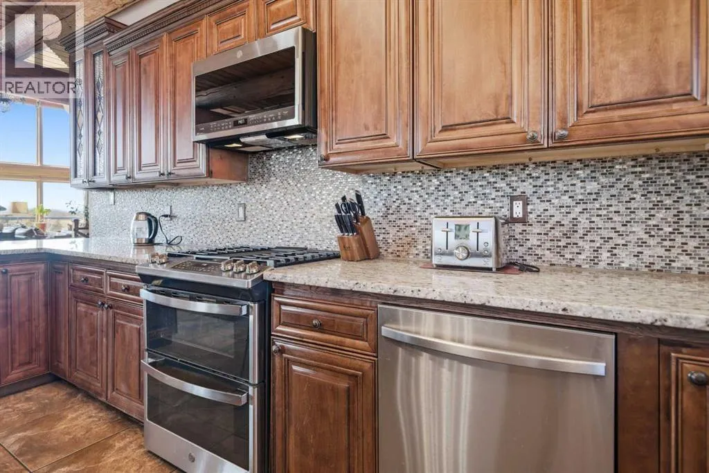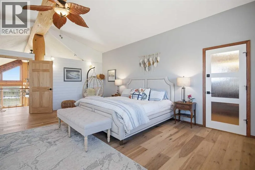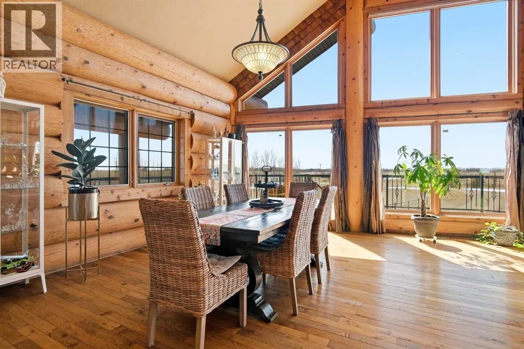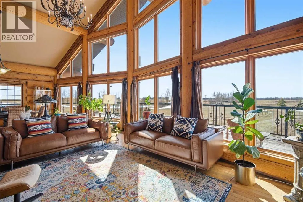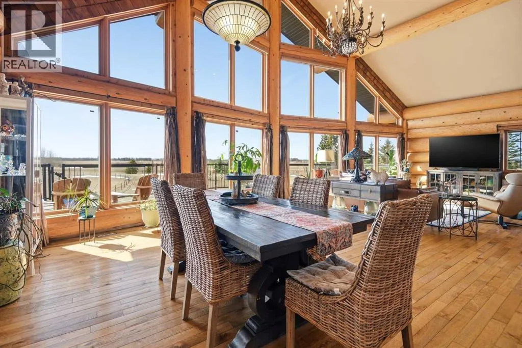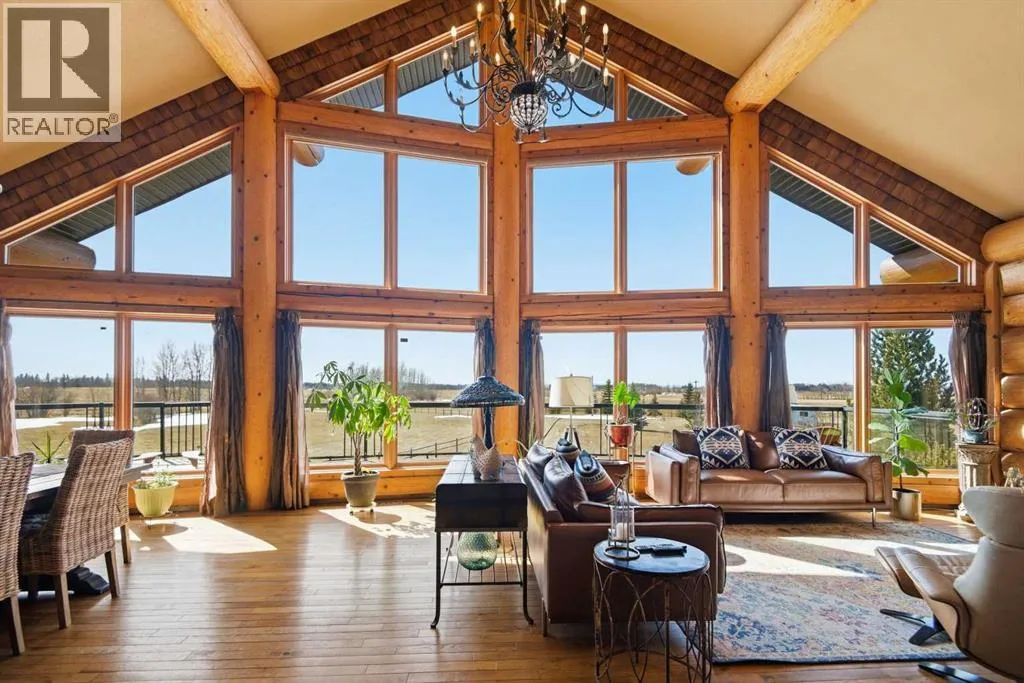 The ultimate in country lifestyle! True LOG home featuring exceptional privacy and stunning 360 degree views. This breathtaking property does not disappoint. Enjoy sunrise coffee off the east deck, then end the day with spectacular sunsets on the west deck. Soaring vaulted ceiling with a wall of glass (all triple pane windows) provides a year round view of mother nature that always amazes. Entering the home from the front door invokes sighs of stunned admiration for the huge living area, soaring ceiling and massive windows that greet visitors. Hardwood flooring spreads across the entertainment area. Kitchen is functional and fabulous. Granite counters, upscale appliances and lots of prep space make cooking enjoyable and shareable. This home has been meticulously maintained over the past several years. Updates include all the appliances, the furnace and hot water tank, light fixtures, paint and in summer '25 a complete sand blast of the log exterior and clear coat sealing installation. The upper level was completely renovated in '22 and now features a massive primary bedroom, step up to a heated tile floor ensuite with magnificent "copper" soaker tub, gigantic open shower and water closet. There are 2 walk in closets, one that has room to be both a nursery and closet if desired. Morning sun can be enjoyed on the totally private balcony. Walkout basement has 2 large bedrooms, bath with another giant sized shower and family/games/flex room, all situated on a heated floor. Don't miss the infra red sauna! The oversized garage (24x32)is heated and has a 3 piece bath and boiler system of its own as well as a workshop. The other ancillary building can have multiple functions. It could be a guest house, garage, storage building or even a barn or stable.... hard to believe so you'll have to see it! This building measures 21x27 with a 13x20 mezzanine. The acreage is zoned to allow a couple large animals or chickens etc, large garden spot and more potential than you can dream. Home was originally heated via the hot water floor and the woodstove on the main... logs and the triple pane windows are fairly energy efficient and the owner says his monthly winter gas bill is just under $300 on average, including heating the oversized garage. This is a one of a kind opportunity... (id:27476)