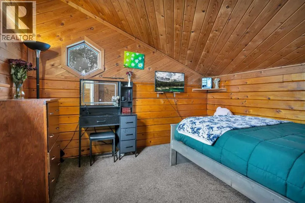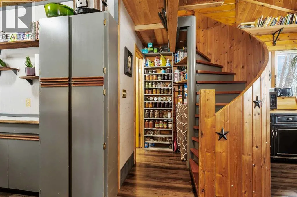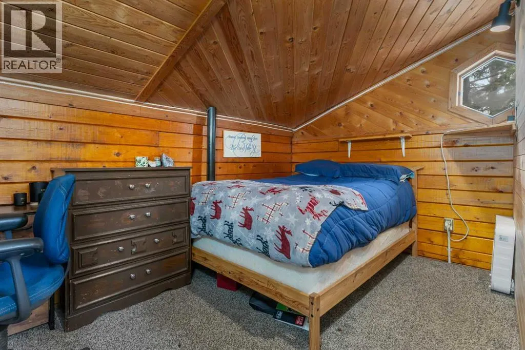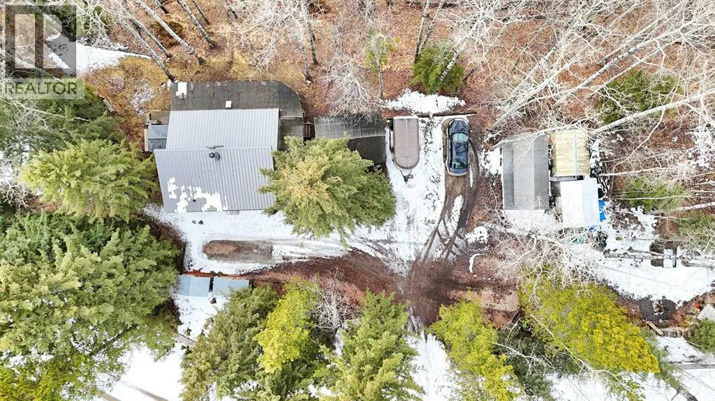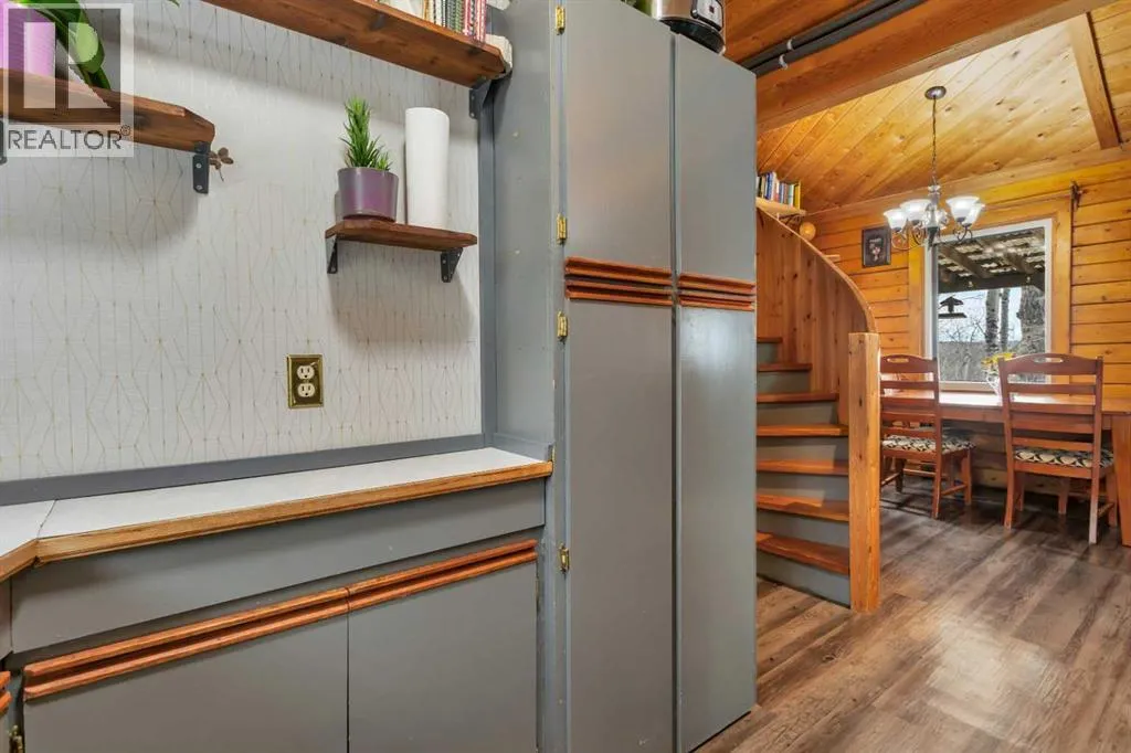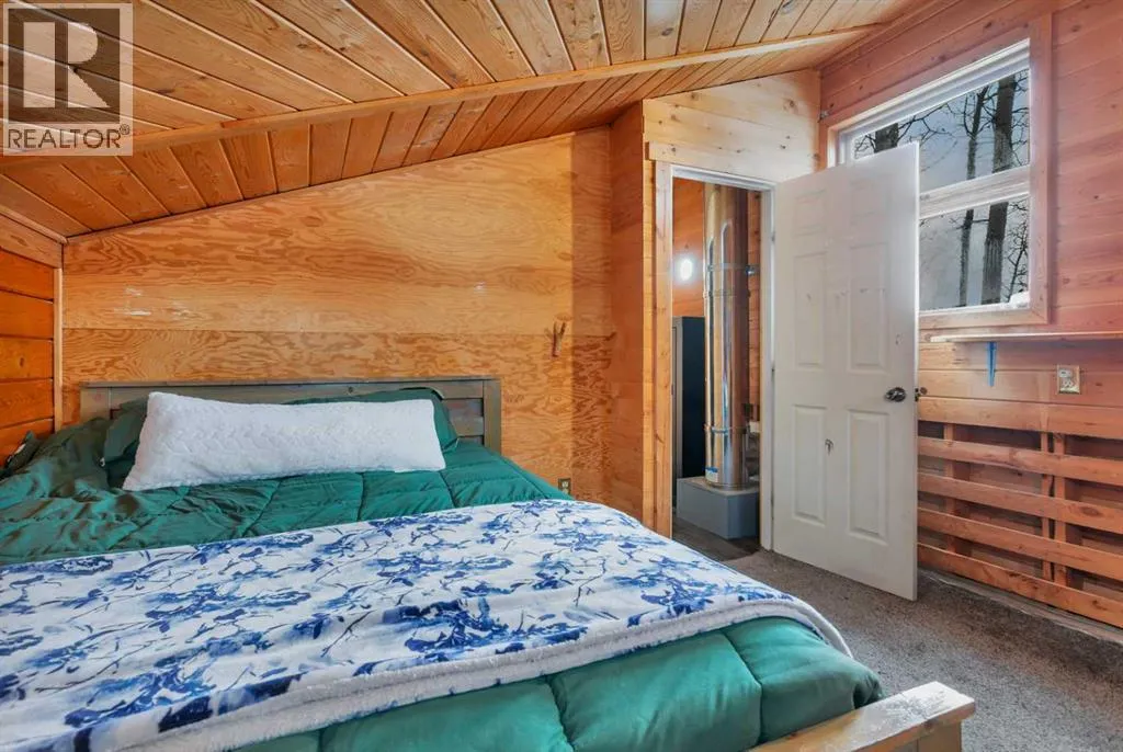 Tucked into nature just over 16 km west of Rocky Mountain House, this charming 880 sq ft D-style log home offers peaceful living with stunning views of forest, the North Saskatchewan River, and the mountains. Full of warmth and character, this thoughtfully designed tiny home blends rustic appeal with cozy functionality.The main floor features a welcoming living and dining area centered around a free-standing wood stove, a functional U-shaped kitchen, one bedroom, a 4-piece bathroom, and convenient stackable washer/dryer. Cottage-core details shine throughout, including built-in spice racks and dedicated canning storage.Upstairs, the original loft has been enclosed to create two small private bedrooms, accessed by a spiral staircase. The utility room is located in the crawl space and accessed from outside.A south-facing porch extends your living space outdoorsâperfect for entertaining or simply relaxing while taking in the peaceful country setting.Perfect for nature lovers and foraging enthusiasts, the property is rich with wild berries and herbs. An ATV trail leads to the lower portion of the acreage, where youâll find a large garden area. The upper yard is set up for enjoying the outdoors, complete with a firepit, storage shed, greenhouse, and chicken coop.Whether you're dreaming of a small-scale homestead or a quiet weekend retreat, this unique log home offers a true connection to nature and simple country living. (id:27476)