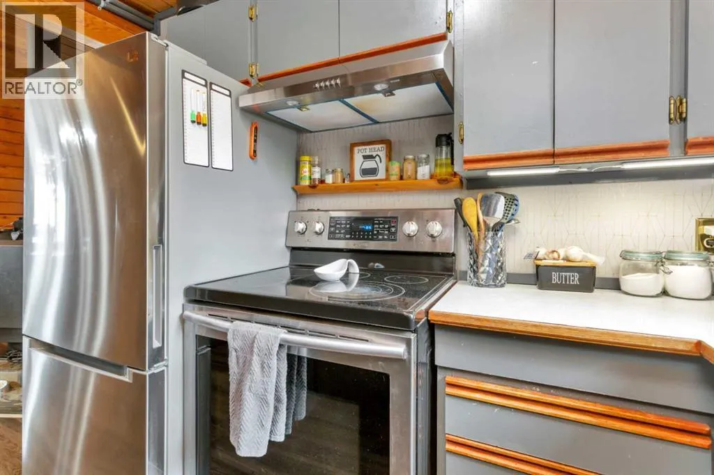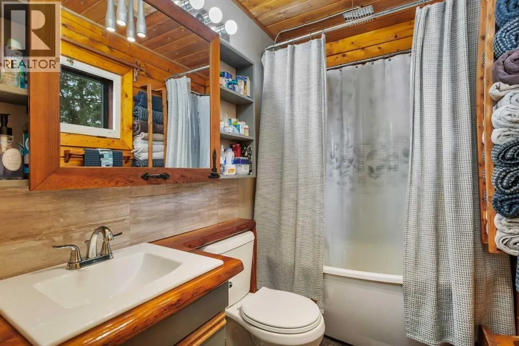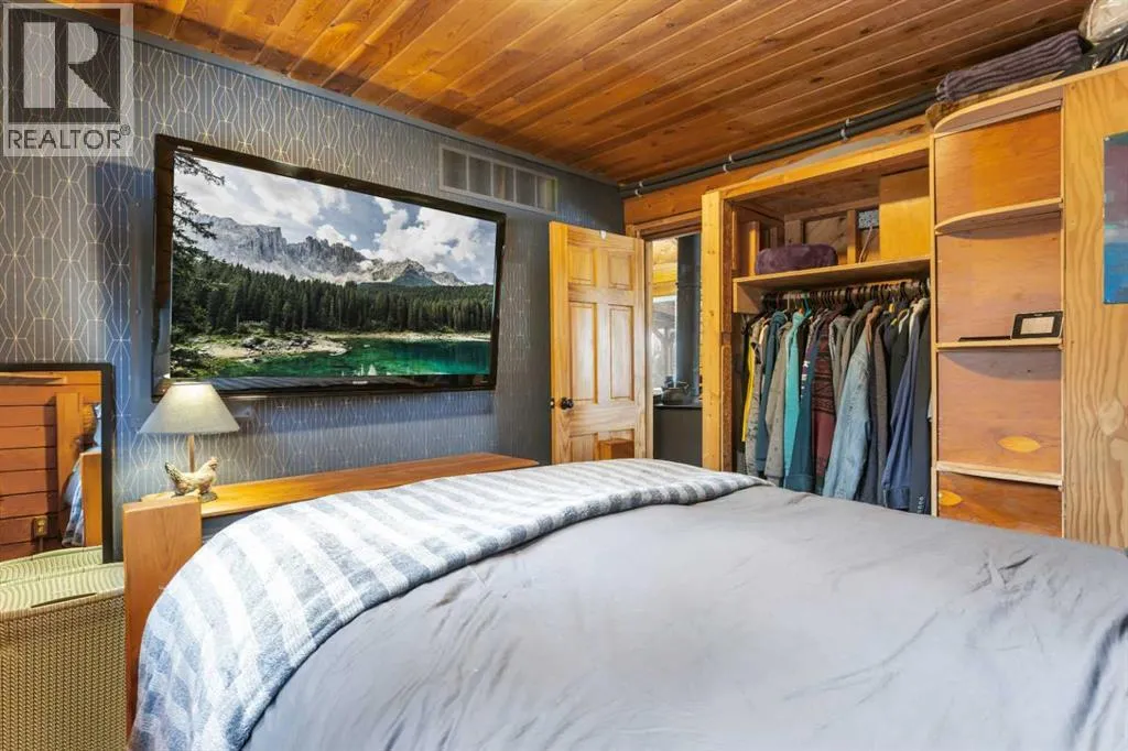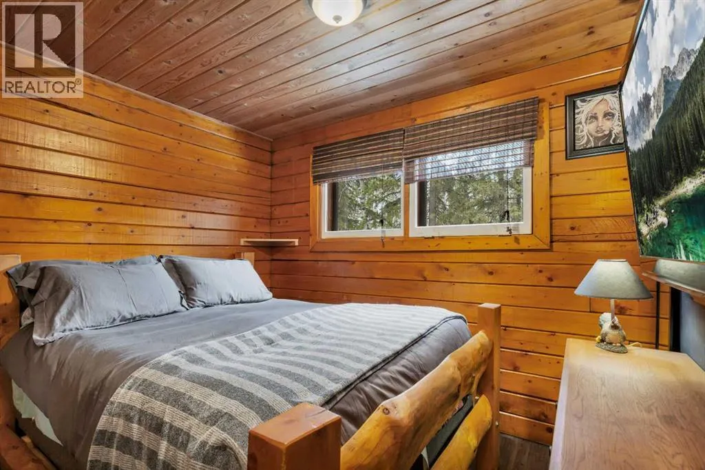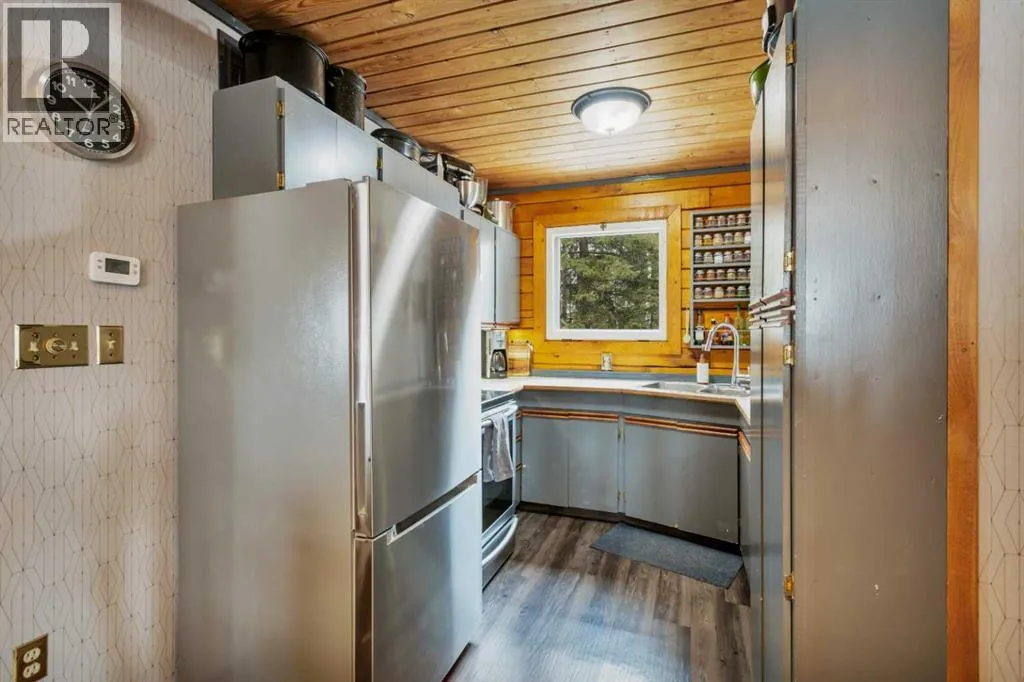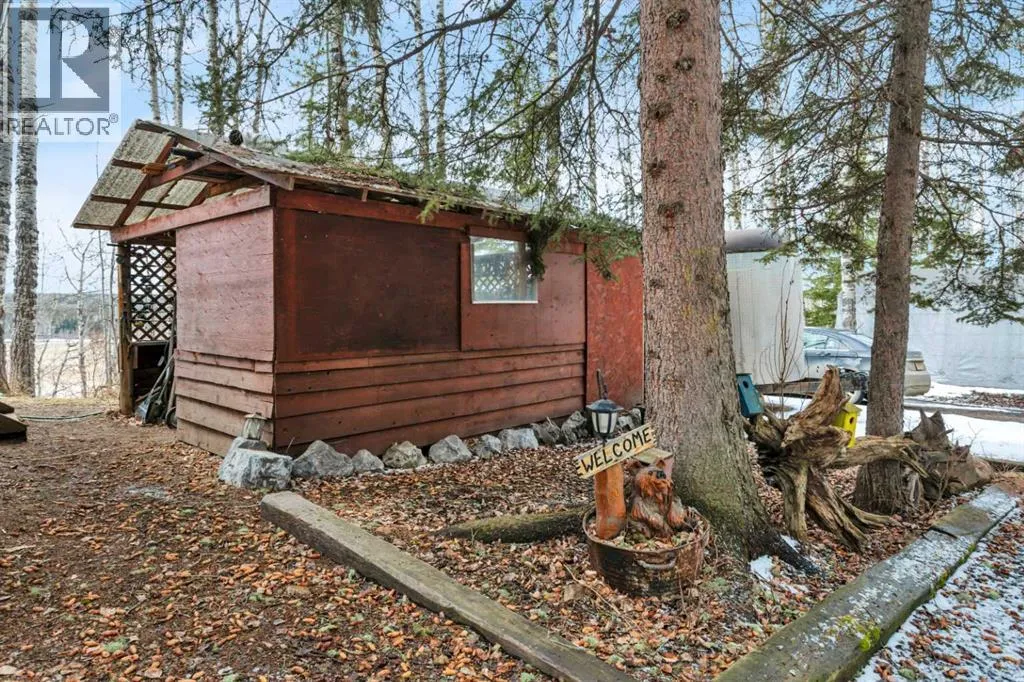 Tucked into nature just over 16 km west of Rocky Mountain House, this charming 880 sq ft D-style log home offers peaceful living with stunning views of forest, the North Saskatchewan River, and the mountains. Full of warmth and character, this thoughtfully designed tiny home blends rustic appeal with cozy functionality.The main floor features a welcoming living and dining area centered around a free-standing wood stove, a functional U-shaped kitchen, one bedroom, a 4-piece bathroom, and convenient stackable washer/dryer. Cottage-core details shine throughout, including built-in spice racks and dedicated canning storage.Upstairs, the original loft has been enclosed to create two small private bedrooms, accessed by a spiral staircase. The utility room is located in the crawl space and accessed from outside.A south-facing porch extends your living space outdoorsâperfect for entertaining or simply relaxing while taking in the peaceful country setting.Perfect for nature lovers and foraging enthusiasts, the property is rich with wild berries and herbs. An ATV trail leads to the lower portion of the acreage, where youâll find a large garden area. The upper yard is set up for enjoying the outdoors, complete with a firepit, storage shed, greenhouse, and chicken coop.Whether you're dreaming of a small-scale homestead or a quiet weekend retreat, this unique log home offers a true connection to nature and simple country living. (id:27476)