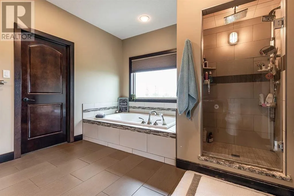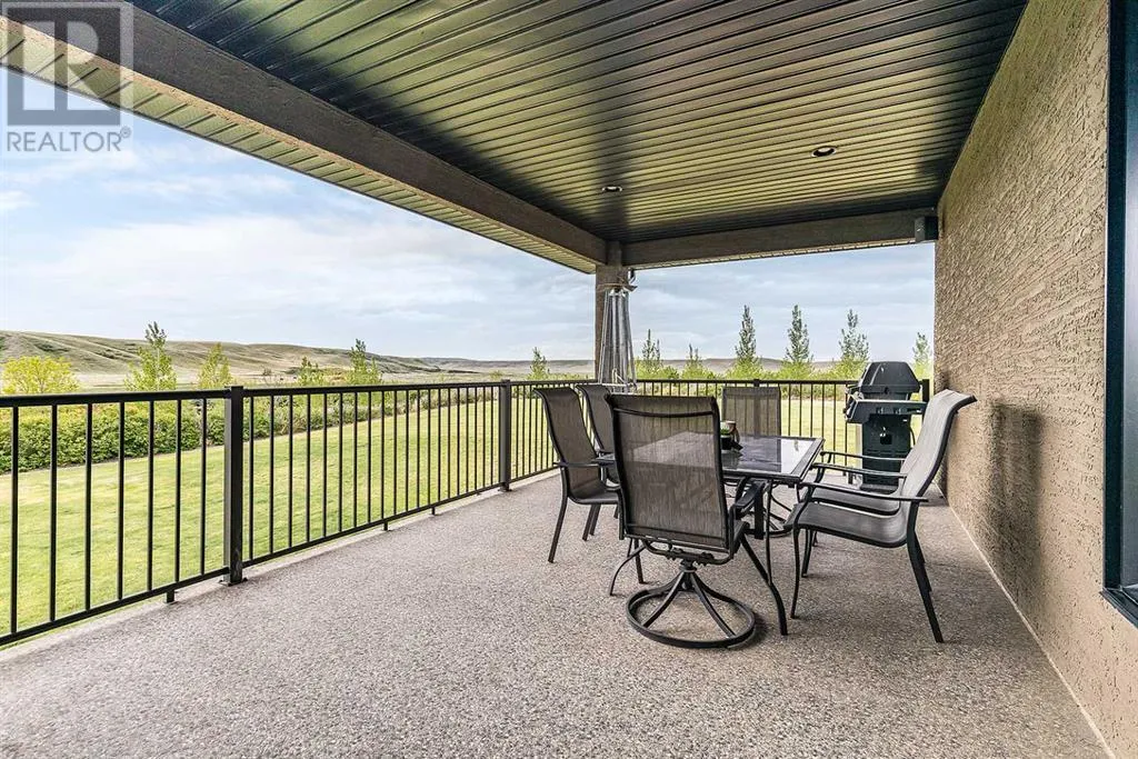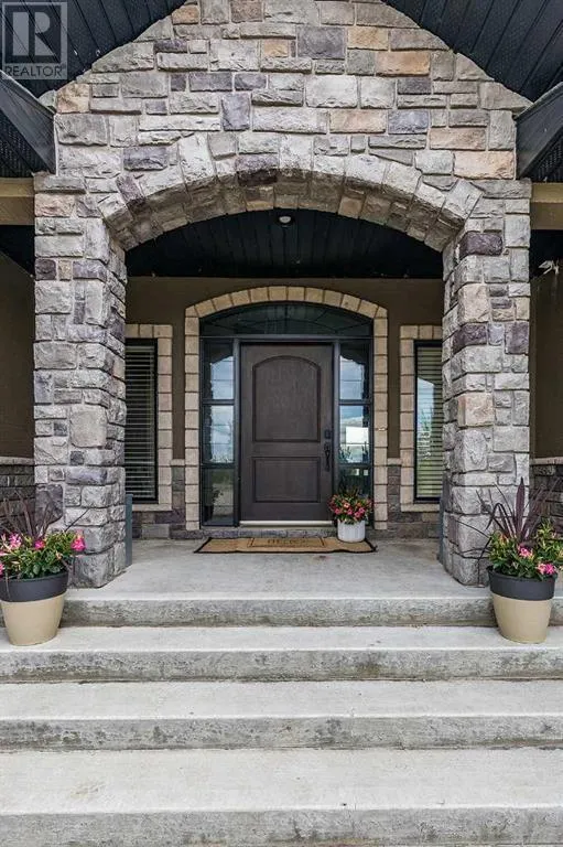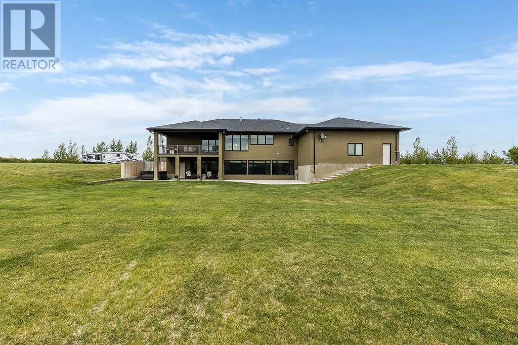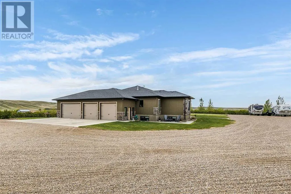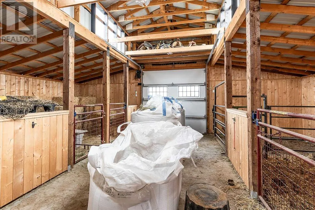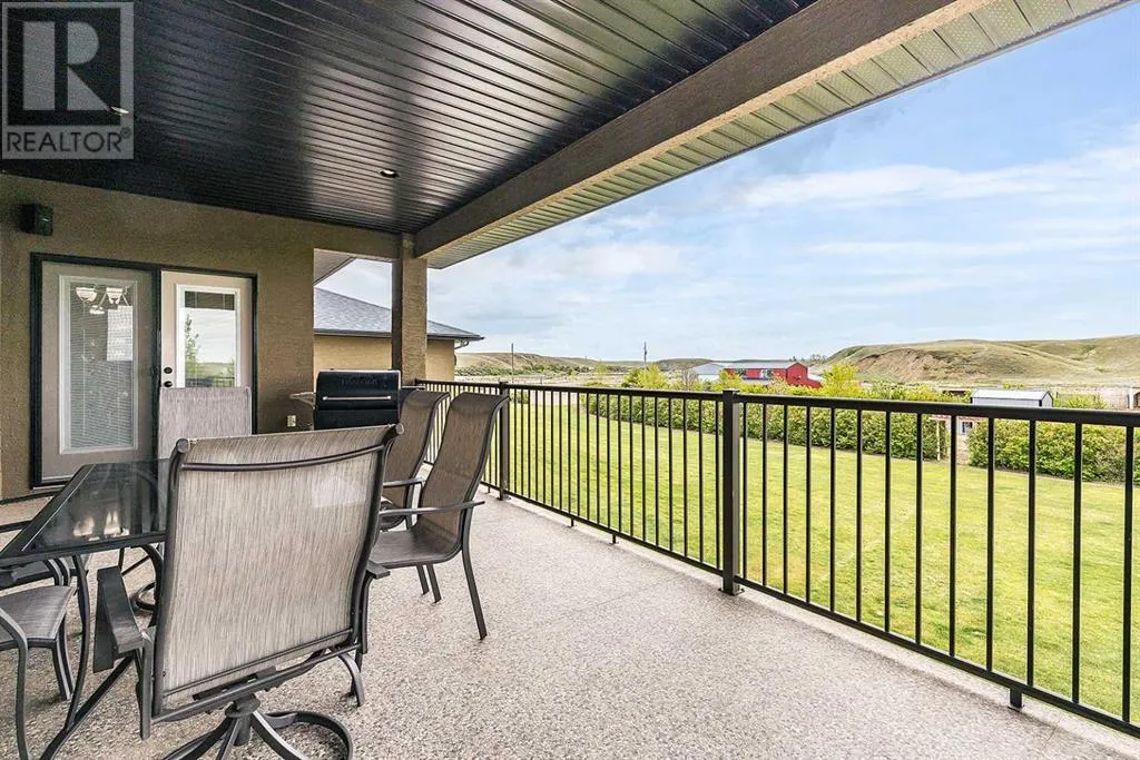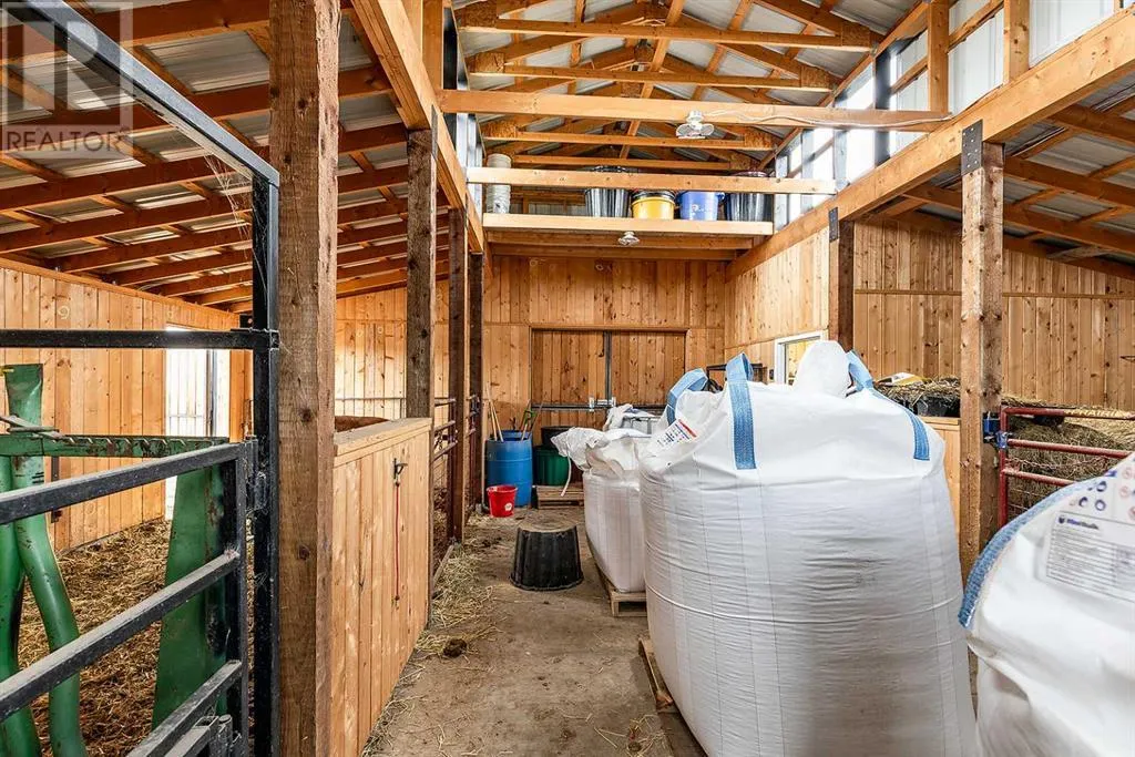 Welcome to a one-of-a-kind property just minutes from the city! This beautiful 2522 sqft walkout bungalow offers the perfect blend of rural serenity and refined living. The timeless home features 5 bedrooms plus an office, den, 4 full bathrooms, and a fully developed basement, all designed with thoughtful detail and quality finishes. Step into the bright, open concept living space with 9 ft ceilings, hardwood floors, a stone double sided fireplace, and expansive windows overlooking the private and dreamy outdoor space with incredible views. The chefâs kitchen features a double oven, oversized fridge/freezer, prep island, and ample cabinetry, flowing seamlessly into the dining area with access to a covered deck. Main floor convenience is maximized with a large laundry/mudroom connecting directly to the walk-through pantry as well as the 28x47 triple car garage. The Primary Suite is an expansive retreat, with generous space for a sitting area or exercise/yoga nook, a spa-like 4 pc ensuite featuring in-floor heating, a soaker tub, custom tile shower, and a walk-in closet with built-in cabinets. The walkout basement continues to impress with a large recreation room, wet bar with beverage fridge and dishwasher, two additional bedrooms, a den ideal for a gym, gaming room or playroom, a 4 pc bathroom with in-floor heating, a 3 pc bathroom with access to the patio and hot tub area, and plenty of storage. Additional features include blackout blinds in all bedrooms, zoned heating and A/C, a hot tub, and underground sprinklers. A huge perk of this incredible property is the three shops, measuring 80'x40', 50'x30', and 21'x26â: all with concrete floors, and durable tin exteriors, offering excellent flexibility for personal use or business needs. The animal lovers will enjoy the 36'x30' barn with heated tack room, concrete alley, five indoor pens, a 10'x10' overhead door, and two outdoor stock pens with shelters and an all-season watering bowl. Situated on a full 109.23 acres of pasture, reseeded grassland and total 39 acre water license. This standout property offers the best of both worlds: a luxurious home with high-end features and the infrastructure to support a rural lifestyle. Whether youâre looking to live, work, or invest in land, this is an incredible opportunity to own a high-value property close to city amenities. Floorplan/measurements and additional information attached. Drone photos available upon request. (id:27476)