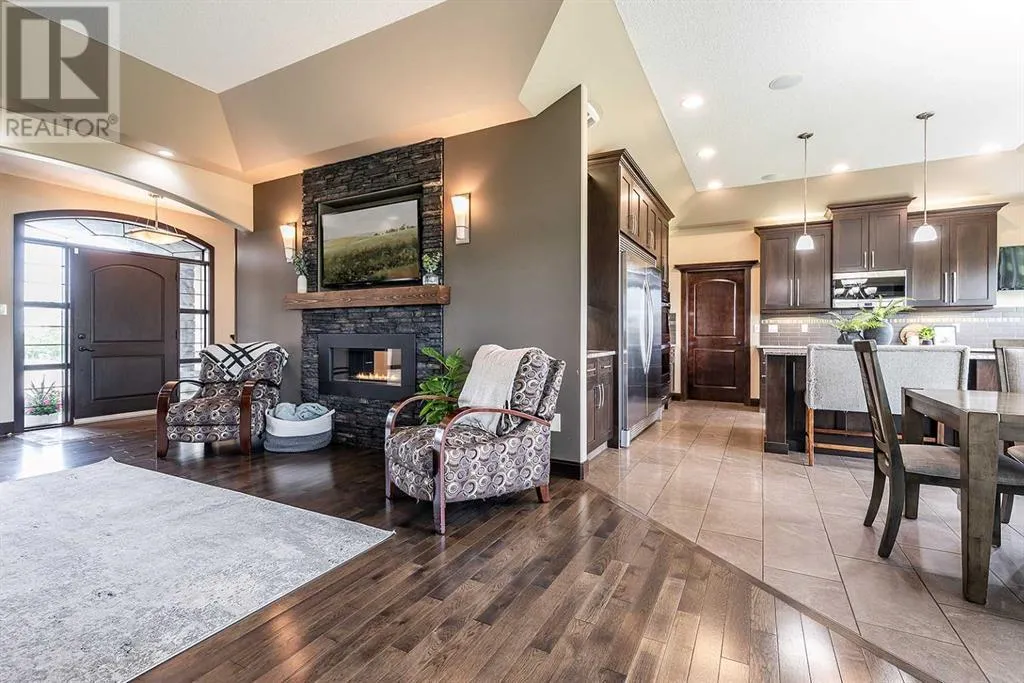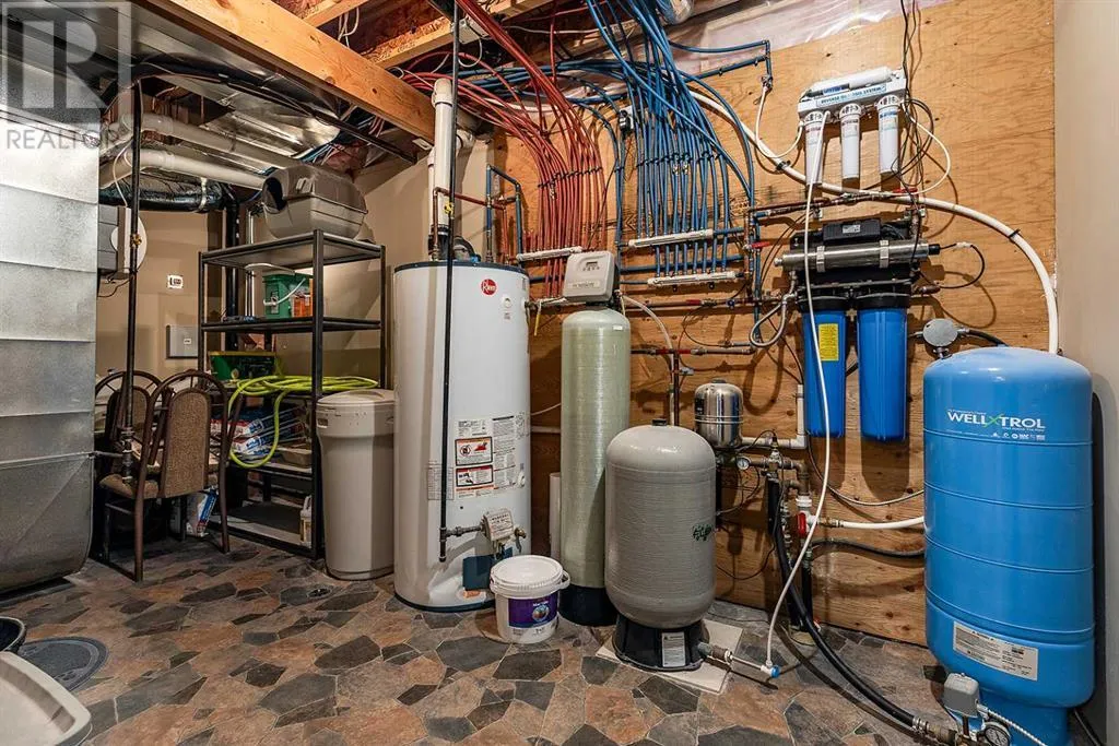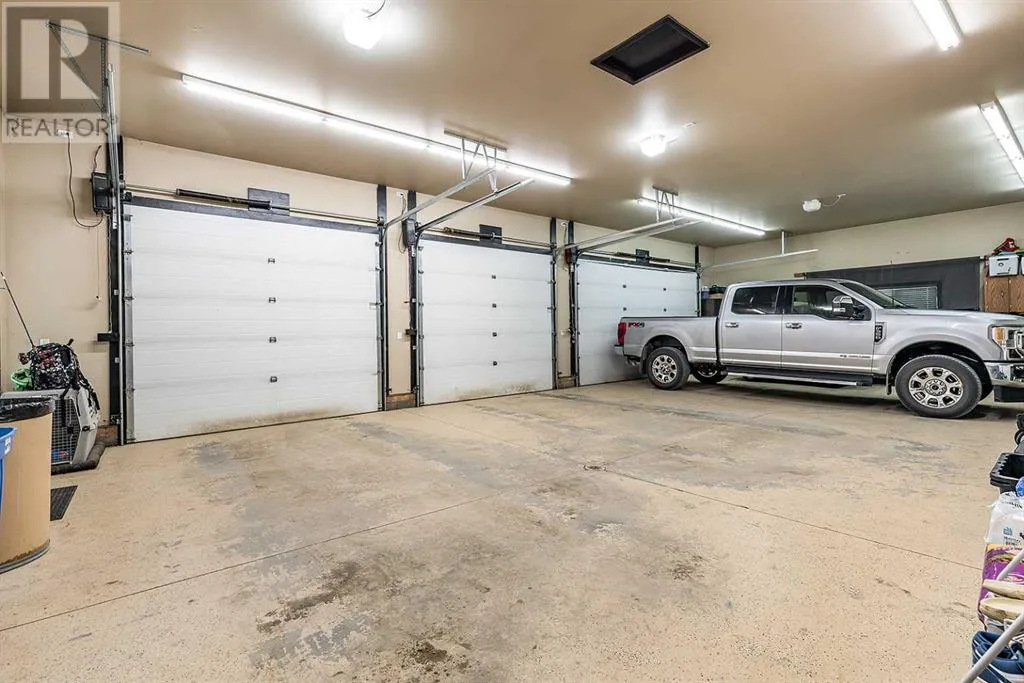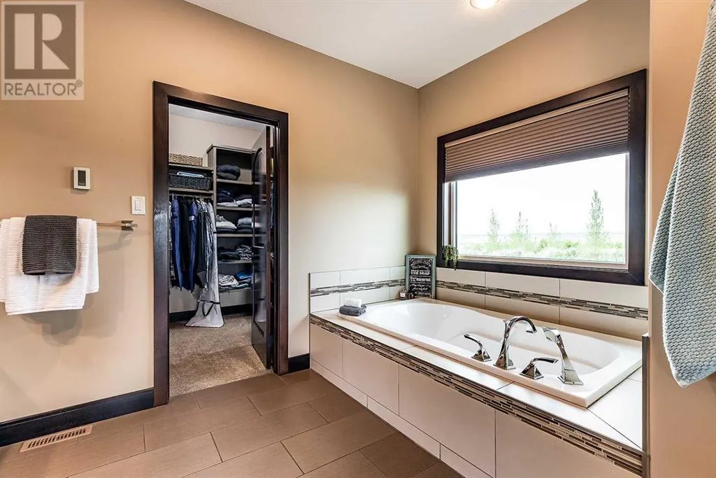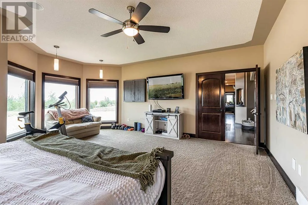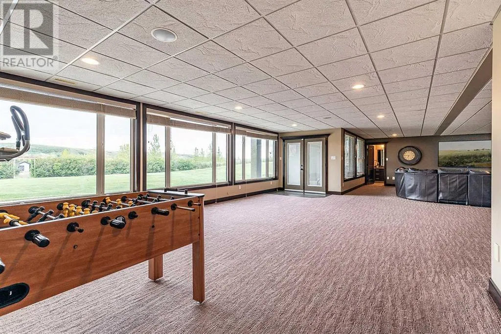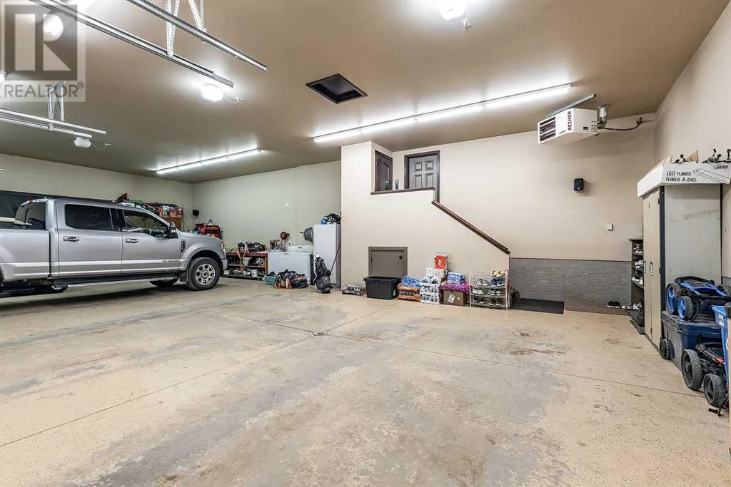 Welcome to a one-of-a-kind property just minutes from the city! This beautiful 2522 sqft walkout bungalow offers the perfect blend of rural serenity and refined living. The timeless home features 5 bedrooms plus an office, den, 4 full bathrooms, and a fully developed basement, all designed with thoughtful detail and quality finishes. Step into the bright, open concept living space with 9 ft ceilings, hardwood floors, a stone double sided fireplace, and expansive windows overlooking the private and dreamy outdoor space with incredible views. The chefâs kitchen features a double oven, oversized fridge/freezer, prep island, and ample cabinetry, flowing seamlessly into the dining area with access to a covered deck. Main floor convenience is maximized with a large laundry/mudroom connecting directly to the walk-through pantry as well as the 28x47 triple car garage. The Primary Suite is an expansive retreat, with generous space for a sitting area or exercise/yoga nook, a spa-like 4 pc ensuite featuring in-floor heating, a soaker tub, custom tile shower, and a walk-in closet with built-in cabinets. The walkout basement continues to impress with a large recreation room, wet bar with beverage fridge and dishwasher, two additional bedrooms, a den ideal for a gym, gaming room or playroom, a 4 pc bathroom with in-floor heating, a 3 pc bathroom with access to the patio and hot tub area, and plenty of storage. Additional features include blackout blinds in all bedrooms, zoned heating and A/C, a hot tub, and underground sprinklers. A huge perk of this incredible property is the three shops, measuring 80'x40', 50'x30', and 21'x26â: all with concrete floors, and durable tin exteriors, offering excellent flexibility for personal use or business needs. The animal lovers will enjoy the 36'x30' barn with heated tack room, concrete alley, five indoor pens, a 10'x10' overhead door, and two outdoor stock pens with shelters and an all-season watering bowl. Situated on a full 109.23 acres of pasture, reseeded grassland and total 39 acre water license. This standout property offers the best of both worlds: a luxurious home with high-end features and the infrastructure to support a rural lifestyle. Whether youâre looking to live, work, or invest in land, this is an incredible opportunity to own a high-value property close to city amenities. Floorplan/measurements and additional information attached. Drone photos available upon request. (id:27476)