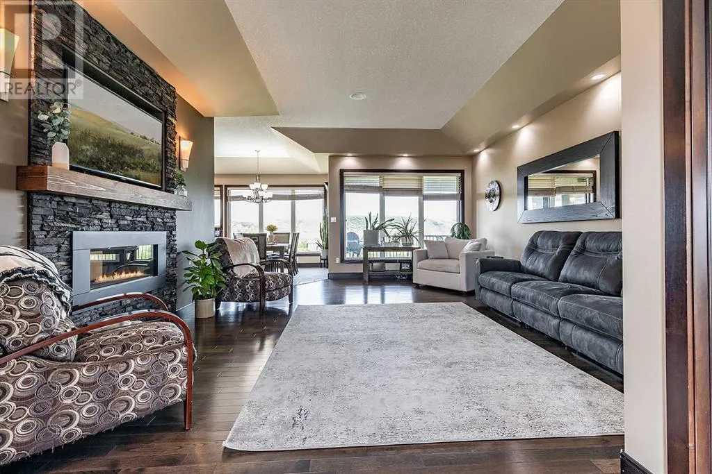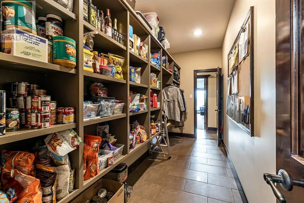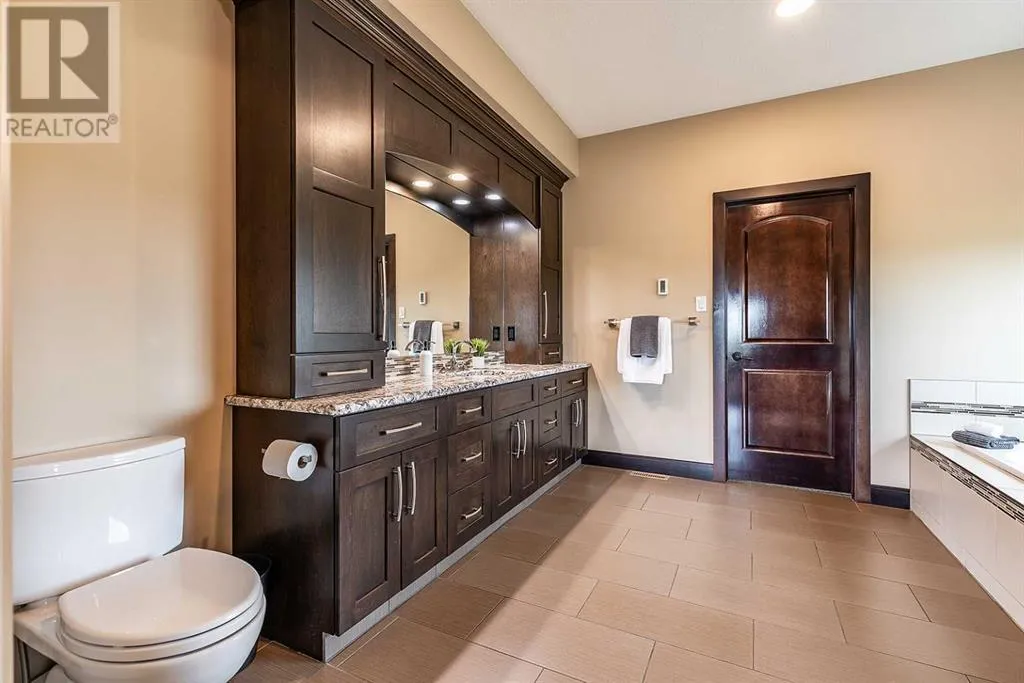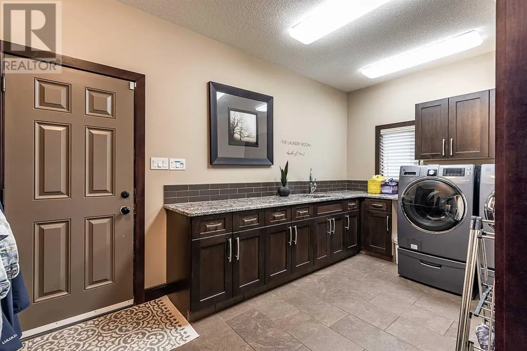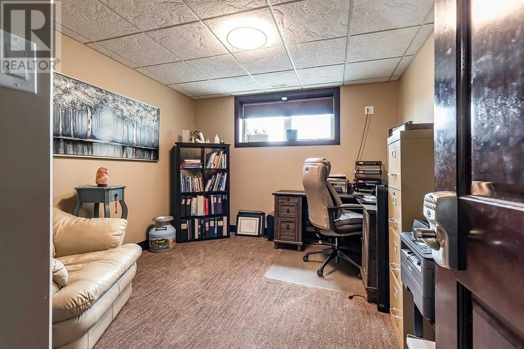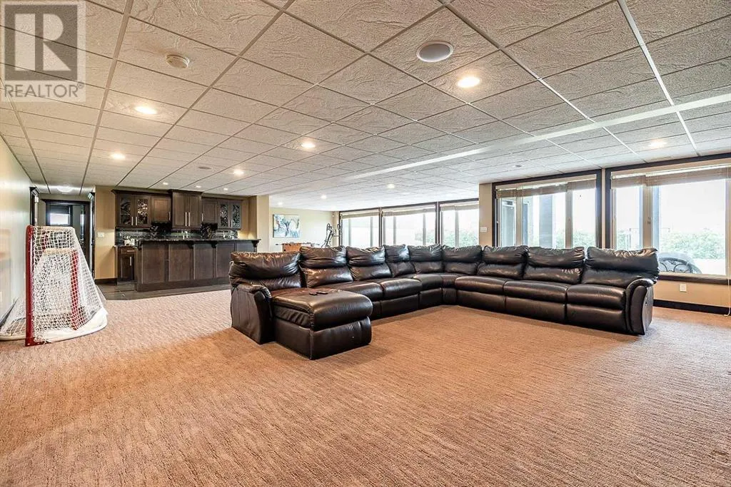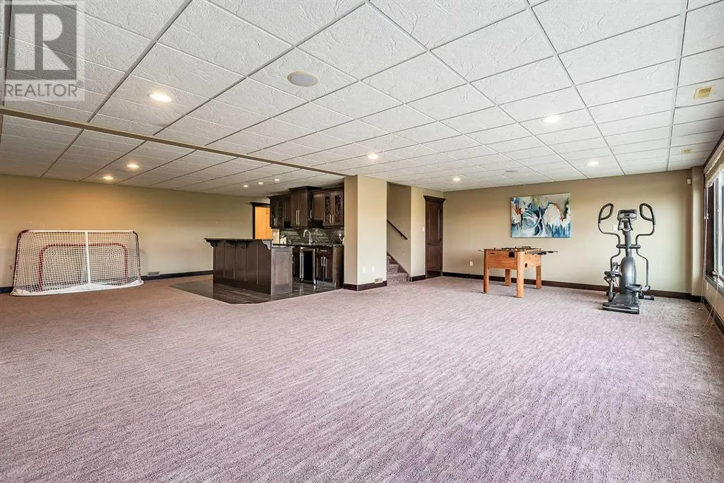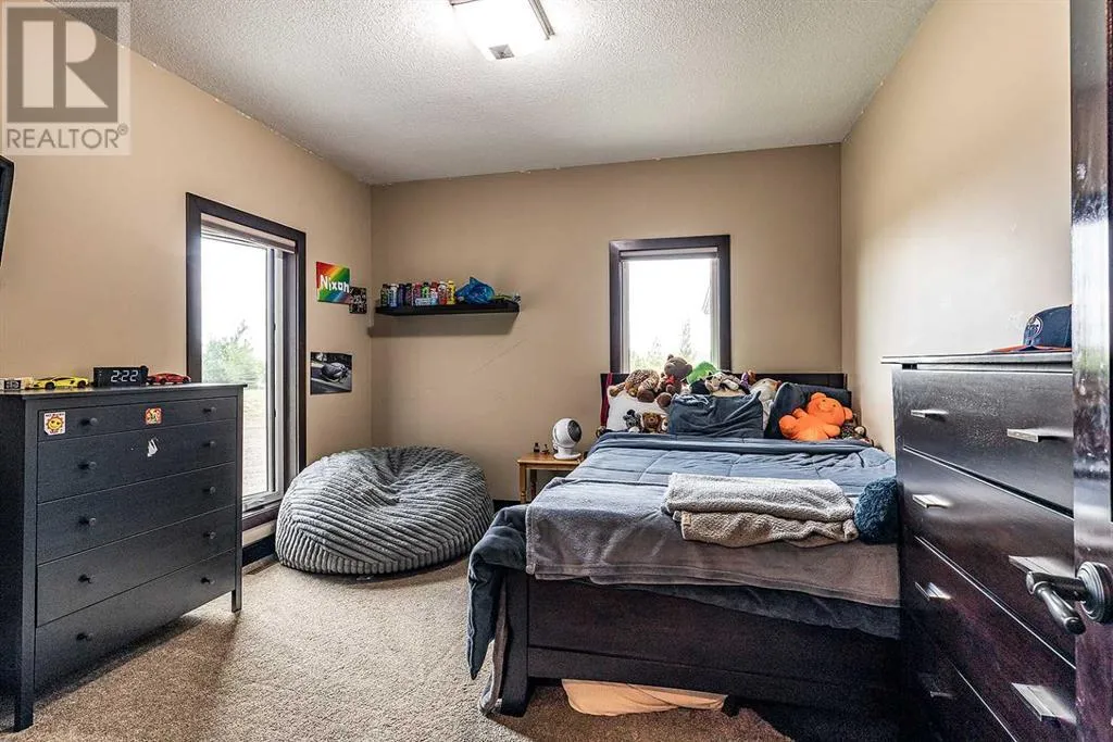 Welcome to a one-of-a-kind property just minutes from the city! This beautiful 2522 sqft walkout bungalow offers the perfect blend of rural serenity and refined living. The timeless home features 5 bedrooms plus an office, den, 4 full bathrooms, and a fully developed basement, all designed with thoughtful detail and quality finishes. Step into the bright, open concept living space with 9 ft ceilings, hardwood floors, a stone double sided fireplace, and expansive windows overlooking the private and dreamy outdoor space with incredible views. The chefâs kitchen features a double oven, oversized fridge/freezer, prep island, and ample cabinetry, flowing seamlessly into the dining area with access to a covered deck. Main floor convenience is maximized with a large laundry/mudroom connecting directly to the walk-through pantry as well as the 28x47 triple car garage. The Primary Suite is an expansive retreat, with generous space for a sitting area or exercise/yoga nook, a spa-like 4 pc ensuite featuring in-floor heating, a soaker tub, custom tile shower, and a walk-in closet with built-in cabinets. The walkout basement continues to impress with a large recreation room, wet bar with beverage fridge and dishwasher, two additional bedrooms, a den ideal for a gym, gaming room or playroom, a 4 pc bathroom with in-floor heating, a 3 pc bathroom with access to the patio and hot tub area, and plenty of storage. Additional features include blackout blinds in all bedrooms, zoned heating and A/C, a hot tub, and underground sprinklers. A huge perk of this incredible property is the three shops, measuring 80'x40', 50'x30', and 21'x26â: all with concrete floors, and durable tin exteriors, offering excellent flexibility for personal use or business needs. The animal lovers will enjoy the 36'x30' barn with heated tack room, concrete alley, five indoor pens, a 10'x10' overhead door, and two outdoor stock pens with shelters and an all-season watering bowl. Situated on a full 109.23 acres of pasture, reseeded grassland and total 39 acre water license. This standout property offers the best of both worlds: a luxurious home with high-end features and the infrastructure to support a rural lifestyle. Whether youâre looking to live, work, or invest in land, this is an incredible opportunity to own a high-value property close to city amenities. Floorplan/measurements and additional information attached. Drone photos available upon request. (id:27476)