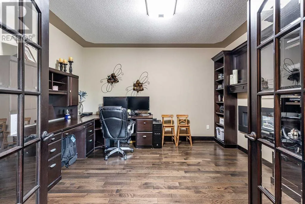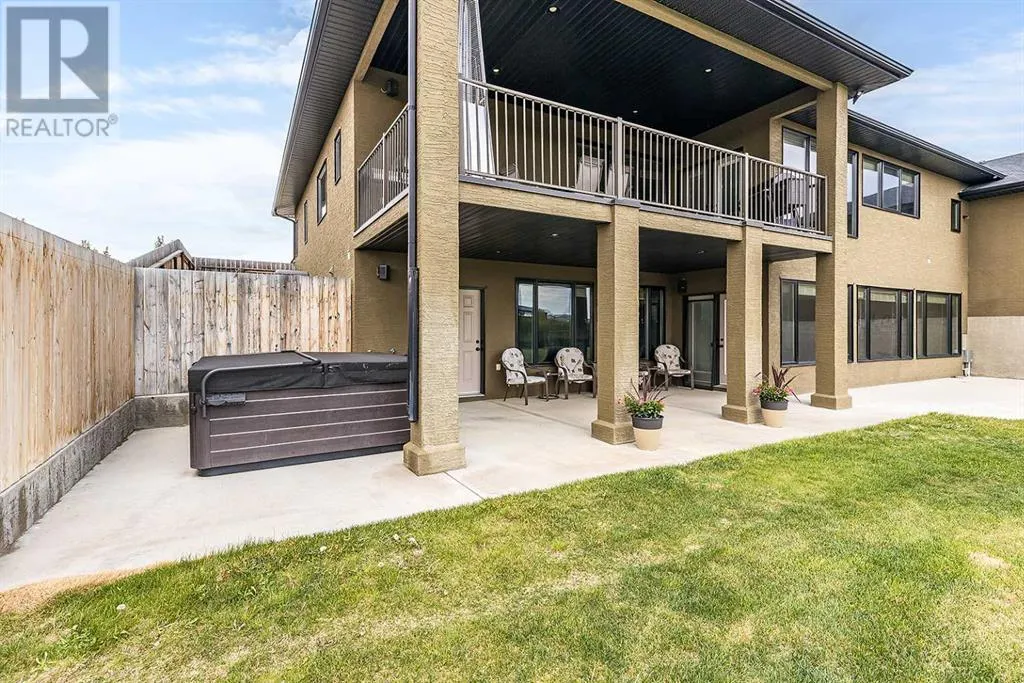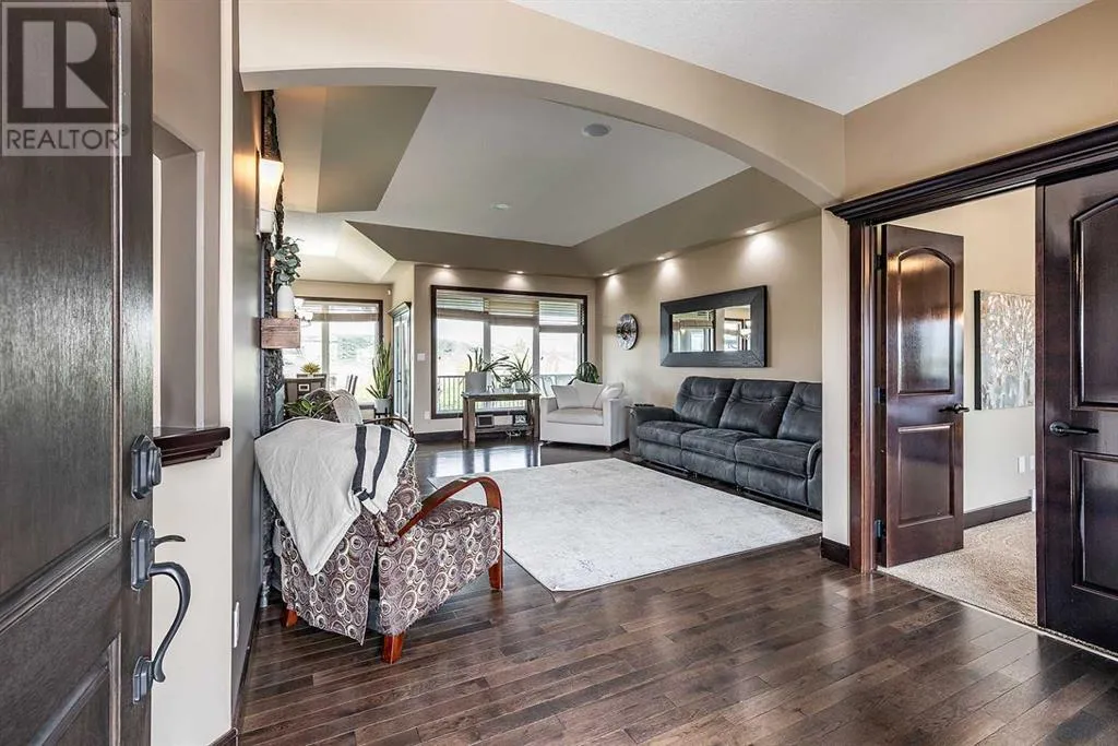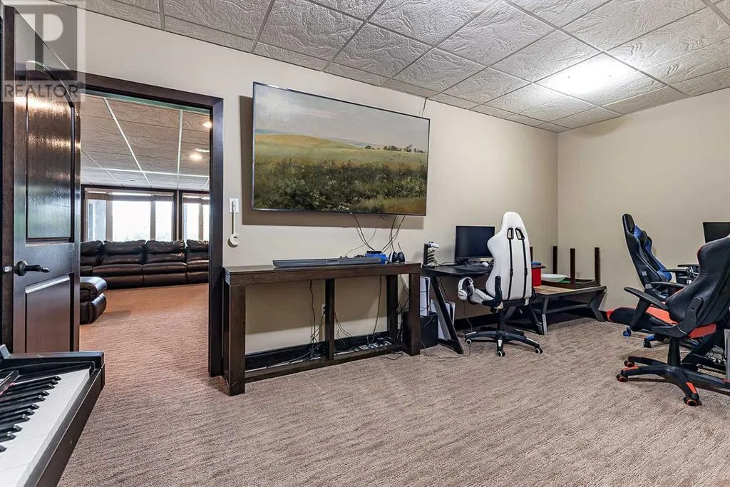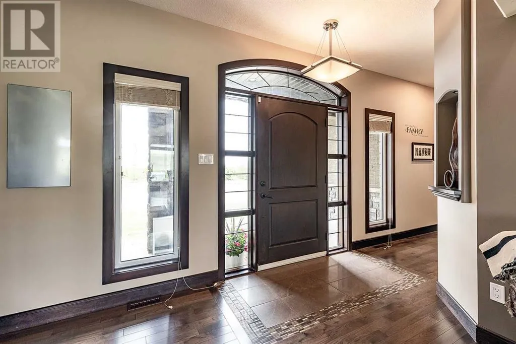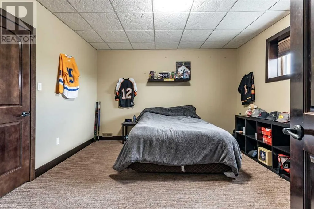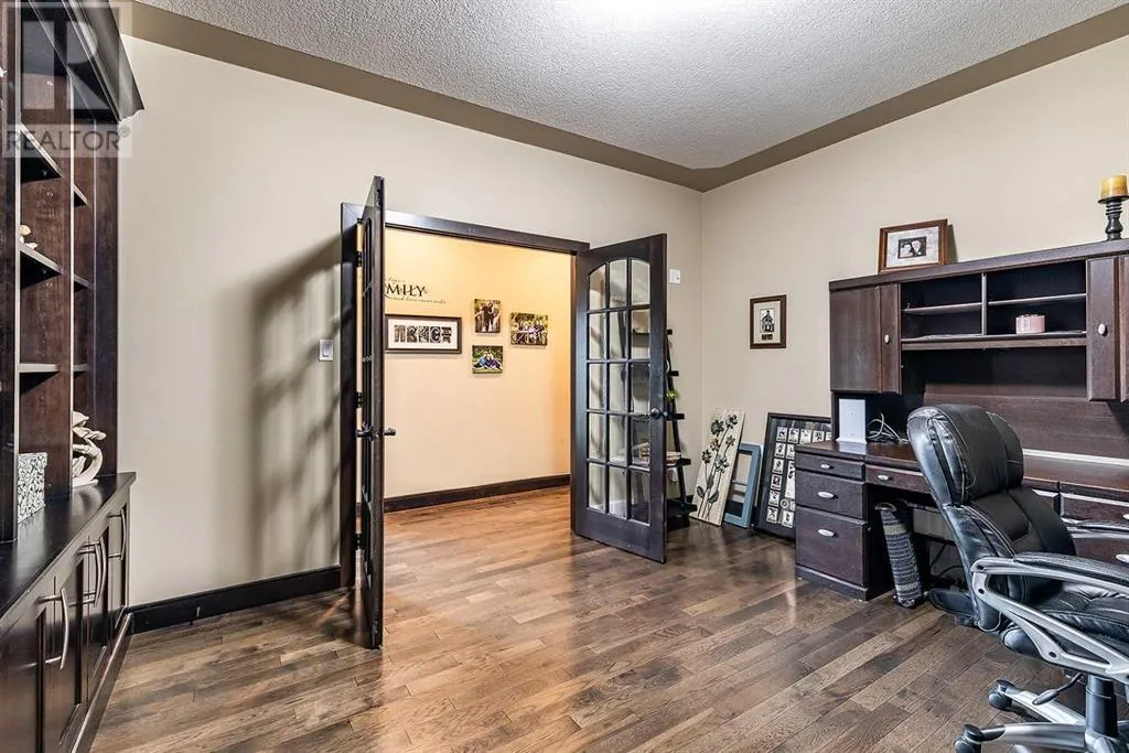 Welcome to a one-of-a-kind property just minutes from the city! This beautiful 2522 sqft walkout bungalow offers the perfect blend of rural serenity and refined living. The timeless home features 5 bedrooms plus an office, den, 4 full bathrooms, and a fully developed basement, all designed with thoughtful detail and quality finishes. Step into the bright, open concept living space with 9 ft ceilings, hardwood floors, a stone double sided fireplace, and expansive windows overlooking the private and dreamy outdoor space with incredible views. The chefâs kitchen features a double oven, oversized fridge/freezer, prep island, and ample cabinetry, flowing seamlessly into the dining area with access to a covered deck. Main floor convenience is maximized with a large laundry/mudroom connecting directly to the walk-through pantry as well as the 28x47 triple car garage. The Primary Suite is an expansive retreat, with generous space for a sitting area or exercise/yoga nook, a spa-like 4 pc ensuite featuring in-floor heating, a soaker tub, custom tile shower, and a walk-in closet with built-in cabinets. The walkout basement continues to impress with a large recreation room, wet bar with beverage fridge and dishwasher, two additional bedrooms, a den ideal for a gym, gaming room or playroom, a 4 pc bathroom with in-floor heating, a 3 pc bathroom with access to the patio and hot tub area, and plenty of storage. Additional features include blackout blinds in all bedrooms, zoned heating and A/C, a hot tub, and underground sprinklers. A huge perk of this incredible property is the three shops, measuring 80'x40', 50'x30', and 21'x26â: all with concrete floors, and durable tin exteriors, offering excellent flexibility for personal use or business needs. The animal lovers will enjoy the 36'x30' barn with heated tack room, concrete alley, five indoor pens, a 10'x10' overhead door, and two outdoor stock pens with shelters and an all-season watering bowl. Situated on a full 109.23 acres of pasture, reseeded grassland and total 39 acre water license. This standout property offers the best of both worlds: a luxurious home with high-end features and the infrastructure to support a rural lifestyle. Whether youâre looking to live, work, or invest in land, this is an incredible opportunity to own a high-value property close to city amenities. Floorplan/measurements and additional information attached. Drone photos available upon request. (id:27476)