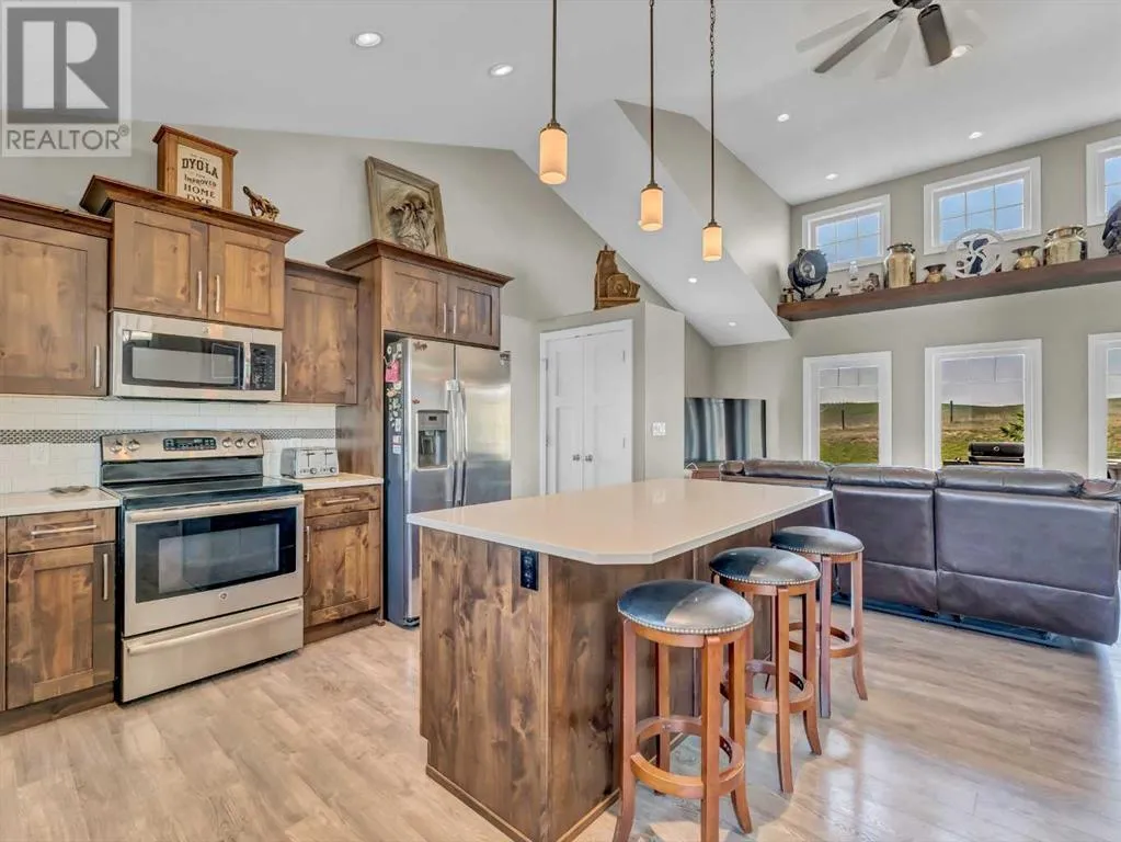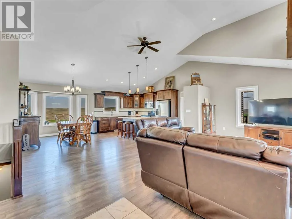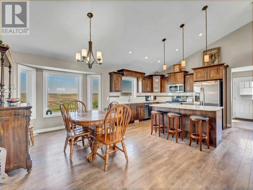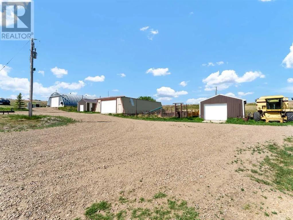 Turnkey Farming Operation, East of Medicine Hat! Opportunities like this are rareâthis fully operational and meticulously maintained farming setup is just 30 minutes east of Medicine Hat. It offers everything you need to step seamlessly into rural living and agricultural success. Spread across four quarters (three cultivated, one developed), each quarter is individually fenced and ready for use. Two deep, high-output wells (approx. 260 ft) provide an abundant water supply to the residence and the operation. At the heart of the home quarter sits a stunning 1,635 sq ft walkout bungalow, built in 2015. With an open-concept layout, vaulted ceilings, and expansive windows, the home is bright, spacious, and inviting. The kitchen is well-appointed with rich cabinetry, quartz countertops, and ample workspace. The primary suite features a walk-in closet and a luxurious 4-piece ensuite with a separate tub and shower. Two additional bedrooms, a second full bath, a powder room, and main floor laundry complete the main level. The fully developed basement offers a generous family room, games area, office space, a fourth bedroom, 2-piece bath, and plenty of storage. There is a detached garage next to the home measuring 24x26. Outbuildings and infrastructure include 62â x 51â heated Quonset/shop with a concrete floor, 39â x 72â additional quonset, 16â x 20â bunkhouse, 20â x 32â shop, Steel corral system and a Calving barn. There is approximately $6,000/year in well site lease revenue. This is a rare, high-quality offering for those seeking a productive, turnkey operation paired with modern, comfortable living. (id:27476)
