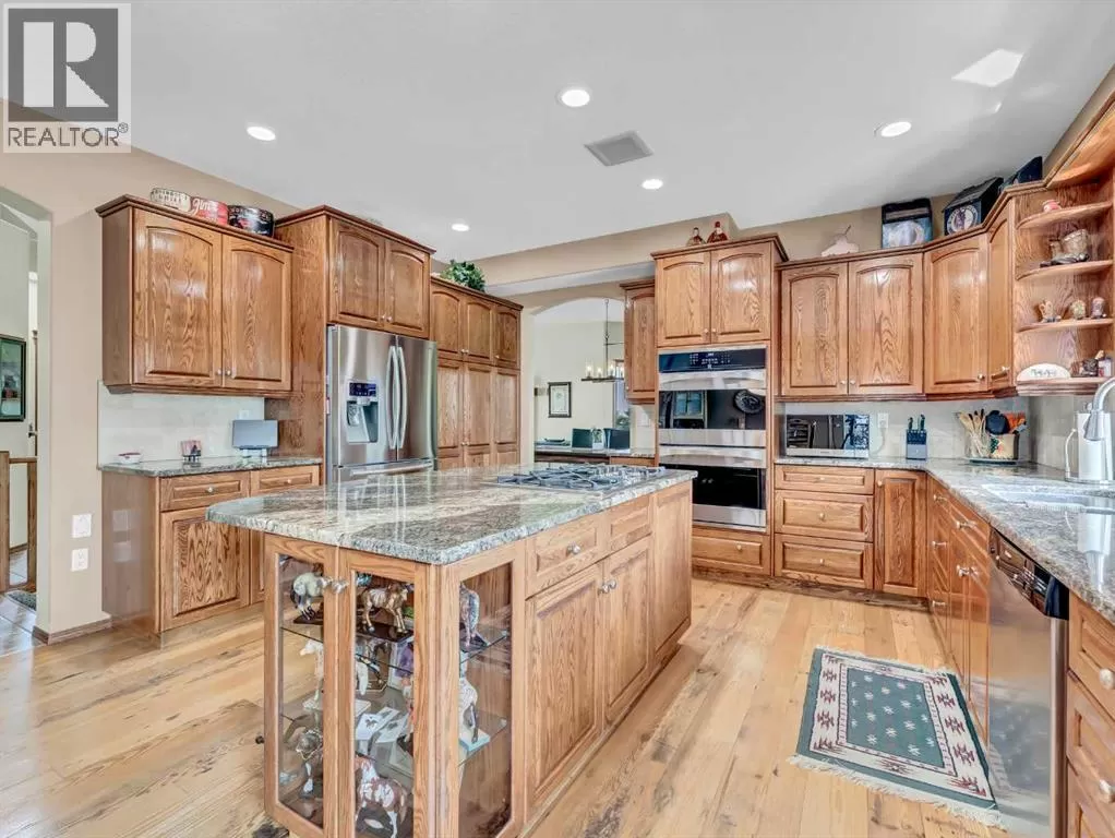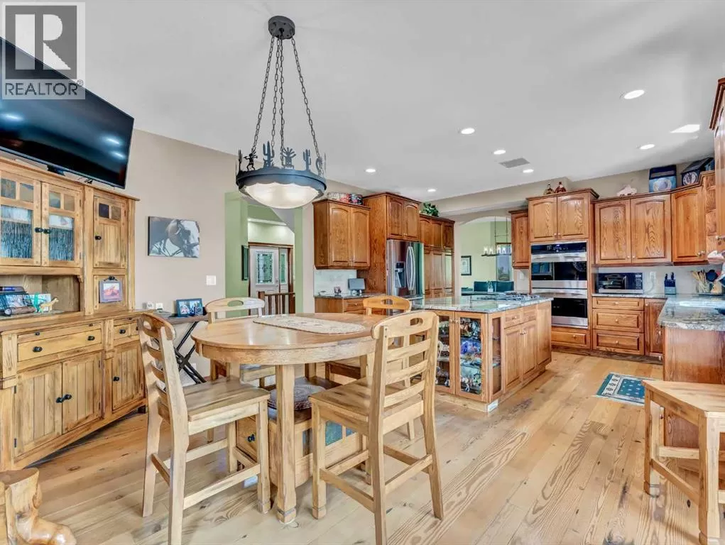 Dare to Dream? Make your dreams come true on this one-of-a-kind property! 150 acres +/- of Paradise just a 15 minute drive from the city of Medicine Hat ( all on paved road). This property has it allâ¦AG2 Zoning; Facilities to board horses ( Barn with floor drain , Riding Arena, Shelters , 3 Waterers, Cross fenced ) , Workshop with upgraded power and ventilation system, Paint Shop, Extra Large Heated Workshop with Oversized door and a Cold Room set up (perfect for hunters), temperature controlled Greenhouse, Steel Sheds , Kennel, Dugout ( SMRID water ), Registered Dam, 40 acres +/- of dry flat land currently seeded to hay ( possibility to add irrigation rights for this ). Live your best life AND incorporate multiple revenue streams! All of this PLUS over 3000 sq ft of living space on 3 levels in a custom built walk-out 2 storey home. This well considered design speaks of quality and care. The Kitchen features Top Notch custom cabinetry, granite counter-tops , gas range , and dual wall ovens. There is a breakfast space with adjacent deck with a gas line for the BBQ, as well as a formal dining area with access to the Wrap Around Deck. Both decks offer privacy and some very nice views tucked in amongst the mature trees and landscaping. There is a conveniently located main floor laundry, a 2-piece powder room with a copper sink, the living room features a cosy wood pellet stove, and there is quality tile and warm distressed board flooring throughout the main floor. There are 2 spacious bedrooms on the upper level including the primary with walk-in closet and an exceptional ensuite with soaker tub , walk-in shower, and dual sinks. There is also a second full bathroom on this level .The lower level walk-out basement offers excellent light and leads out to an at-grade patio space overlooking the lawn. There is a large family room with a unique coffered wood ceiling, office nook, third bedroom, full bathroom, cold storage room, gas fireplace, and the utility room. Other features include an attached heated double garage 28 x 30 with oversized door, and RV pad with power hook-up. This is a home and location that must be seen to be truly appreciated! Call your REALTOR® for a private viewing , then consider purchasing the lifestyle you have always dreamed of. Seller will consider trade towards purchase on a smaller property. (id:27476)
