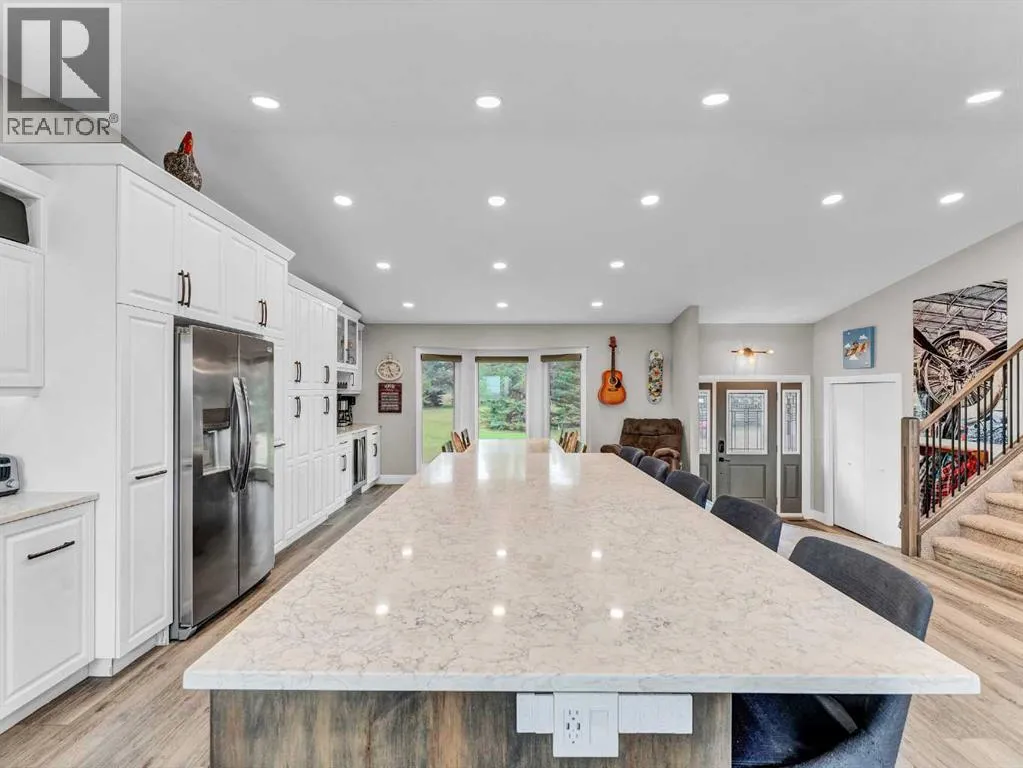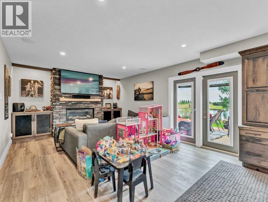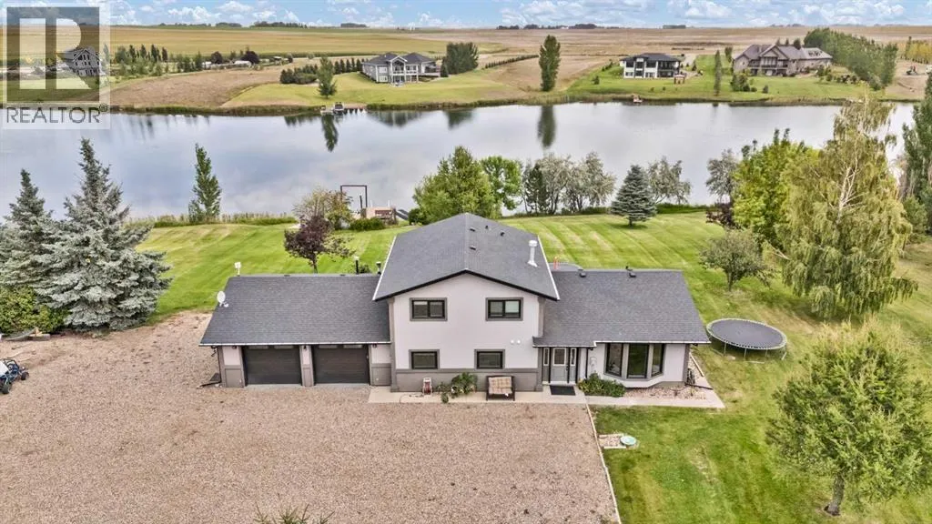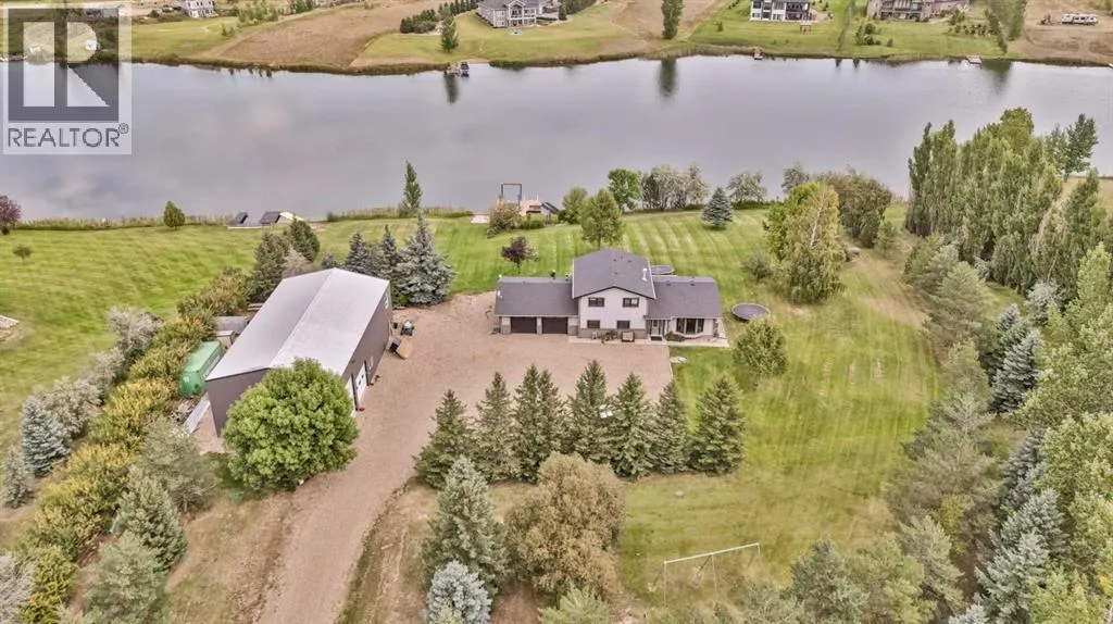 Lakefront Acreage Paradise: The Ultimate Escape for Family, Fun & FreedomWelcome to your dream lifestyleâwhere every day feels like a getaway! Nestled on 2.84 acres of pristine land, this stunning lakefront property offers the perfect blend of adventure, relaxation, and modern comfort, all less than 20 minutes from downtown.Live the Lake Life: Step out your back door and onto your private dockâcomplete with a swimming ladder and a lake stocked with fish, ready for your boat, paddleboard, or lazy afternoon swim. Whether youâre an early-morning angler or sunset cruiser, this is the waterfront oasis youâve been waiting for. Room for All Your Passions: A massive 36â x 66â heated shop with a mezzanine is every hobbyistâs dreamâideal for your toys, tools, projects, or even a home business. Thereâs space for boats, RVs, and more, so your adventures donât have to end at the shoreline. A Home Built for Family & Entertaining: Inside, youâll find a welcoming, open-concept kitchen designed for gathering and celebrating, with plenty of space for friends and family to connect. The expansive master bedroom is your personal retreat, offering breathtaking lake views and a private ensuite. Upstairs, two additional bedrooms and a main bath provide comfort for kids or guests, while the main floor offers a convenient laundry room and another bedroomâperfect for flexible living arrangements. Designed for Living Well: Custom built-in desk area off the living roomâideal for remote work or homework. Cozy gas fireplace for those chilly Alberta evenings, Basement family room and bedroom for movie nights, playdates, or guest stays. Outdoor playground for the kids, so adventure is always just steps away, Reliable water co-op supply for peace of mindThis is more than just a homeâitâs a lifestyle upgrade. With wide open spaces, lakefront tranquility, and every amenity you could want, this property is ready to become your familyâs ultimate escape from the everyday hustle.Ready to make every da y feel like a holiday?Book your private showing and discover the magic of lake acreage living today! (id:27476)