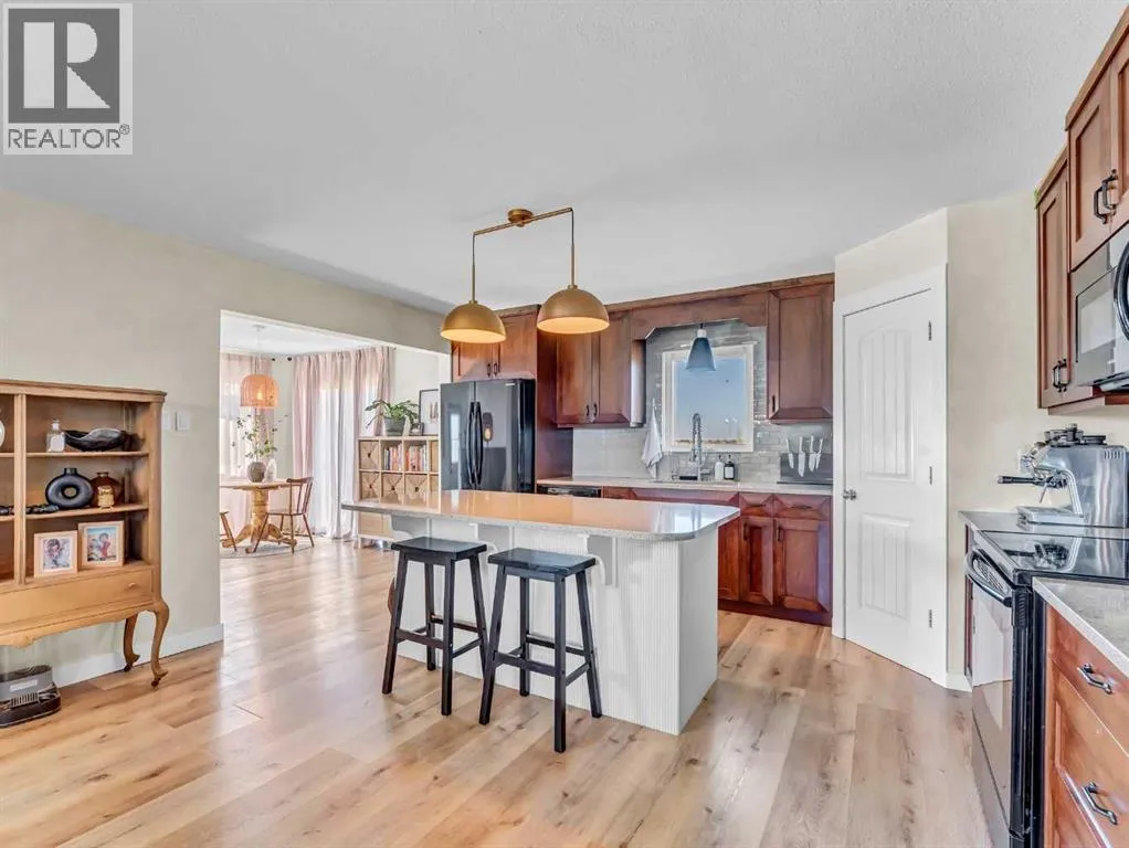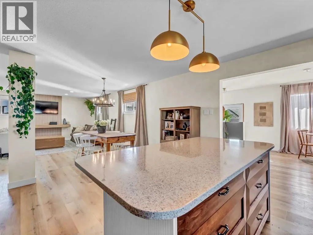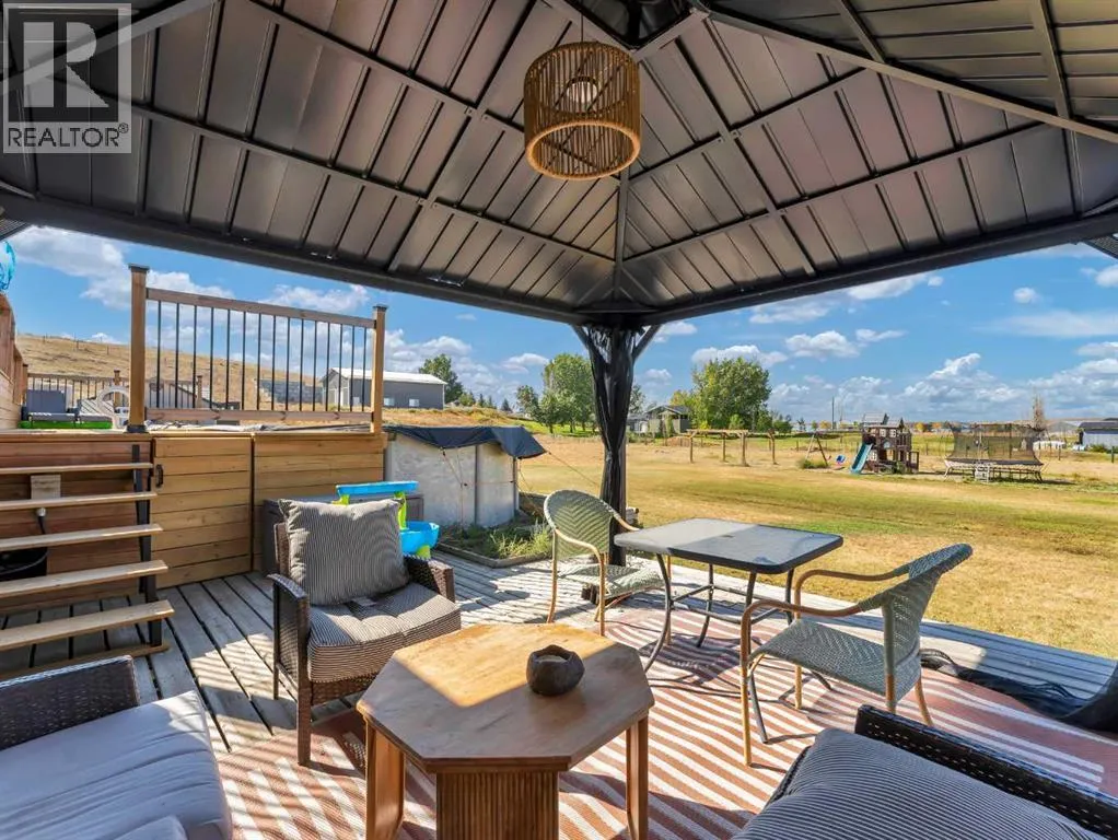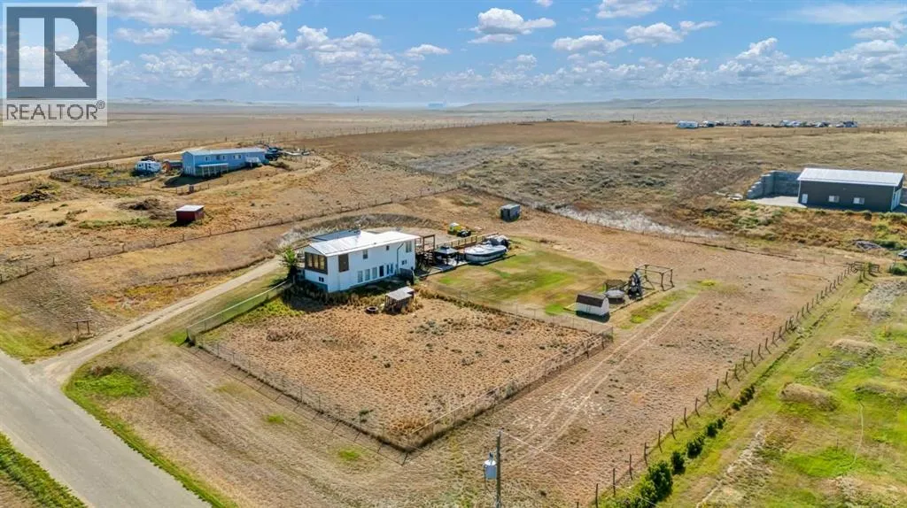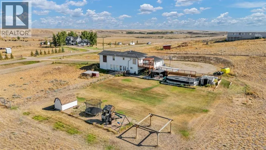 If youâve been looking for that perfect mix of peaceful country living with the convenience of being just minutes from Medicine Hat â this is it. This 2.19-acre turnkey property is beautifully updated and ready for its next family. Inside, this home shines with updates throughout. The kitchen renovation features custom Hiebert cabinetry, quartz countertops with an island offering seating, an attractive backsplash and updated appliances, lighting, and fixtures â creating a modern, timeless space. On the main floor youâll appreciate an Open concept footprint with a flex space perfect for peaceful morning coffee, the kitchen, dining and cozy living room, find 2 bedrooms, 2 full bathrooms and access to both the front and back decks. The primary suite offers beautiful custom built in closets, a gas fireplace, and a luxurious en-suite with a dual-head custom tile shower, quartz counters, and double sinks. The walkout basement is fully developed with in-floor heating, 3 additional bedrooms, a flex area off the access to outside, a 4-piece bath, laundry room (with cabinets + washer/dryer included), and a full theater room â complete with projector, screen, and receiver. Step outside from the dining area onto the deck, perfect for BBQs and entertaining while overlooking the yard with access to your heated above ground pool. The irrigated yard has plenty of space for kids, pets, or future development. Bonus inclusions: 3 storage sheds, a greenhouse, chicken coop, kidsâ play center, trampoline, a John Deere lawn tractor, and a quad with snow blade â everything you need to just move in and enjoy. The acreage is fully fenced with post-and-wire plus chain link cross-fencing (2019), and a newer concrete driveway (2019) leads you right up to the heated single attached garage. Inside the garage youâll find a functional workspace and an in-ground 1000-gallon cistern, fed by the well with a brand-new pump (2021). The upgraded water filtration system includes a softener (2015), 120-gal lon chlorine filtration (2019), and carbon/sediment filters (2019) â all set up for peace of mind. This private, well-cared-for property truly has it all â updates, space, and comfort in a country setting close to town. Donât wait â book your private showing today! (id:27476)
