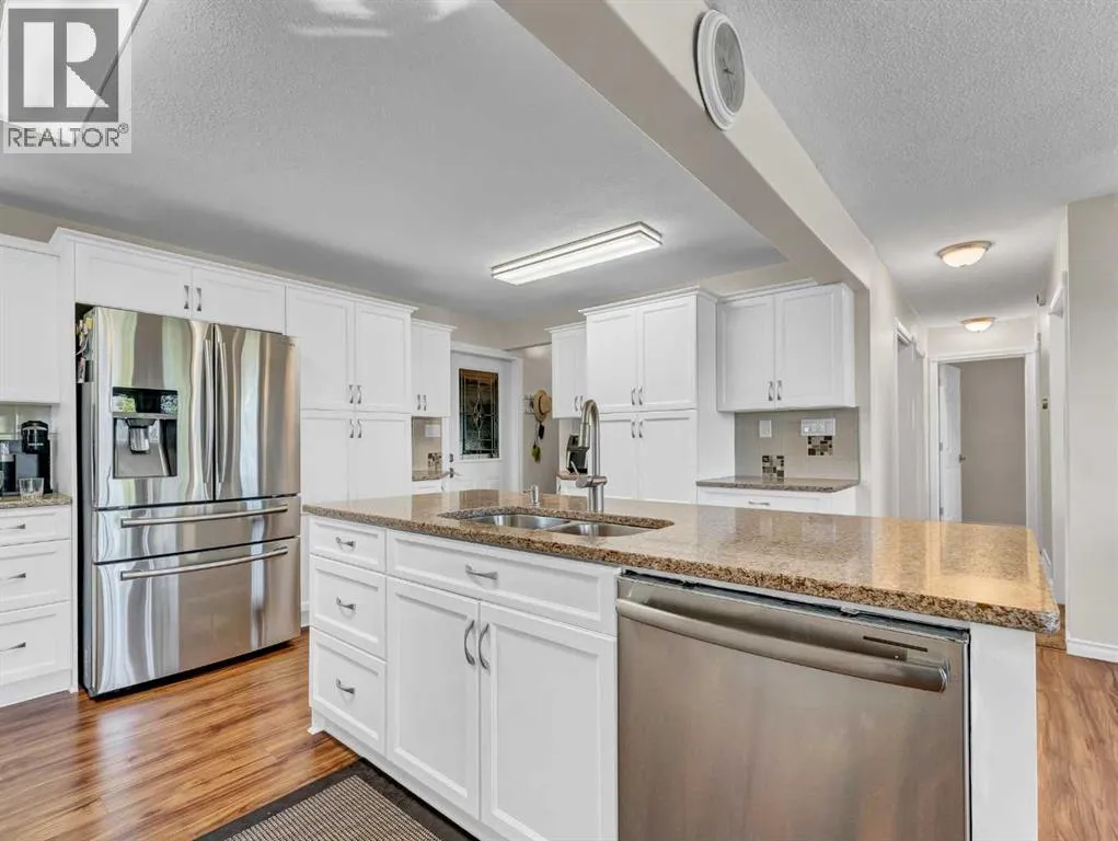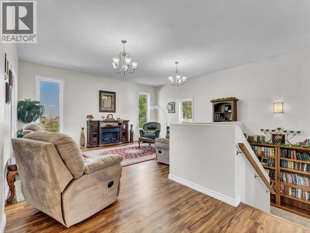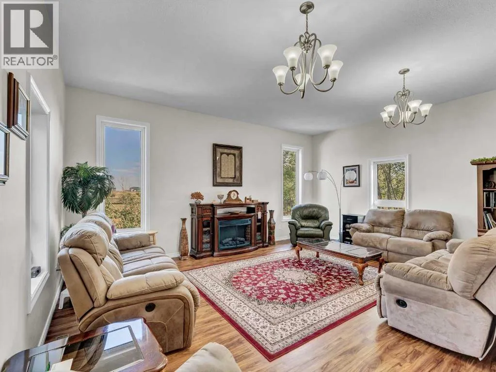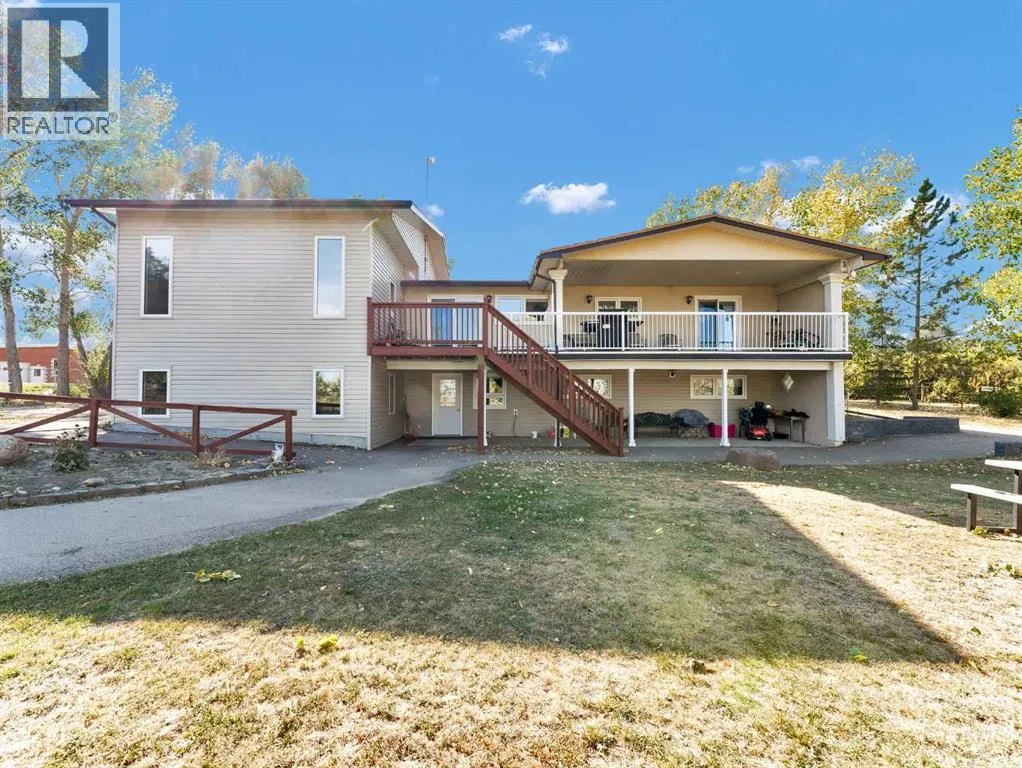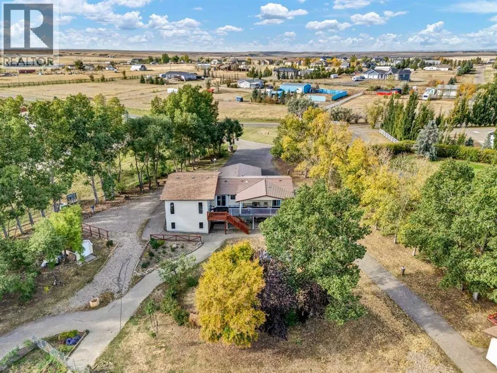 Beautifully set on 3.24 acres in Eagle Butte Estates, just minutes from Medicine Hat. This impressive 1800sq ft Walkout bungalow (plus fully finished lower floor) offers modern country living and has been completely rebuilt within the last 10 years, including wiring, plumbing, interior, and exterior. A spacious entry with 10ft ceilings welcomes you into a bright home office, a granite kitchen with large island, full appliance package and huge dining area that opens to a deck spanning the back of the home to capture the morning sun. The upper deck has a BBQ with gas hook-up and there is a matching lower deck also spanning the back of the house. The living room, also with 10 ft ceilings, features large windows and a cozy electric fireplace, while the primary suite offers a walk-in closet, 5-piece ensuite and deck access. The fully developed, wheelchair accessible walkout basement includes a family room, games area, gym, two additional bedrooms, bathroom with large wheelchair accessible shower. Additionally, there is a room lined with built-in cabinets that is currently being used as a massage spa. This space is ideal for any home-based business. Outside, the property is nearly fully fenced and landscaped with an irrigation system to 90% of the perimeter trees that also waters the fenced garden and berry patches. There is a paved walking path with benches and numerous outbuildings including a heated, attached double garage, a large shop with in-floor heat, a winterized chicken coop, a semi-trailer for storage, a shed, and even a unique observatory with heat, A/C and retractable roof. This building could be repurposed as an office with built-in storage area. Surrounded by mature trees, with city water and access to a shared dugout, this property combines privacy, functionality and endless opportunity for both work and leisure. (id:27476)