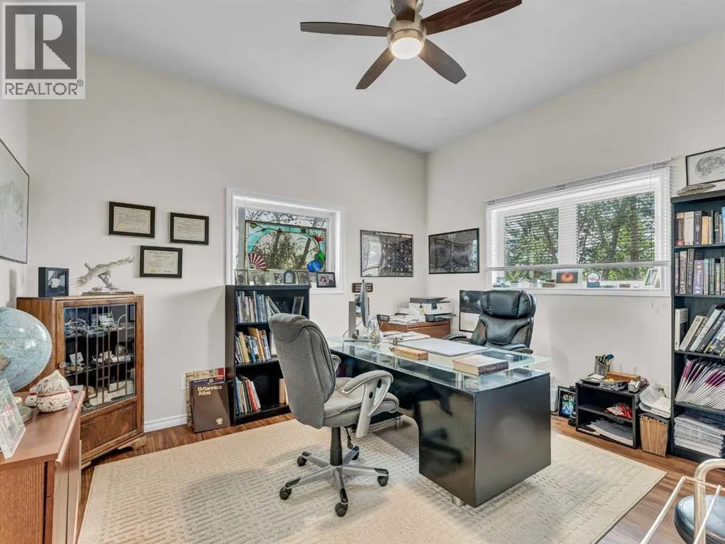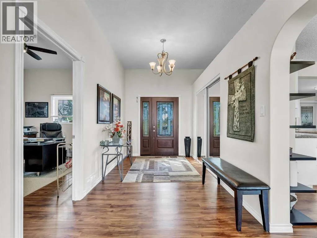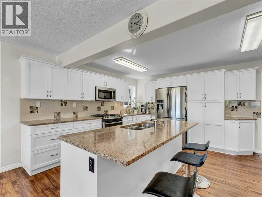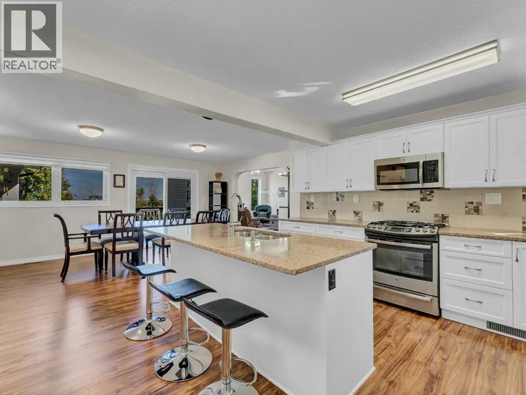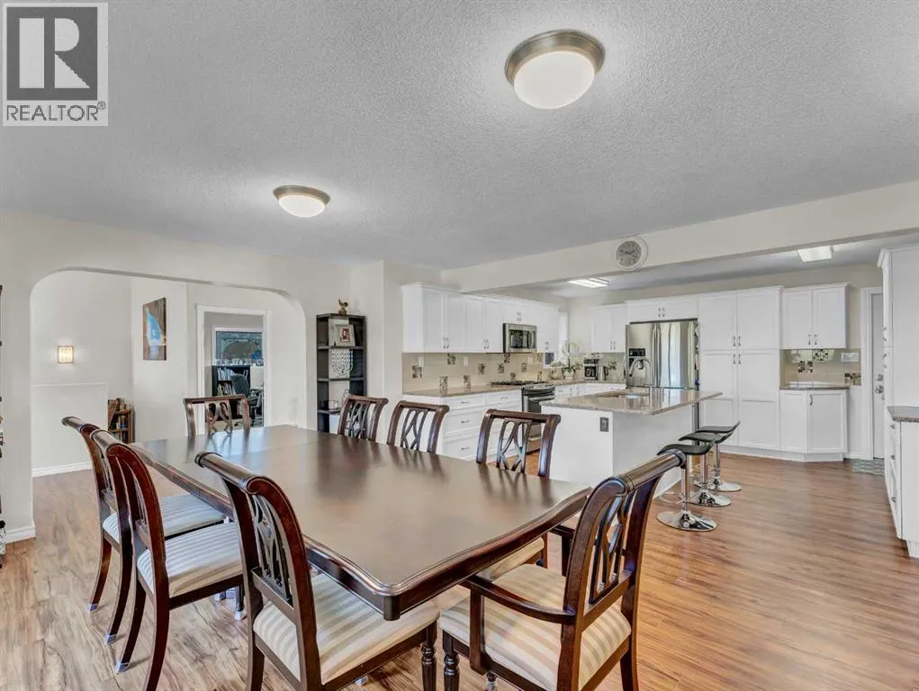 Beautifully set on 3.24 acres in Eagle Butte Estates, just minutes from Medicine Hat. This impressive 1800sq ft Walkout bungalow (plus fully finished lower floor) offers modern country living and has been completely rebuilt within the last 10 years, including wiring, plumbing, interior, and exterior. A spacious entry with 10ft ceilings welcomes you into a bright home office, a granite kitchen with large island, full appliance package and huge dining area that opens to a deck spanning the back of the home to capture the morning sun. The upper deck has a BBQ with gas hook-up and there is a matching lower deck also spanning the back of the house. The living room, also with 10 ft ceilings, features large windows and a cozy electric fireplace, while the primary suite offers a walk-in closet, 5-piece ensuite and deck access. The fully developed, wheelchair accessible walkout basement includes a family room, games area, gym, two additional bedrooms, bathroom with large wheelchair accessible shower. Additionally, there is a room lined with built-in cabinets that is currently being used as a massage spa. This space is ideal for any home-based business. Outside, the property is nearly fully fenced and landscaped with an irrigation system to 90% of the perimeter trees that also waters the fenced garden and berry patches. There is a paved walking path with benches and numerous outbuildings including a heated, attached double garage, a large shop with in-floor heat, a winterized chicken coop, a semi-trailer for storage, a shed, and even a unique observatory with heat, A/C and retractable roof. This building could be repurposed as an office with built-in storage area. Surrounded by mature trees, with city water and access to a shared dugout, this property combines privacy, functionality and endless opportunity for both work and leisure. (id:27476)