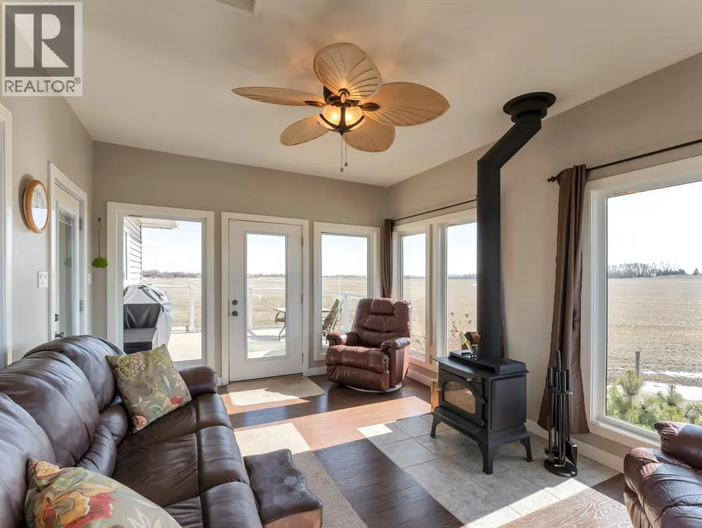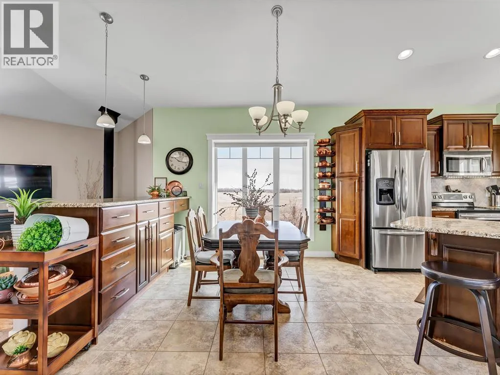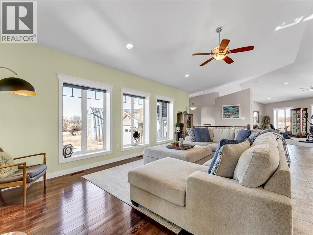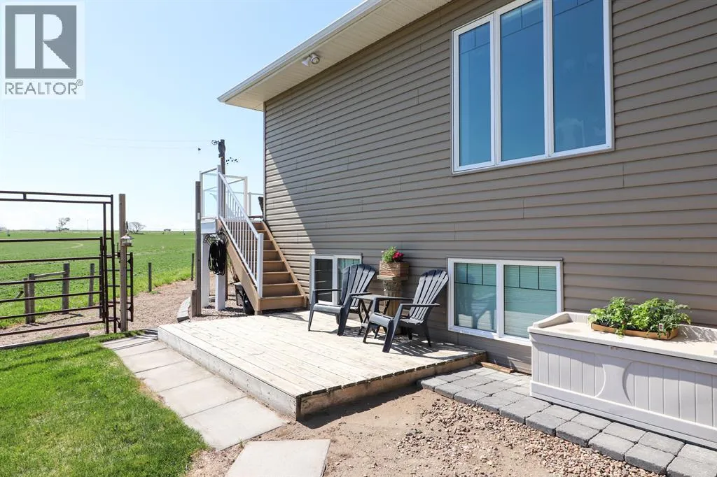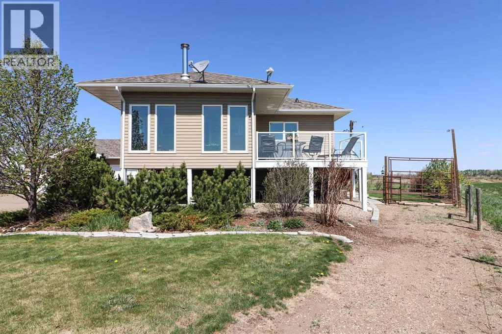 You can have it ALL... Country living, 3km paved from the City. Fully developed 3339 sq.ft. beautiful, modern bi-level built ICF construction to the roof. Geothermal heated, City water. The home has 4 bedrooms, a main floor office, 3 full bathrooms and a triple garage. Infloor heating and efficient home. Massive Quonset - 50x120, as well as 2 sheds. A total of 5.29 beautiful acres of low maintenance, private, picturesque yard with a garden, fruit trees and grassland for any animals or hobbies. The possibilities are endless with this rare find! (id:27476)