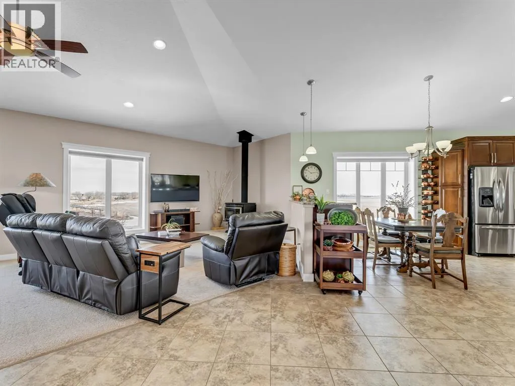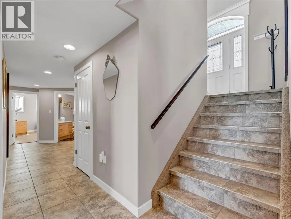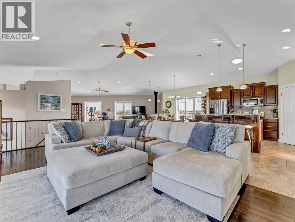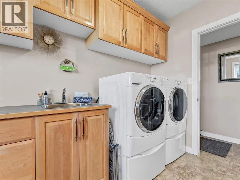 You can have it ALL... Country living, 3km paved from the City. Fully developed 3339 sq.ft. beautiful, modern bi-level built ICF construction to the roof. Geothermal heated, City water. The home has 4 bedrooms, a main floor office, 3 full bathrooms and a triple garage. Infloor heating and efficient home. Massive Quonset - 50x120, as well as 2 sheds. A total of 5.29 beautiful acres of low maintenance, private, picturesque yard with a garden, fruit trees and grassland for any animals or hobbies. The possibilities are endless with this rare find! (id:27476)
