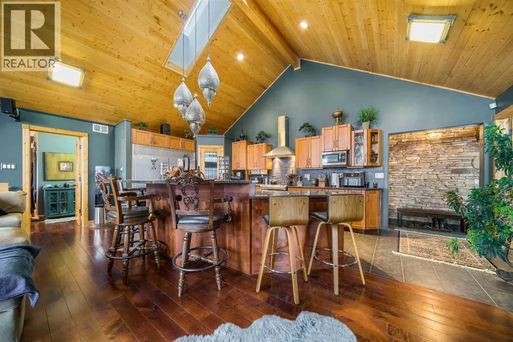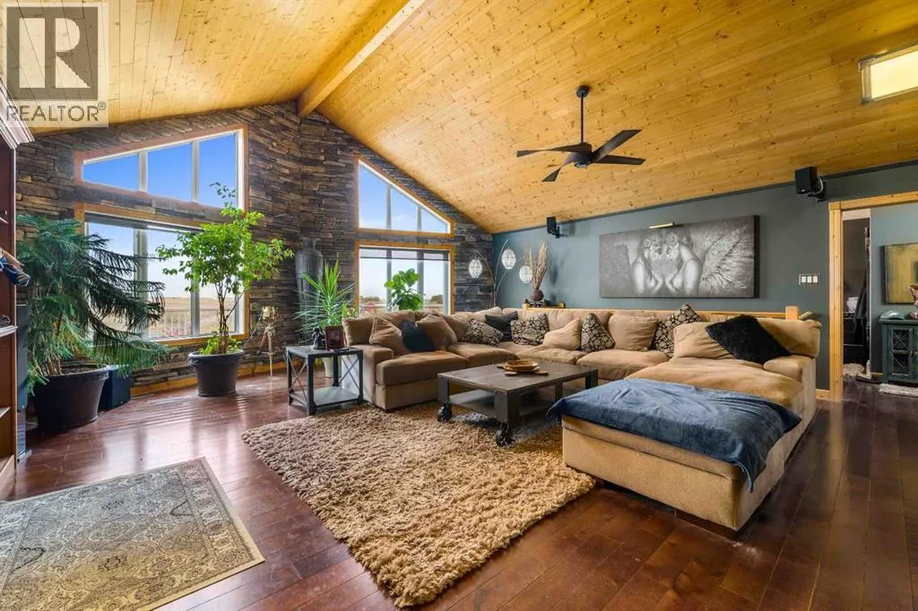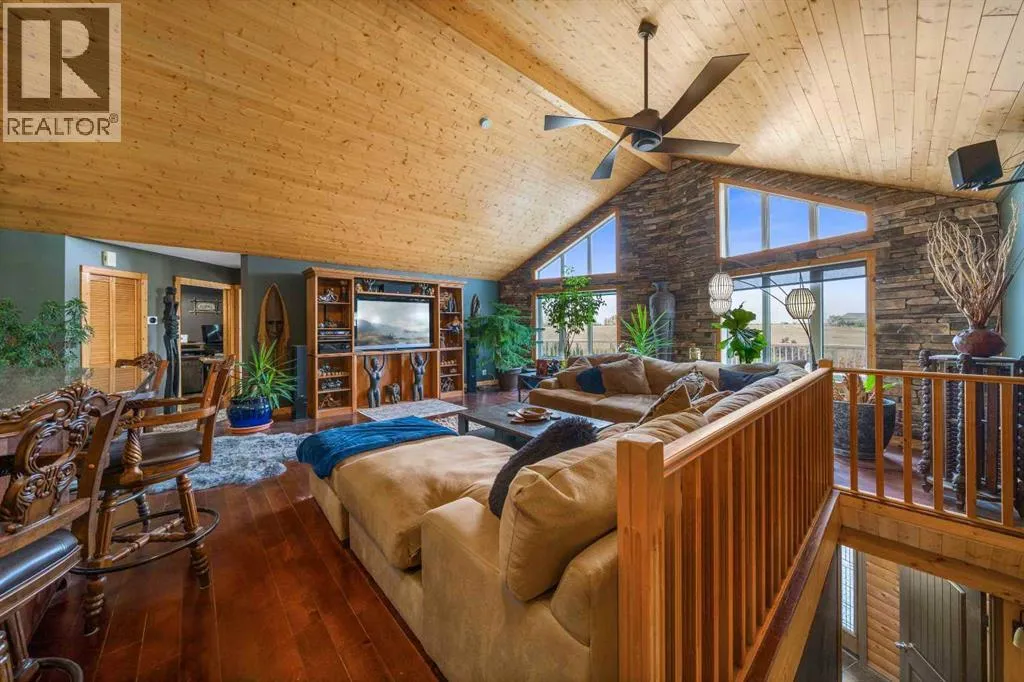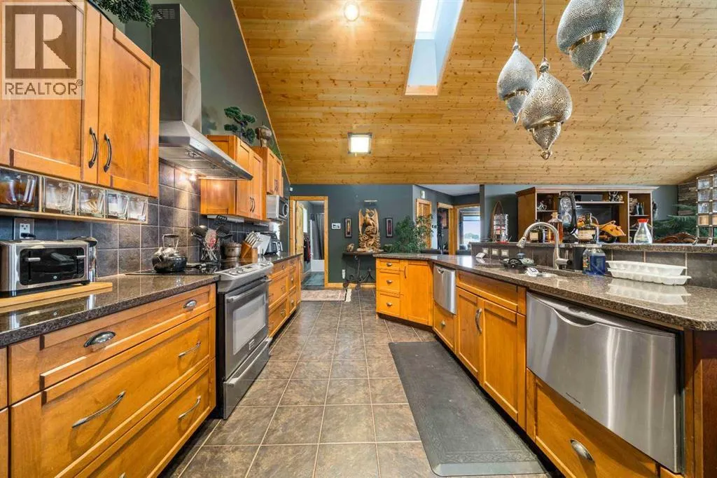 Escape to serene country living in this breathtaking 5 bedroom, 3 bathroom, walk-out bungalow, nestled on just over 2 acres, minutes from Medicine Hat. This custom built gem offers modern luxury, tranquil privacy, with spectacular sunsets that will take your breath away. Step inside to a bright, open concept main floor, kitchen and living area, with vaulted ceiling and exquisite rock work accents throughout. The gourmet kitchen boasts custom built oak cabinetry, sleek granite countertops, top of the line appliances, perfect for the home chef.Also on the main floor, the primary bedroom with spa like ensuite, and walk in closet. 2 additional bedrooms and a 4 piece bathroom complete this level. Downstairs is an entertainers dream with walk-out, 2 large bedrooms, family rec room with 120â 3 D projection, and 7.1 surround sound that absolutely kicks ( negotiable), a recently renovated bathroom, convenient laundry area, and mechanical room with a high efficient furnace and filtration, hot water on demand, and cistern for domestic water which is provided from Westside Water Co-op. ( water rights option to purchase ).Outside you have a beautiful, private backyard that is an entertainerâs paradise, complete with patio area, firepit, and luxurious salt water hot tub, perfect for relaxing or hosting gatherings with friends and family. Also, SMRID water for keeping your yard, trees or garden looking great.The large heated garage is perfect for your vehicles, toys, or room for those hobby projects. New shingles and siding were installed in 2023. Donât miss out on this opportunity to enjoy the peace and privacy of rural living, and only a short drive to Medicine Hat. (id:27476)