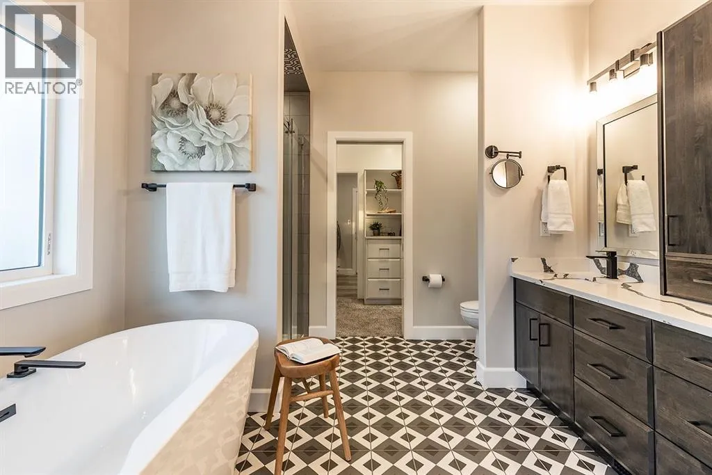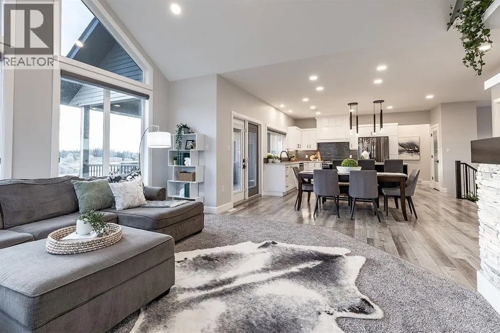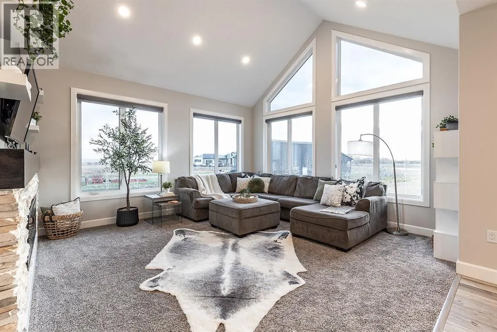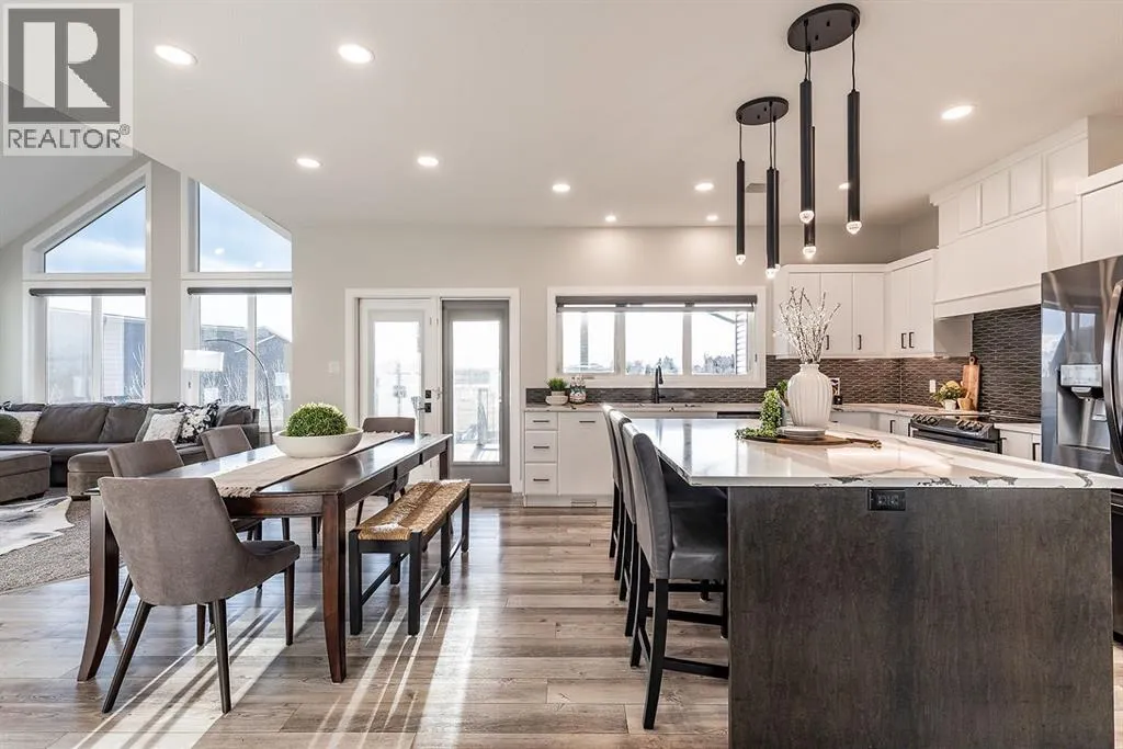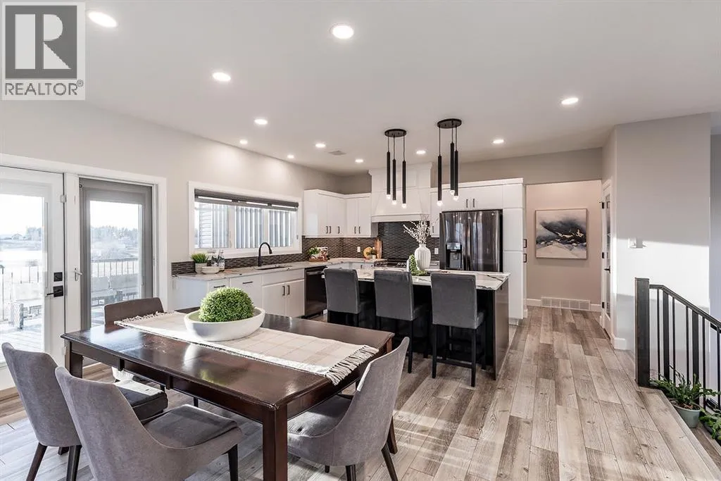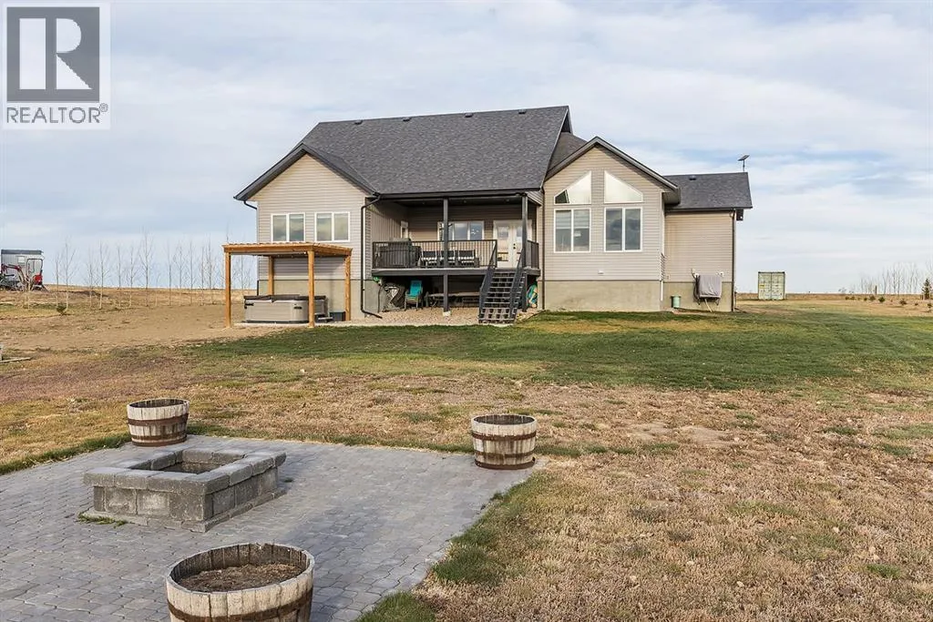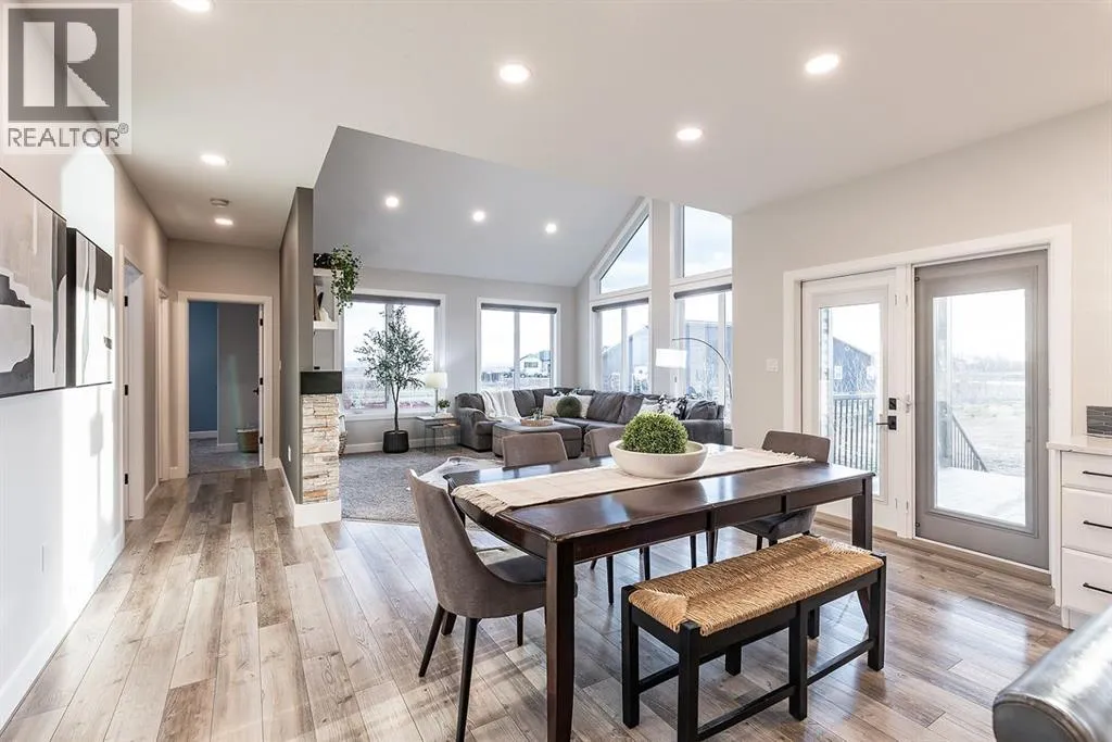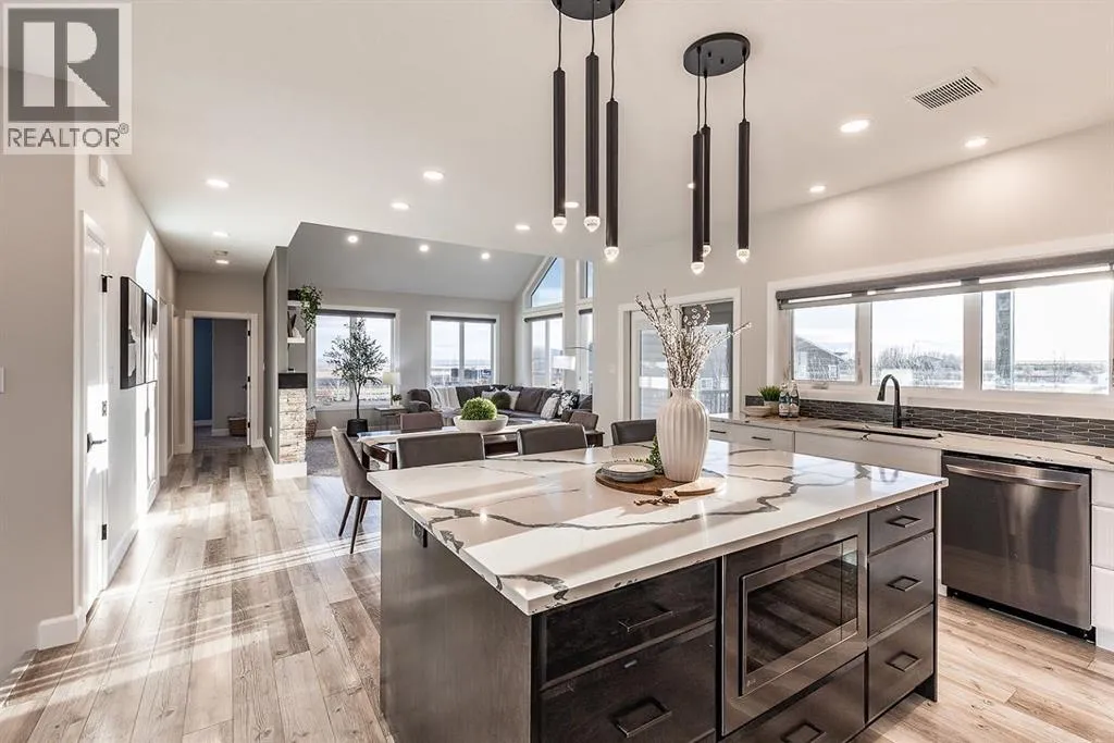 Welcome to the kind of lakefront lifestyle most people only dream about. Tucked along the peaceful shores of Klaudtâs Dam and only 15 minutes from town, this 2.17-acre property isnât just a home â itâs a place where families grow, gather, and make memories all year long. From summer mornings spent on the water to winter evenings skating under prairie skies, this is a lifestyle that invites you to slow down, breathe deeper, and truly enjoy where you live.At the center of it all is a beautiful custom bungalow that blends thoughtful design with timeless style. The main floor welcomes you with an open-concept layout that frames those incredible lake views from every angle. The kitchen is built for connection â a large island for kids to perch at, quartz countertops, high-end appliances, and plenty of space to cook, gather, and celebrate!! Vaulted ceilings and a cozy fireplace make the living room the heart of the home, whether youâre hosting friends or winding down after a day on the lake. Step out onto the covered deck to take in the calm water, the huge yard, and the simple joy of having nature as your backdrop. The primary suite feels like a private retreat with its own lake views, a spa-inspired ensuite, and a clever pass-through walk-in closet connected directly to the laundry room â the kind of everyday convenience you wonât know how you lived without. Two more bedrooms and a full bath round out the main floor. The fully finished lower level adds even more room for living and playing. A spacious family area, rec room, and a flexible space perfect for a gym, playroom, home office, or hobby room make it easy for everyone to have their own corner of the home. Two additional bedrooms (the flex space could become a 6th if needed) and another full bath create the ideal setup for kids, guests, or multigenerational living. And then thereâs the garage â oversized, heated, a dog run, hot & cold water, and built with both practicality and possibility in mind. Park multiple vehicles, set up a workshop, or store all the gear that comes with true acreage and lakefront living. With city water from West Side Water Co-Op and pressurized for irrigation, caring for the property is effortless. The expansive yard is ready for family barbecues, outdoor adventures, and long, relaxed evenings under the open prairie sky. And with the lake just steps away, every season brings something to look forward to â swimming, fishing, paddleboarding, skating, or simply sipping your morning coffee by the water.Whether youâre searching for a full-time family home or a place to escape and reconnect, this lakefront acreage in this special community offers something rare: luxury that feels liveable, nature at your doorstep, and a lifestyle designed for connection, adventure, and joy. This home is in immaculate condition; all that is to do is move in and start enjoying! (id:27476)