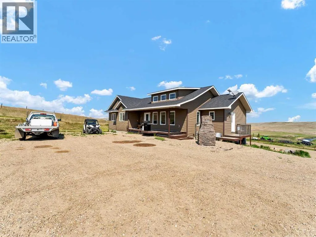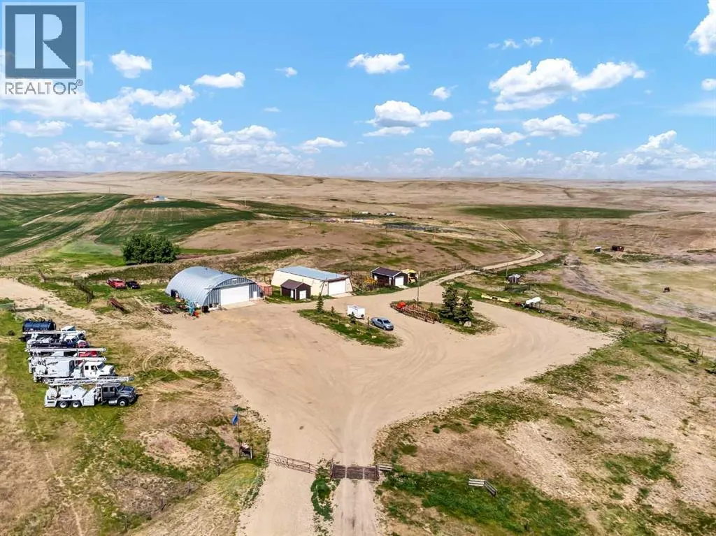 Turnkey Farming Operation, East of Medicine Hat! Opportunities like this are rareâthis fully operational and meticulously maintained farming setup is just 30 minutes east of Medicine Hat. It offers everything you need to step seamlessly into rural living and agricultural success. Spread across four quarters (three cultivated, one developed), each quarter is individually fenced and ready for use. Two deep, high-output wells (approx. 260 ft) provide an abundant water supply to the residence and the operation. At the heart of the home quarter sits a stunning 1,635 sq ft walkout bungalow, built in 2015. With an open-concept layout, vaulted ceilings, and expansive windows, the home is bright, spacious, and inviting. The kitchen is well-appointed with rich cabinetry, quartz countertops, and ample workspace. The primary suite features a walk-in closet and a luxurious 4-piece ensuite with a separate tub and shower. Two additional bedrooms, a second full bath, a powder room, and main floor laundry complete the main level. The fully developed basement offers a generous family room, games area, office space, a fourth bedroom, 2-piece bath, and plenty of storage. There is a detached garage next to the home measuring 24x26. Outbuildings and infrastructure include 62â x 51â heated Quonset/shop with a concrete floor, 39â x 72â additional quonset, 16â x 20â bunkhouse, 20â x 32â shop, Steel corral system and a Calving barn. There is approximately $6,000/year in well site lease revenue. This is a rare, high-quality offering for those seeking a productive, turnkey operation paired with modern, comfortable living. (id:27476)