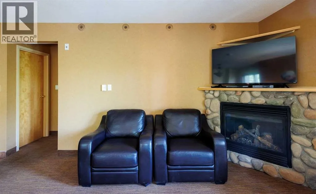 MOTIVATED SELLERS!!! Nestled quietly in the beautiful Cypress Hills, Elkwater is a year-round recreational garden of delights. Only a 40-minute drive from Medicine Hat, this flourishing resort oasis offers an abundance of vacation activities: boating, water skiing, fishing, biking, golf and hiking in the summer; skating, downhill and x-country skiing in the winter. This impressive 1,122 sq.ft. 2 bedroom / 2 bath condo is located in Elkwater Lake Lodge, which offers a delightful restaurant, pool, hot tub, fire pit and room service. The main unit boasts the popular open floor plan, which is awash in natural light flooding in from the numerous windows. A fully stocked kitchen offers an abundance of cupboards, an upgraded double sink and high-end faucet, and the 2-seat island and countertops have been re-done in granite. A separate dining area abuts a spacious living room, which comfortably sits 6 people and features a river stone gas fireplace. A generous wraparound deck (with gas hookup) is accessed via the living room and affords a quiet, relaxing retreat to "chill out" and take in the wooded views. A large bedroom and a 4-piece bathroom with a soaker tub completes the main unit. The adjoining studio suite, which also has a separate entrance, offers a spacious bedroom (kingsize bed) with access to a private deck, along with a coffee bar, mini-fridge, microwave and sink, and a 3-piece bath. This ideally located condo is only a short walk to the downtown marina, sandy beach, lake, restaurant and popular cafe. Priced ridiculously below assessed value, this is a solid investment opportunity for a single family or even as a group venture. Furthermore, this Phase 1 condo is part of a revenue generating rental pool. Owner is allowed 120 days usage throughout the year with the remaining time available in the rental pool. THE OWNER RECOUPS 60% OF ANY RENTAL REVENUE, WHICH BASICALLY PAYS THE MONTHLY CONDO FEES AND ELECTRIC BILL. It comes with all the appliances and is fully furnished. This "must see" property is an all-season getaway at a very affordable price! (id:27476)