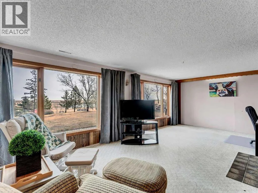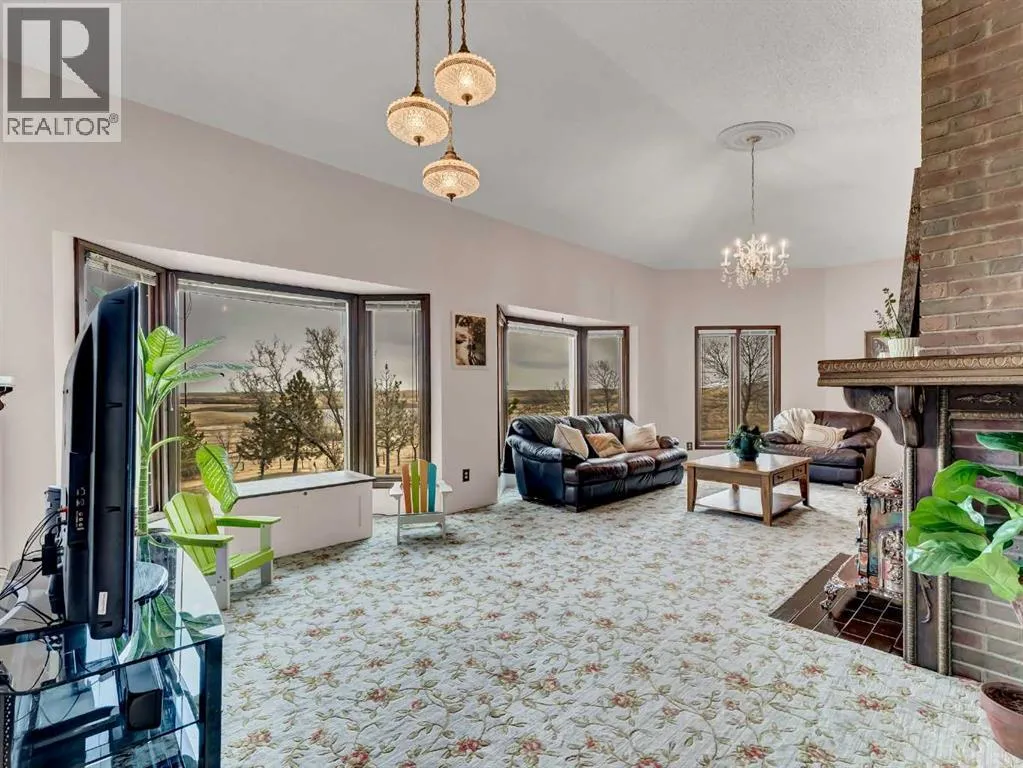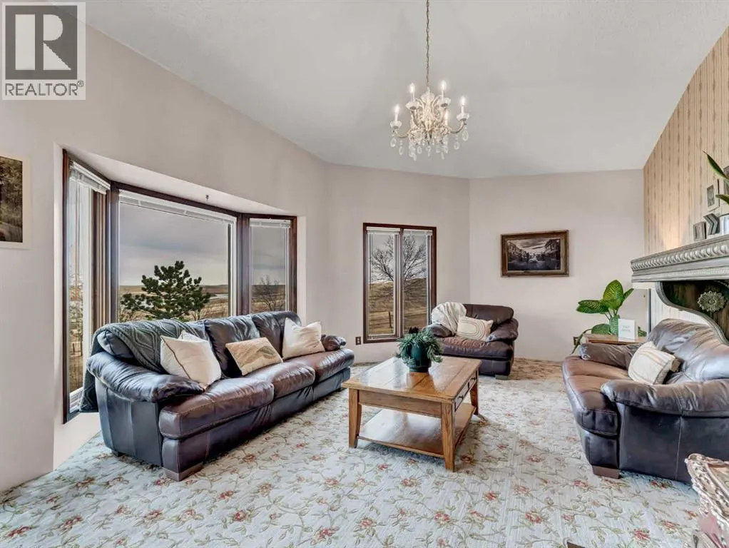 Discover the perfect blend of country charm and modern comfort on this stunning 65-acre property, ideally located just minutes from Dunmore and Irvine. Currently enjoyed as a private acreage, this property offers endless possibilities â continue to enjoy peaceful rural living, or easily transform it into a hobby farm or equestrian retreat. With space for horses, cattle, goats, or poultry, the opportunities are wide open. Nestled just off the edge of Cavan Lake, the property boasts breathtaking panoramic views of rolling hills and prairie landscape. Dreaming of summers by the pool? Youâll love the fenced-in outdoor pool with a 12' x 16' insulated and heated pump house â perfect for family fun or entertaining. Additional outbuildings include a workshop, barn, and a 24' x 26' double attached garage. The pump house, shop, and barn feature 100-amp service, and thereâs also a heated livestock water bowl for convenience. Step inside to a spacious, welcoming entryway that sets the tone for this one-of-a-kind home. Throughout, youâll notice unique architectural details and character â from the reclaimed church windows in the curved staircase to the vaulted ceilings and abundant natural light on the main level. The living room offers a cozy fireplace and large windows framing stunning and unique views of the city skyline. The kitchen provides generous counter space, a full appliance package, and flows seamlessly into the adjacent dining area. An enclosed sunroomâcurrently used as a playroomâoffers flexibility as a home office, den, or patio retreat. The main floor also features a 5-piece bathroom with double sinks and two spacious bedrooms. Downstairs, enjoy a large family room with fireplace, an additional bedroom, a 3-piece bath, and a spacious laundry room with laundry sink and plenty of storage â plus direct garage access. This property offers everything you need for the perfect balance of country tranquility and nearby city convenience. Whether youâre looking for a famil y acreage, hobby farm, or a private retreat, this property is ready to make your dreams a reality. (id:27476)