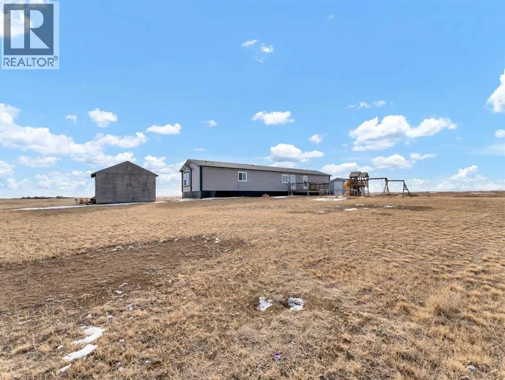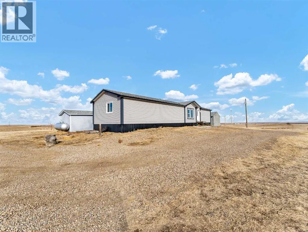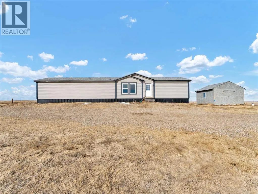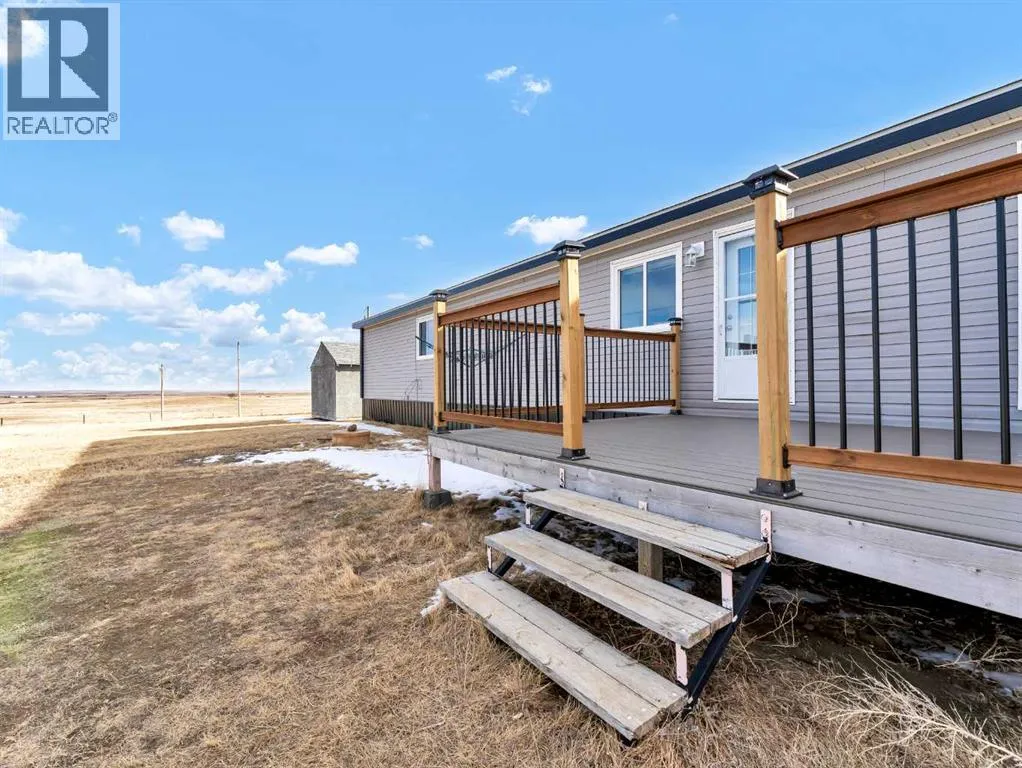 Peaceful Acreage Living with City Views!!Experience the perfect blend of quiet country life and modern style on this expansive 9.98 -acre property. Featuring a spacious modular home, this 3-bedroom, 2-bathroom residence boasts a sleek, contemporary feel. The heart of the home is an open-concept living area, highlighted by a kitchen with rich, dark cabinetry and a convenient corner pantry.The primary suite offers a private ensuite, while neutral finishes throughout provide a fresh, sophisticated atmosphere. Step out onto the deck to soak in stunning sunsets and a distant view of Medicine Hat. With a 10âx16â and 16'x16' shed, and endless room to grow, this property is ready for your personal touch. Call today for your private viewing! (id:27476)