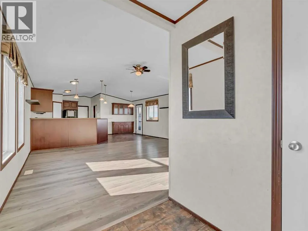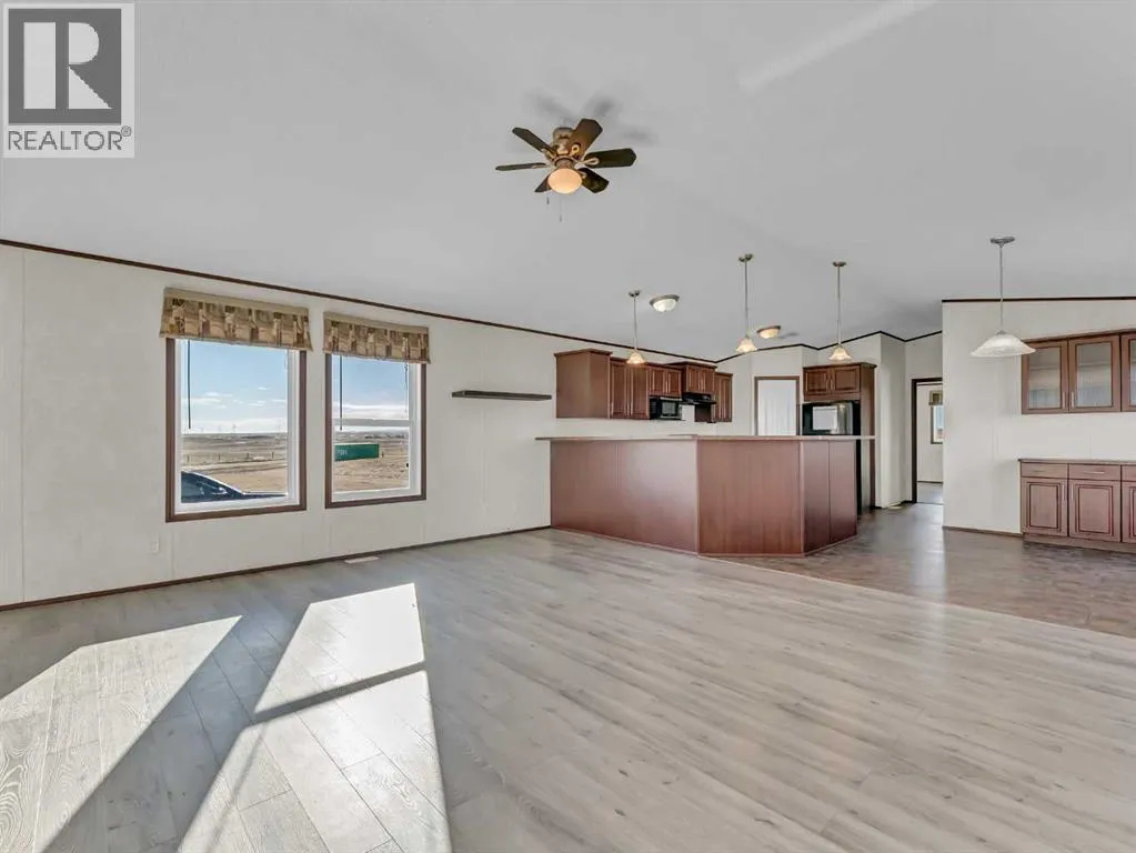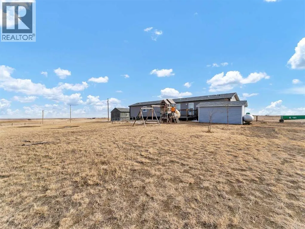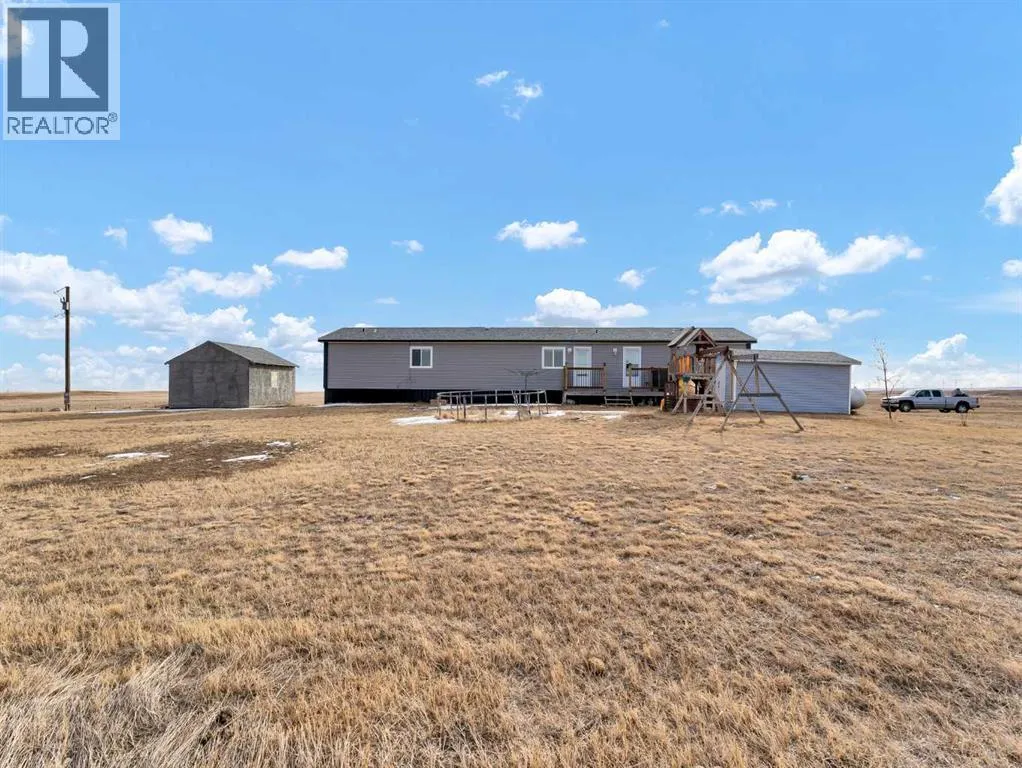 Peaceful Acreage Living with City Views!!Experience the perfect blend of quiet country life and modern style on this expansive 9.98 -acre property. Featuring a spacious modular home, this 3-bedroom, 2-bathroom residence boasts a sleek, contemporary feel. The heart of the home is an open-concept living area, highlighted by a kitchen with rich, dark cabinetry and a convenient corner pantry.The primary suite offers a private ensuite, while neutral finishes throughout provide a fresh, sophisticated atmosphere. Step out onto the deck to soak in stunning sunsets and a distant view of Medicine Hat. With a 10âx16â and 16'x16' shed, and endless room to grow, this property is ready for your personal touch. Call today for your private viewing! (id:27476)