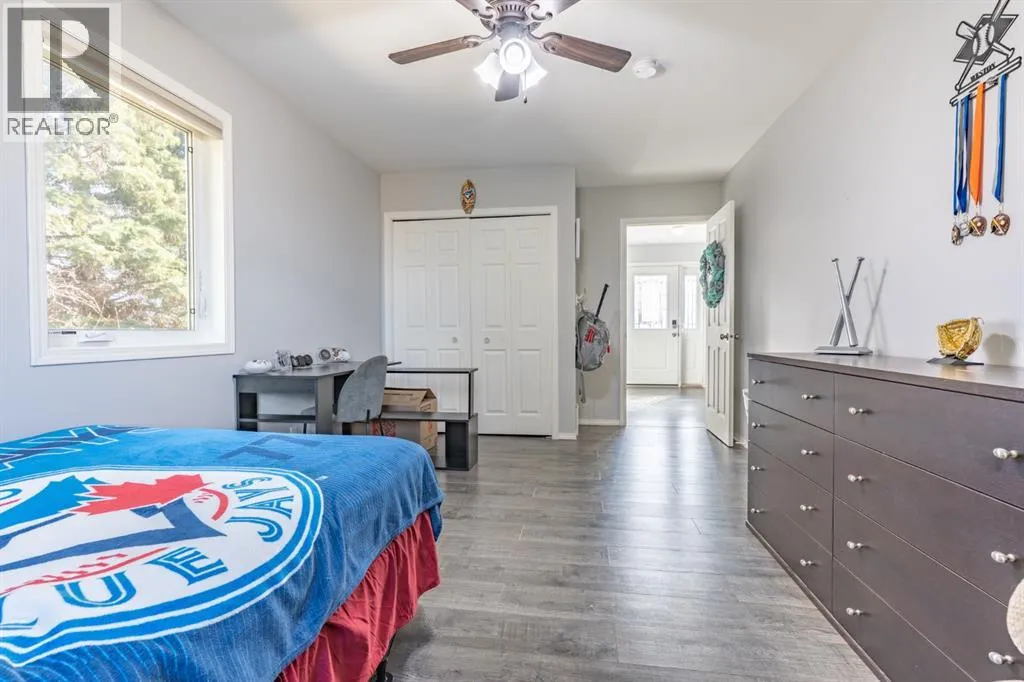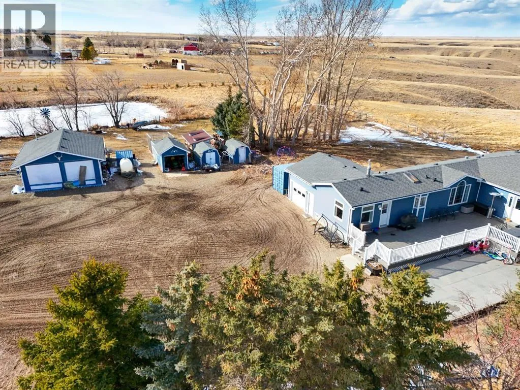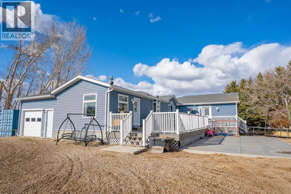 If youâve been dreaming of wide open skies and peaceful prairie views without sacrificing convenience, this beautiful acreage may be exactly what youâve been waiting for. Tucked away just 6 minutes from the city limits of Medicine Hat, this peaceful 4.94 acre acreage welcomes you with a long driveway, mature trees, and a sense of privacy that instantly sets the tone for country living. Step up onto the expansive deck and take in the incredible prairie landscape stretching out before you. Itâs the perfect place to enjoy your morning coffee, host summer BBQs, or simply relax and watch the wide open skies that make acreage living so special. Inside, the home offers 1,871 sqft of living space, including a thoughtfully designed addition completed in 2016, all conveniently laid out on one level. A spacious entryway welcomes you in with plenty of room for coats, boots, and even a small sitting or play area where you can enjoy the natural light coming through the windows. Just off the entry is the laundry room, while the hallway leads to the bright kitchen and dining area that creates a warm and functional gathering space. The adjoining living room features vaulted ceilings, a cozy gas fireplace, and a built-in counter area, perfect for a laptop workspace or organizing daily life. Down the hall youâll find 4 bedrooms plus an office, including the primary bedroom with its own ensuite, along with three additional bedrooms and a full bathroom. At the end of the home is a functional mudroom that opens to the deck, complete with a walk-in closet for additional storage. The property also features a 21 x 16 attached oversized single garage AND 23 x 29 double detached garage with radiant heat. The home is serviced by a cistern for household water and SMRID irrigation for the yard. Additional features include two furnaces, central air conditioning, composite decking and a large patio area. The perfect setup for horses, ponies and chickens! A private slice of prairie living, just min utes from the city. (id:27476)