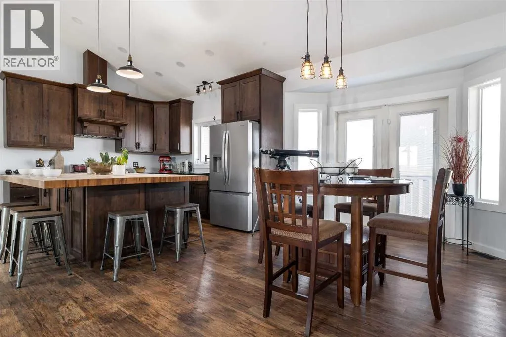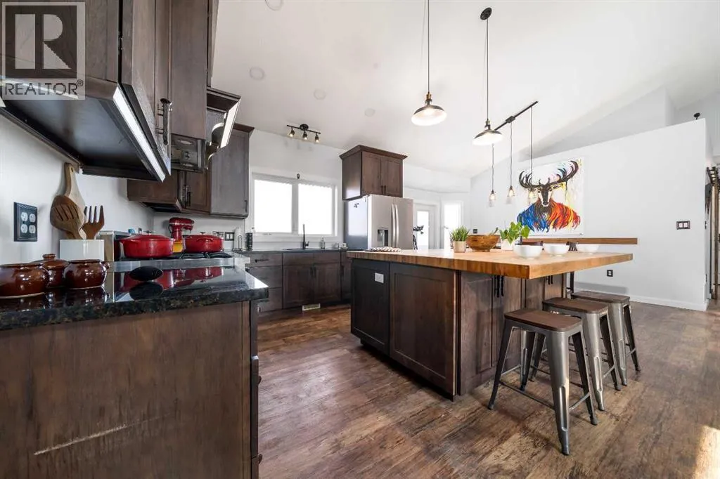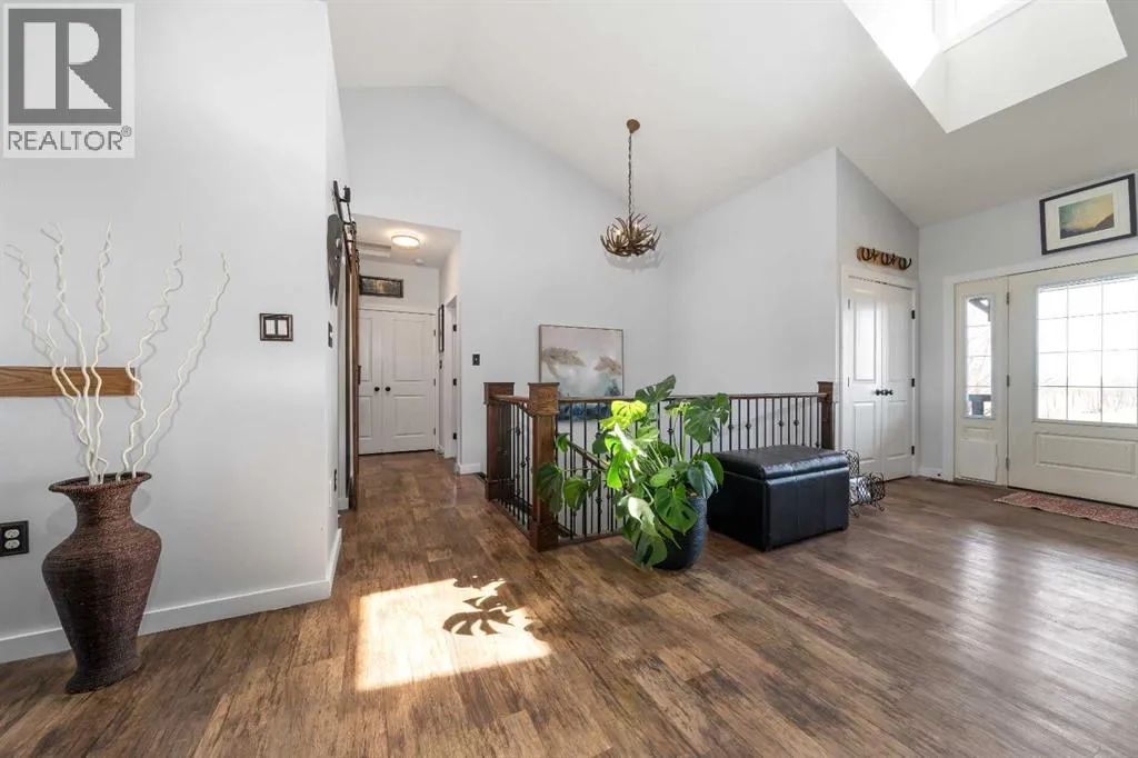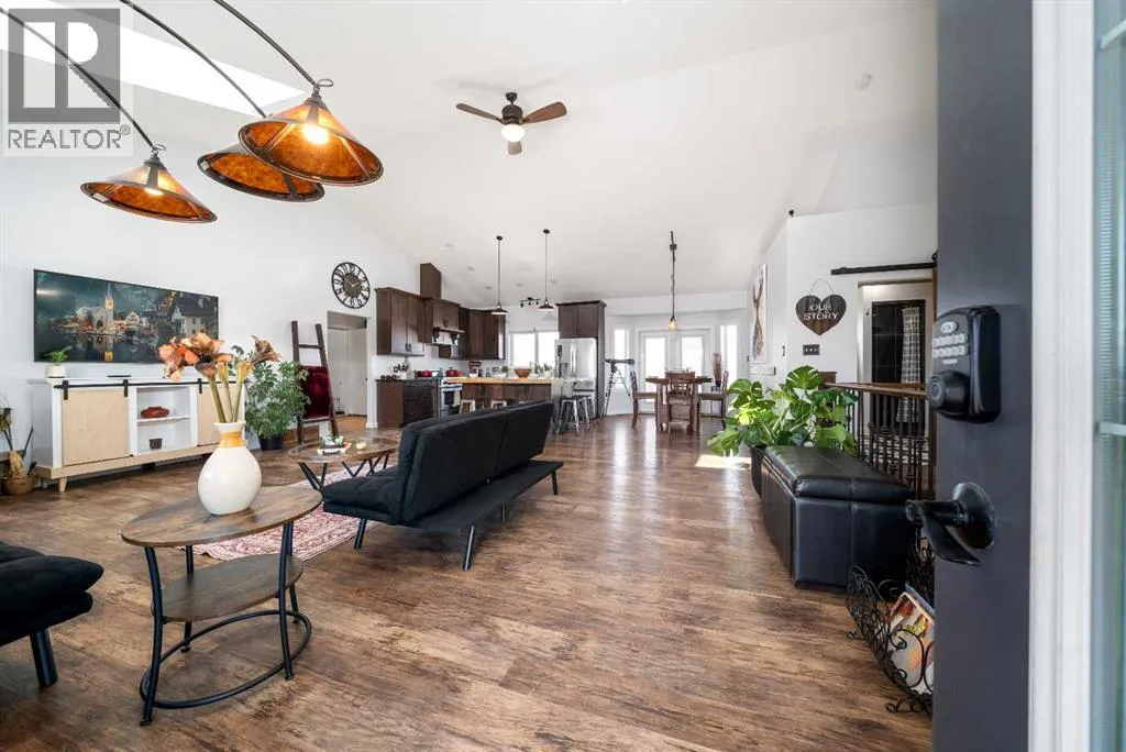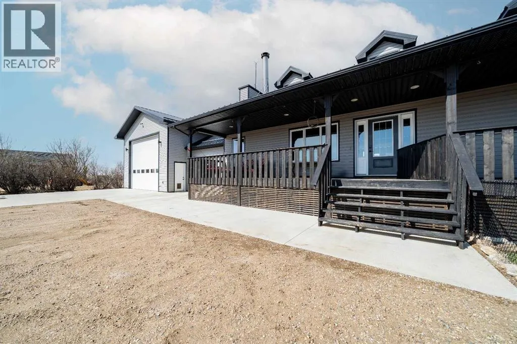 A rare opportunity for private country living just minutes from town! This stunning acreage has been thoughtfully designed with expansive decks that capture breathtaking prairie views to the impressive 1,800 sq ft heated shop. The bright and welcoming main floor boasts vaulted ceilings, skylights, and large windows that flood with natural light. The living room is warm and inviting, with a focus on the beautiful wood-burning fireplace. The open-concept kitchen is a chefâs dream, featuring granite countertops, custom cabinetry, a butcher-block island, and an impressive walk-in pantry. The dining area is ideal for entertaining and offers seamless access to the back deck for indoor-outdoor living. The primary bedroom provides a peaceful retreat with double closets and abundant natural light. A full bathroom with a classic clawfoot tub offers the perfect place to unwind, while a second bedroom, main floor laundry, and a spacious mudroom with outdoor access complete the main level. The fully developed lower level features 9-foot ceilings, in-floor heating, a large family room, three additional bedrooms, a full bathroom, utility/storage space, and a storm shelter/cold room. So much room for the whole family, inside and out. Outside, youâll find everything you need to enjoy acreage living: a garden area, storage buildings, ample parking, and a cozy firepit space with swing seating. The barn has a walk in cooler, thats insulated, stainless steel sheeted and rails with a temperature controlled refrigeration system. Water for the yard is provided by a well and the house is serviced by a 5500 gallon cisternThe attached heated shop is a standout feature, complete with in-floor heat, 220 power, an 18-ft overhead door, and a 3-piece bathroom. Enjoy peaceful mornings on the covered front deck with sunrise views, and unwind in the evenings on the spacious back deck. This home does not disappoint. With school bus pickup right at the driveway, this property offers quiet coun try living with unmatched convenienceâless than 15 minutes northwest of Redcliff. Contact your local neighbourhood REALTOR® today! (id:27476)