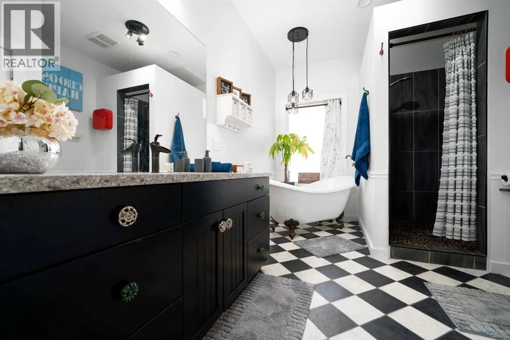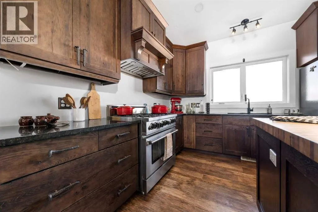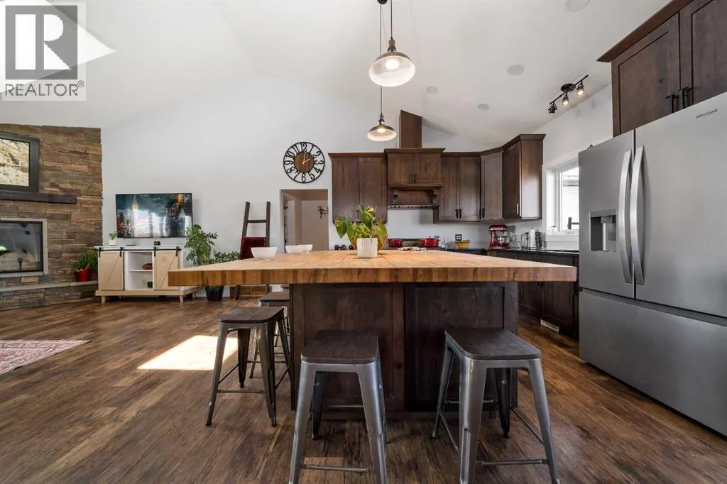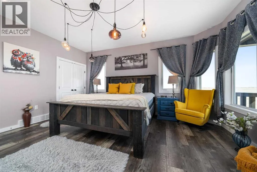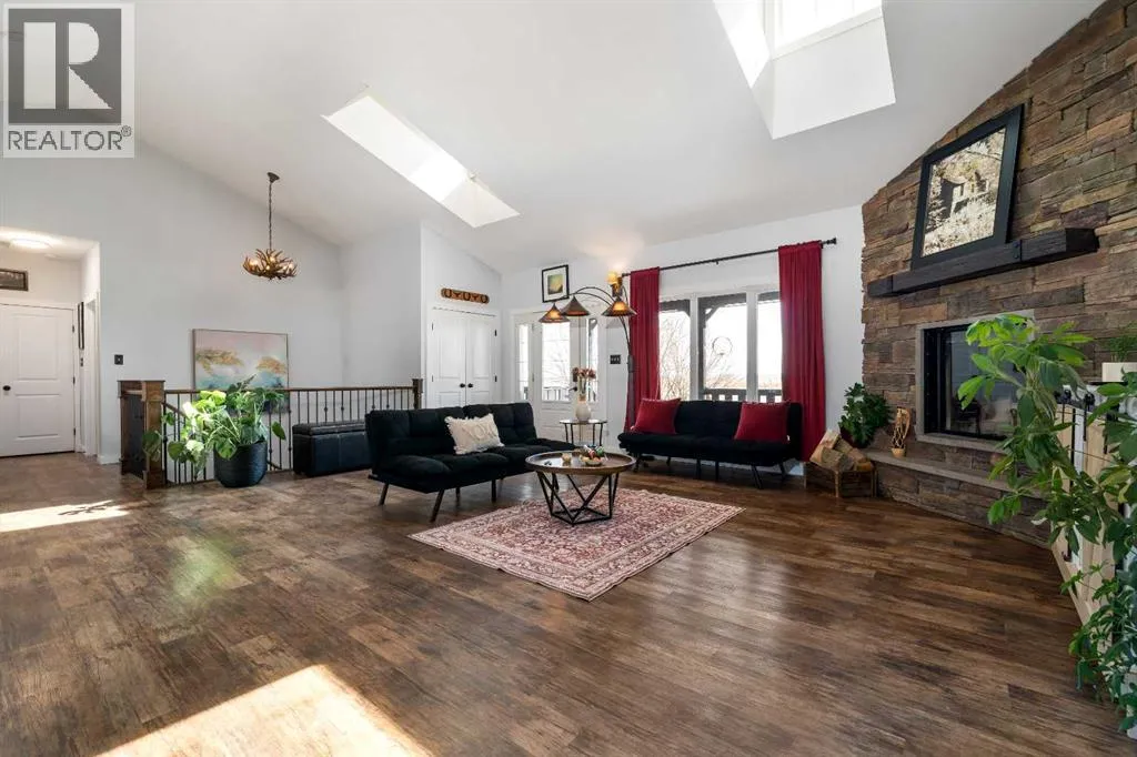 A rare opportunity for private country living just minutes from town! This stunning acreage has been thoughtfully designed with expansive decks that capture breathtaking prairie views to the impressive 1,800 sq ft heated shop. The bright and welcoming main floor boasts vaulted ceilings, skylights, and large windows that flood with natural light. The living room is warm and inviting, with a focus on the beautiful wood-burning fireplace. The open-concept kitchen is a chefâs dream, featuring granite countertops, custom cabinetry, a butcher-block island, and an impressive walk-in pantry. The dining area is ideal for entertaining and offers seamless access to the back deck for indoor-outdoor living. The primary bedroom provides a peaceful retreat with double closets and abundant natural light. A full bathroom with a classic clawfoot tub offers the perfect place to unwind, while a second bedroom, main floor laundry, and a spacious mudroom with outdoor access complete the main level. The fully developed lower level features 9-foot ceilings, in-floor heating, a large family room, three additional bedrooms, a full bathroom, utility/storage space, and a storm shelter/cold room. So much room for the whole family, inside and out. Outside, youâll find everything you need to enjoy acreage living: a garden area, storage buildings, ample parking, and a cozy firepit space with swing seating. The barn has a walk in cooler, thats insulated, stainless steel sheeted and rails with a temperature controlled refrigeration system. Water for the yard is provided by a well and the house is serviced by a 5500 gallon cisternThe attached heated shop is a standout feature, complete with in-floor heat, 220 power, an 18-ft overhead door, and a 3-piece bathroom. Enjoy peaceful mornings on the covered front deck with sunrise views, and unwind in the evenings on the spacious back deck. This home does not disappoint. With school bus pickup right at the driveway, this property offers quiet coun try living with unmatched convenienceâless than 15 minutes northwest of Redcliff. Contact your local neighbourhood REALTOR® today! (id:27476)