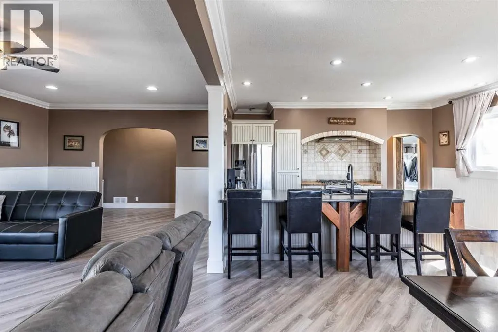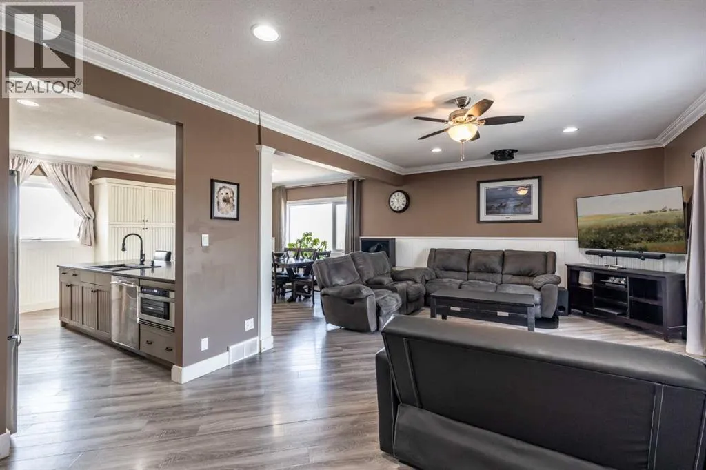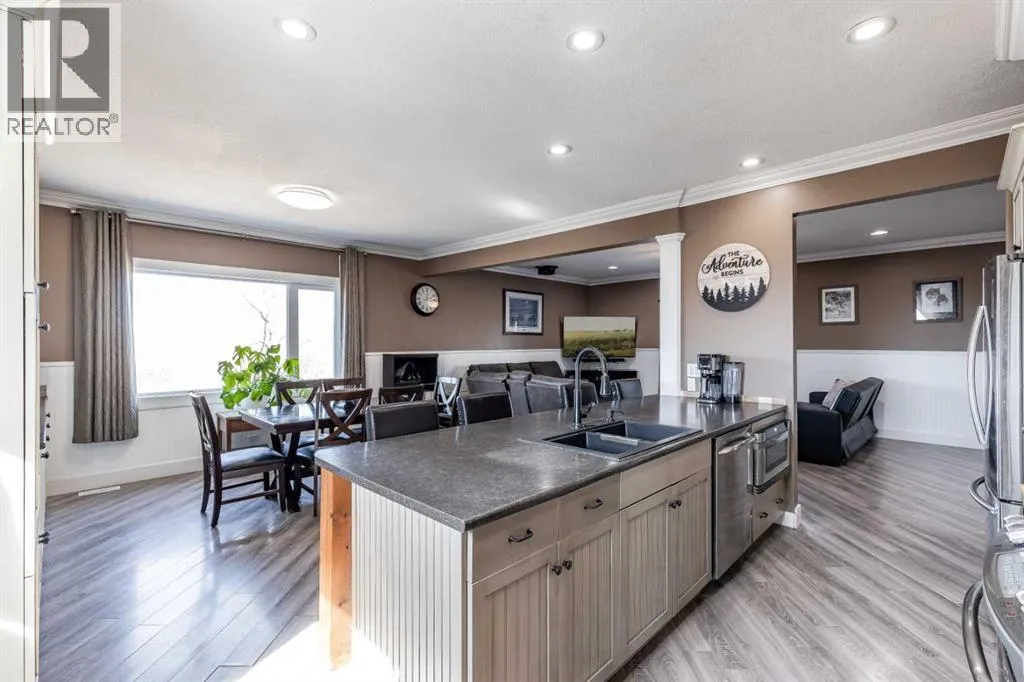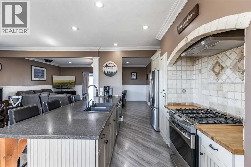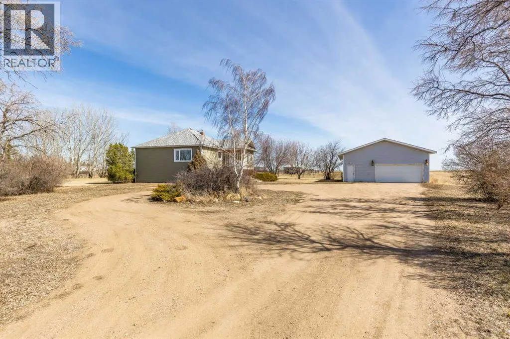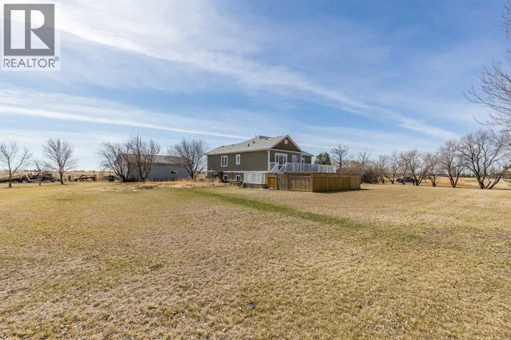 Welcome to acreage living just minutes from the city! Situated on 6.5 acres only 9 km from city limits with paved road access, this well-maintained property offers the perfect balance of space, functionality, and convenience. The home features 4 bedrooms and 3 bathrooms with 9-foot ceilings on the main floor that create a bright, open feel throughout. The beautiful kitchen is equipped with stainless steel appliances and a large island. Just off the living room, there is access to a large deckâperfect for enjoying the peaceful surroundings and outdoor living. The property is serviced with City Water through Westside Water Co-op and includes SMRID irrigation water rights, ideal for maintaining the yard and land. The 30â x 40â detached garage/shop is a standout, offering 14-foot ceilings, two overhead doors (12âx10â and 7âx16â), and a gas line already in place. For those with equestrian interests, the property also includes a 100â x 100â outdoor riding arena, horse shelter, and automatic heated waterer. Recent updates provide peace of mind, including new class 4 shingles on the house (2022), new windows and doors (2021), and a new septic tank (2025). Additional features include heated flooring in the basement bathroom and Starlink internet availability. This property delivers the best of acreage living with quick and easy access to the city. (id:27476)