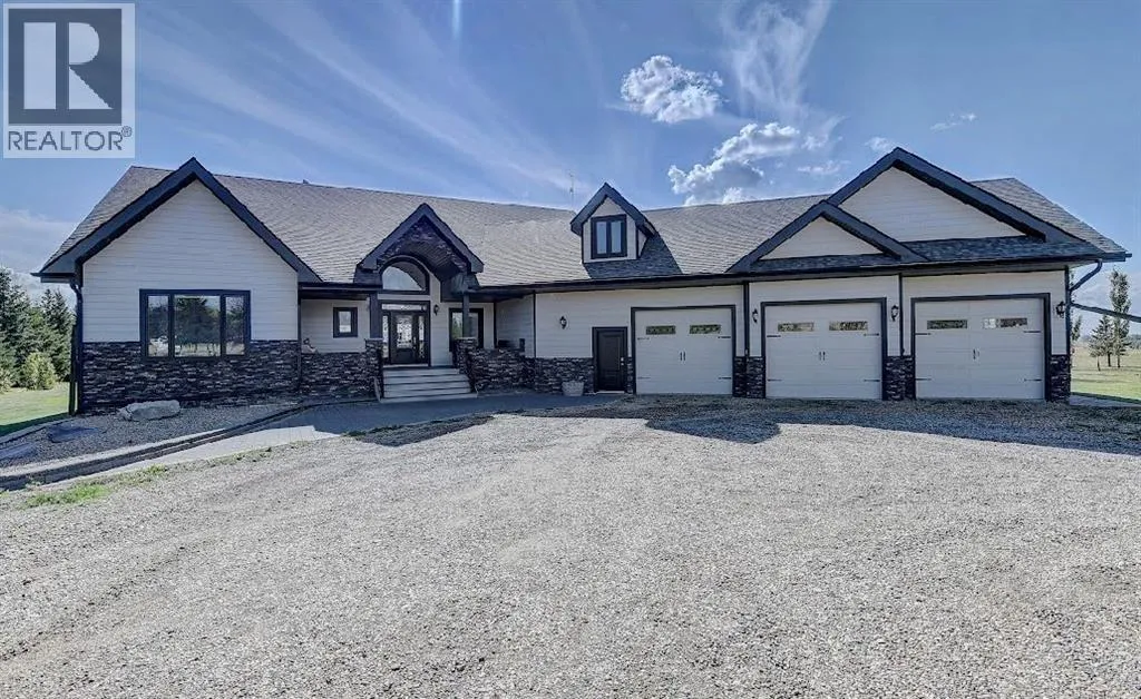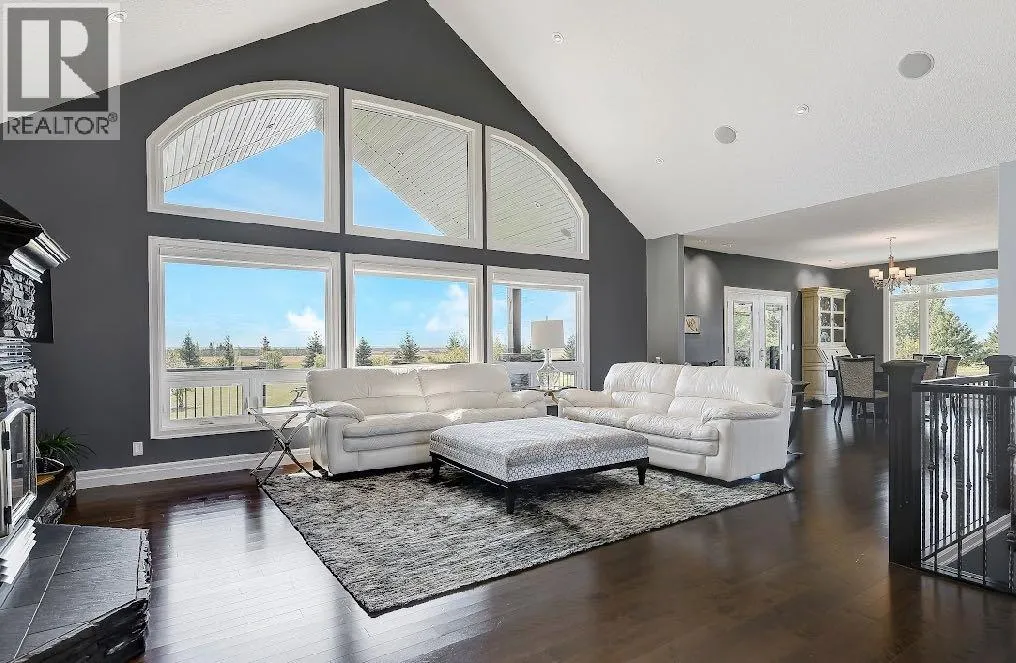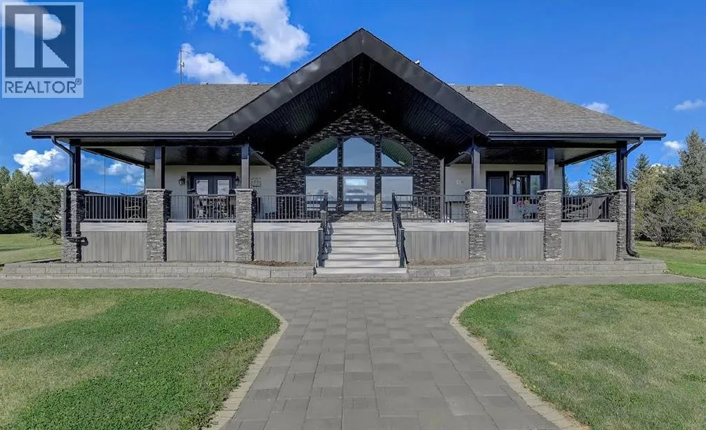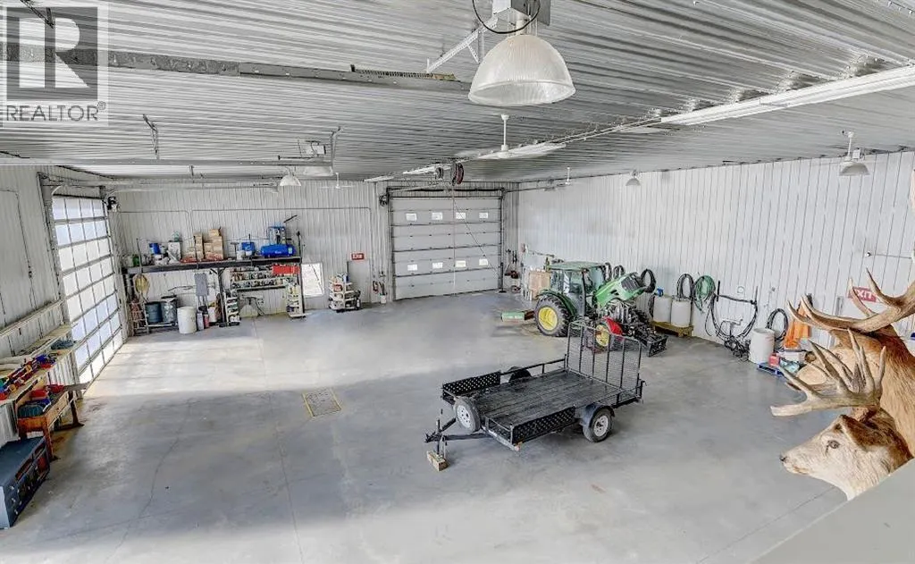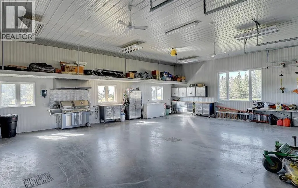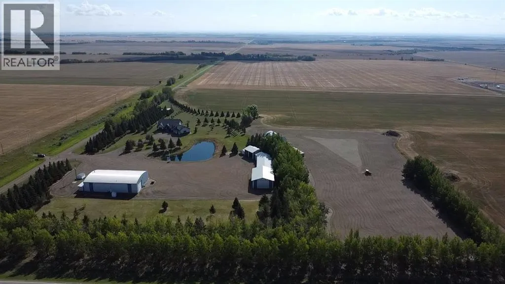 Welcome to this stunning country estate, offering the perfect blend of rural charm and modern luxury. Nestled on a sprawling 81.09 acres, this expansive home boasts a thoughtfully designed layout that provides ample space for relaxation, entertaining, and workâmaking it ideal for families seeking both comfort and convenience.The interior is a true highlight, with detailed attention to design and an open-concept flow that welcomes you with 360-degree views of the property and natural light in every corner. The gourmet kitchen is a showstopper, featuring granite countertops, a massive island, pantry, breakfast bar, modern built-in custom appliances, and a Sub-Zero wine refrigerator. Vaulted ceilings, crown molding, and an open floor plan create a sense of spaciousness, while massive windows offer breathtaking views throughout the living areas.The main-floor primary bedroom is a true oasis, complete with a walk-in closet, a double vanity in the ensuite, and a luxurious jetted tub for ultimate relaxation. Additional desirable features include main-floor laundry, a central vacuum system, closet organizers, ceiling fans, and a wood-burning fireplace with a beautiful mantle and masonry surround. Central air conditioning keeps the home cool during summer months, and vinyl windows contribute to the home's efficiency and comfort.The fully finished basement offers a large open family/rec room, two large additional bedrooms, a full bathroom, and plenty of storage space. Step outside to enjoy a massive covered composite deck and a beautifully landscaped yard complete with a fire pit and garden space. Gardening enthusiasts will appreciate the fruit trees and shrubs adorning the lot, which backs onto acres of green space for added privacy and stunning views. With no neighbors, you can fully enjoy the peace and tranquility of the countryside.Parking is a breeze with a 40 x 31 triple-attached heated garage that provides ample space for all your vehicles and recreational toys. Fo r business owners or hobbyists, the property features a range of outbuildings, including a 60 x 100 heated industrial shop, a 42 x 60 Quonset, a 30.5 x 81 storage shop, a 34 x 29 metal-clad shed, wood shed, fuel shed, garden shed and additional structures for specialized storage and workshops. This versatile setup offers flexible opportunities to customize the property to suit your needs.Whether you're looking to run a business, indulge in hobbies, or simply enjoy the serenity of country living, this estate strikes the perfect balance between modern luxury and rustic appeal. Donât miss the chance to own this one-of-a-kind property! There is an endless list of all the details of this property has to offer. (id:27476)