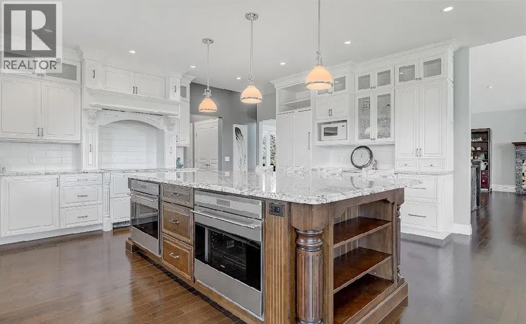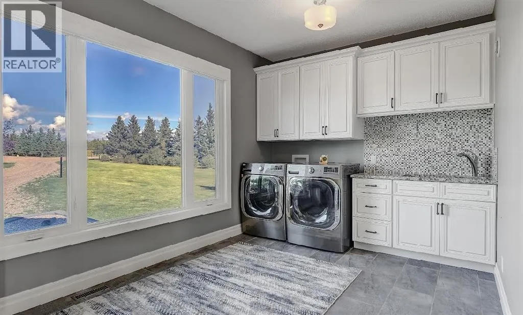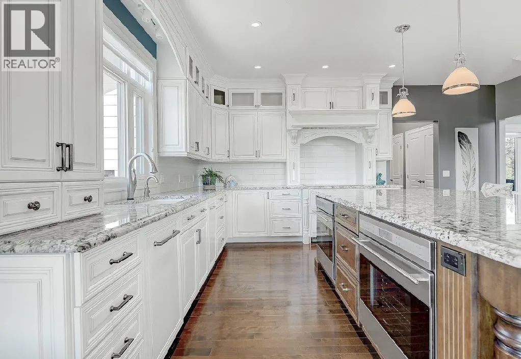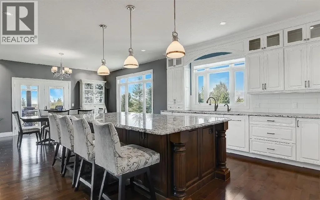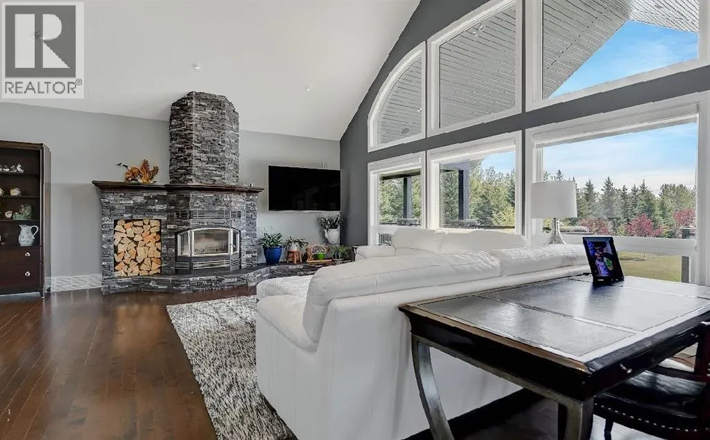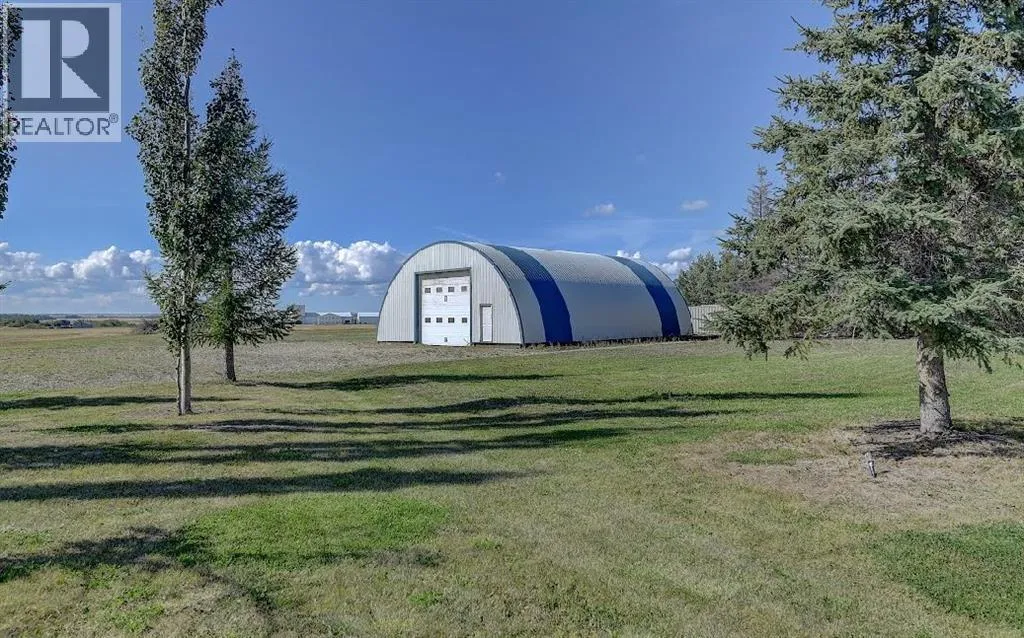 Welcome to this stunning country estate, offering the perfect blend of rural charm and modern luxury. Nestled on a sprawling 81.09 acres, this expansive home boasts a thoughtfully designed layout that provides ample space for relaxation, entertaining, and workâmaking it ideal for families seeking both comfort and convenience.The interior is a true highlight, with detailed attention to design and an open-concept flow that welcomes you with 360-degree views of the property and natural light in every corner. The gourmet kitchen is a showstopper, featuring granite countertops, a massive island, pantry, breakfast bar, modern built-in custom appliances, and a Sub-Zero wine refrigerator. Vaulted ceilings, crown molding, and an open floor plan create a sense of spaciousness, while massive windows offer breathtaking views throughout the living areas.The main-floor primary bedroom is a true oasis, complete with a walk-in closet, a double vanity in the ensuite, and a luxurious jetted tub for ultimate relaxation. Additional desirable features include main-floor laundry, a central vacuum system, closet organizers, ceiling fans, and a wood-burning fireplace with a beautiful mantle and masonry surround. Central air conditioning keeps the home cool during summer months, and vinyl windows contribute to the home's efficiency and comfort.The fully finished basement offers a large open family/rec room, two large additional bedrooms, a full bathroom, and plenty of storage space. Step outside to enjoy a massive covered composite deck and a beautifully landscaped yard complete with a fire pit and garden space. Gardening enthusiasts will appreciate the fruit trees and shrubs adorning the lot, which backs onto acres of green space for added privacy and stunning views. With no neighbors, you can fully enjoy the peace and tranquility of the countryside.Parking is a breeze with a 40 x 31 triple-attached heated garage that provides ample space for all your vehicles and recreational toys. Fo r business owners or hobbyists, the property features a range of outbuildings, including a 60 x 100 heated industrial shop, a 42 x 60 Quonset, a 30.5 x 81 storage shop, a 34 x 29 metal-clad shed, wood shed, fuel shed, garden shed and additional structures for specialized storage and workshops. This versatile setup offers flexible opportunities to customize the property to suit your needs.Whether you're looking to run a business, indulge in hobbies, or simply enjoy the serenity of country living, this estate strikes the perfect balance between modern luxury and rustic appeal. Donât miss the chance to own this one-of-a-kind property! There is an endless list of all the details of this property has to offer. (id:27476)