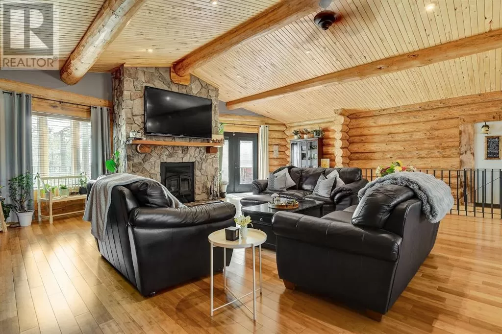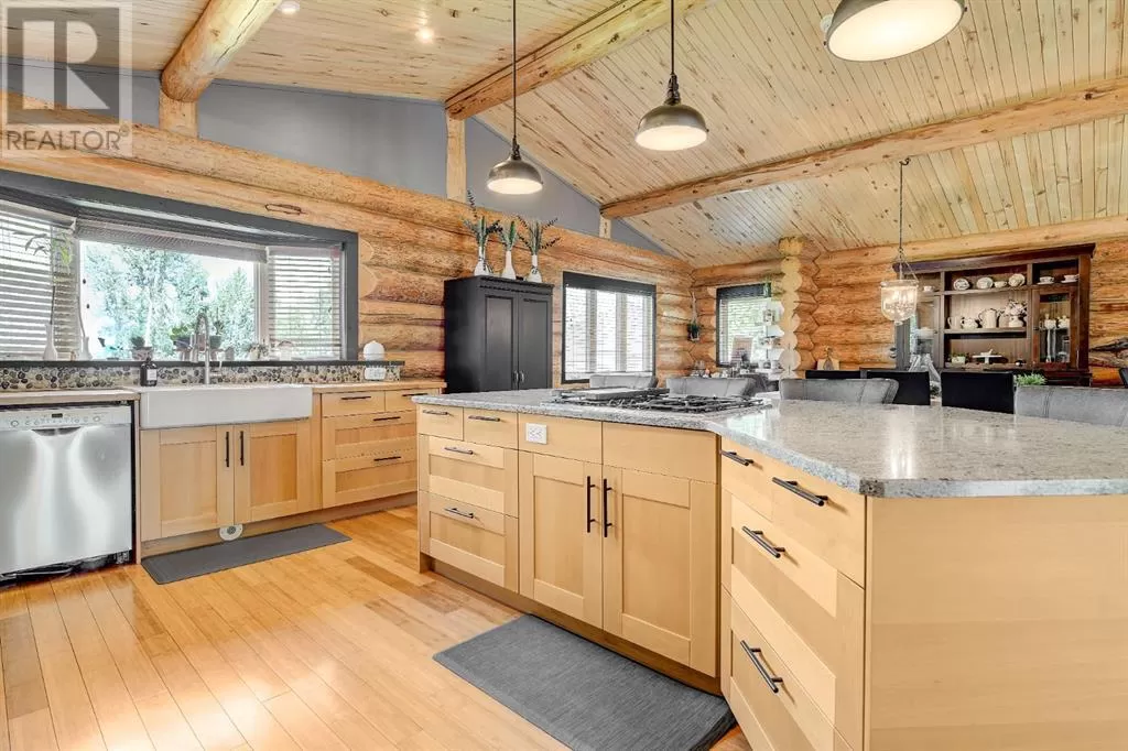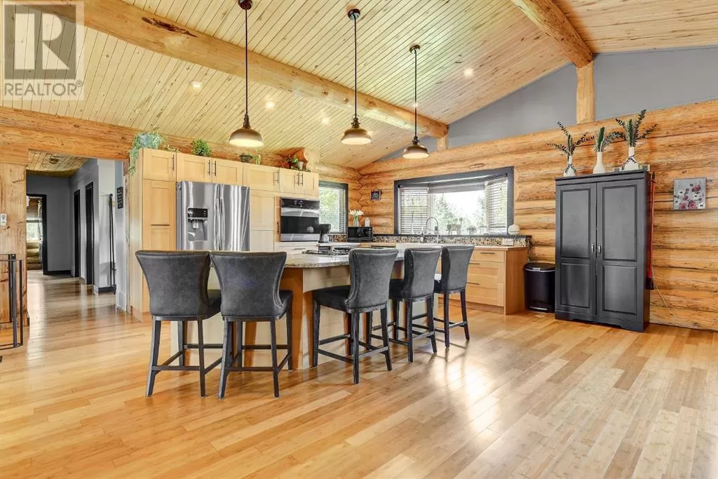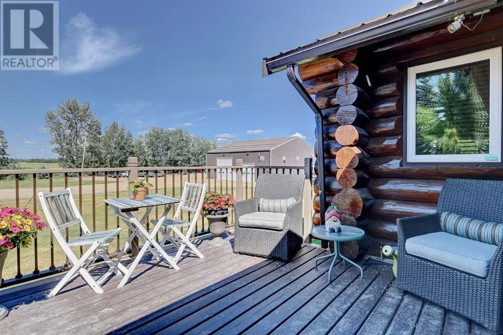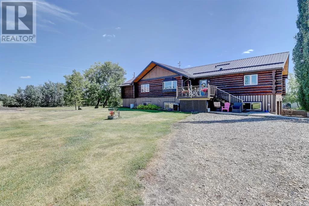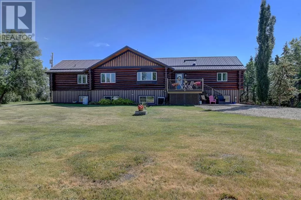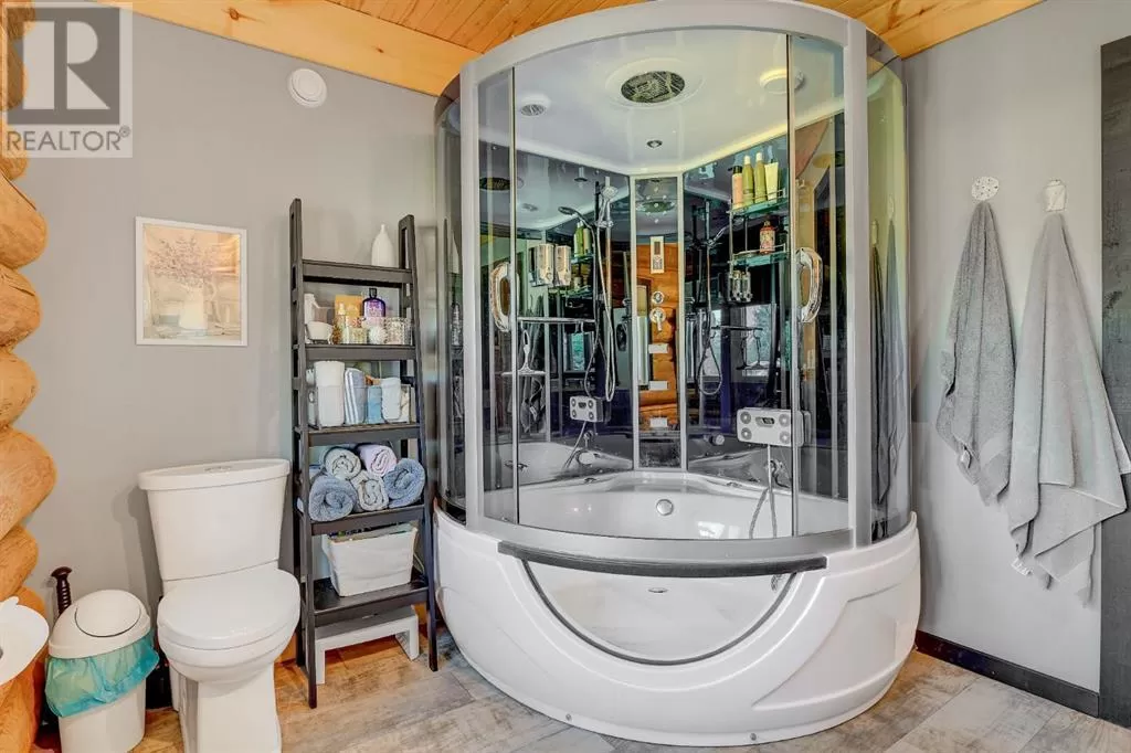 PRIVATE GATED 7-ACRE RETREAT WITH LUXURY LOG HOME AND 60âx60â HEATED SHOP!Welcome to this extraordinary 7-acre gated and fully fenced estate, showcasing a stunning 2,518 sq ft custom log home built in 2009. This one-of-a-kind property is the perfect blend of rustic elegance and modern comfort, featuring 4 spacious bedrooms, 3 luxurious bathrooms, and a heated 26â x 28â attached garage.Step into the open-concept main floor, where youâll find soaring ceilings, warm bamboo flooring, and a cozy wood-burning fireplace in the expansive living area. The chefâs kitchen is a true highlight with stainless steel appliances, a massive island with quartz counter tops, and ample cabinetryâperfect for entertaining. Enjoy ultimate relaxation in the massive primary suite complete with access to the private deck, pool, and hot tub. The ensuite boasts a steam shower and jetted jacuzzi tub.Three additional bedrooms, a full bathroom with charming clawfoot tub, main floor laundry, and deck access from both the primary and living areas complete the main floor.The fully finished basement features in-floor heating, a large craft room (easily converted back to a 5th bedroom), a gym area, a spacious theatre room, a third full bathroom, and a built-in sauna.Extensive Upgrades Include:â¢All exterior logs professionally refinished with premium log oil stainâ¢All surrounding decks refinished with high-quality productsâ¢New 200,000 BTU boilerâ¢New high-velocity air exchangerâ¢New Boiler Mate hot water systemâ¢Central A/Câ¢In-floor basement heat + forced air heating throughoutBackyard Oasis:â¢Above-ground pool with gas heaterâ¢Hot tub in enclosed gazeboâ¢3 natural gas BBQ hookupsâ¢Private powered entrance gateMassive 60â x 60â Heated Shop:â¢Fully finished with 11â x 48â mezzanine man caveâ¢In-floor heat with insulated floorâ¢Full-length radiant make-up heaterâ¢Dual stainless steel sink, shower, RV sewer dumpâ¢50-amp interior & exterior RV plugsâ¢Multi ple 20-amp plugs throughoutâ¢220V outlets for welder, air compressor, and pressure washer *. Dug out water source for water all outside areas and treesThis exceptional property offers peace, privacy, and high-end amenities rarely found together. Whether youâre seeking a luxurious family retreat or a hobbyistâs paradise, this property delivers it all. (id:27476)