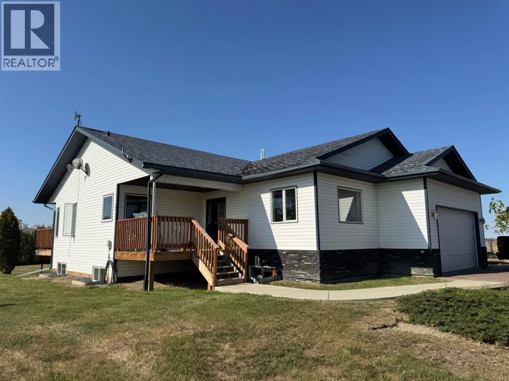 Recently Renovated Acreage Home on 20.98 Acres â Fairview, AB Just 1 km south of Fairview on Hwy 2 (across from Co-op Cardlock)This spacious 6-bedroom, 3-bathroom home sits on a beautifully developed 20.98-acre parcel and offers both modern updates and practical acreage living.Home Features:â¢Built in 2001 with 1,534 sq. ft. main floor + fully finished basementâ¢Bright open-concept kitchen and living area with access to the brand-new south-facing deckâ¢Main floor includes:â¢Primary bedroom with ensuite, walk-in closet, and deck accessâ¢2 additional bedrooms, full bathroom, and laundry roomâ¢Basement includes:â¢3 large bedrooms, full bathroom, family room, cold room, and storageâ¢In-floor heating and brand-new vinyl plank flooringâ¢Recent updates: fresh paint throughout, new countertops in kitchen and 2 bathroomsâ¢Mechanical: furnace & hot water tank (2015)â¢Attached heated 21X24 garageâ¢New front entry stairs and south-facing deckâ¢On town waterOutbuildings & Yard Improvements:â¢40x100 Quonset â front 30x40 heated with upstairs living space & bathroomâ¢40x60 Quonset â 1/3 concrete with mechanical room & shelvingâ¢Pole Sheds: 16x48 and 12x40 (metal siding & roofing)â¢Additional outbuildings: chicken coop, older pole shed, wooden granaryâ¢Approx. 10 acres of pipe & cable fencing (corrals)â¢4 heated watering bowls in corralsâ¢Outer buildings serviced by 2 dugoutsâ¢Septic field installed in 2015This property is move-in ready and offers an excellent mix of comfortable family living with the space and infrastructure needed for livestock or hobby farming. (id:27476)