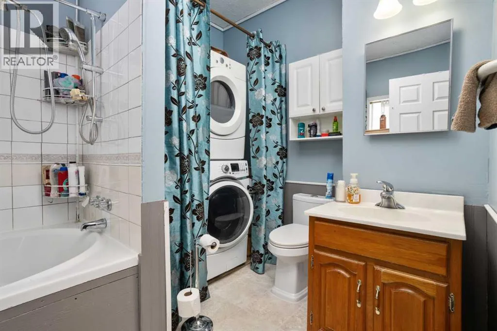 Affordable acreage living in Flagstaff County. This 3.78 acre property offers privacy with no neighbors behind. Step inside to a spacious back entry, added to the home approximately 15 years ago. The kitchen features an updated design with a generous island and modern cabinetry. Just off the kitchen is a good sized dining room with a charming window seat, leading into a roomy living area with hardwood floors. The main floor also includes a 4 piece bathroom complete with a jetted tub and convenient stacked laundry. Upstairs you will find three bedrooms and a storage room. The basement is unfinished and ready for your personal touch. Come explore the possibilities. (id:27476)