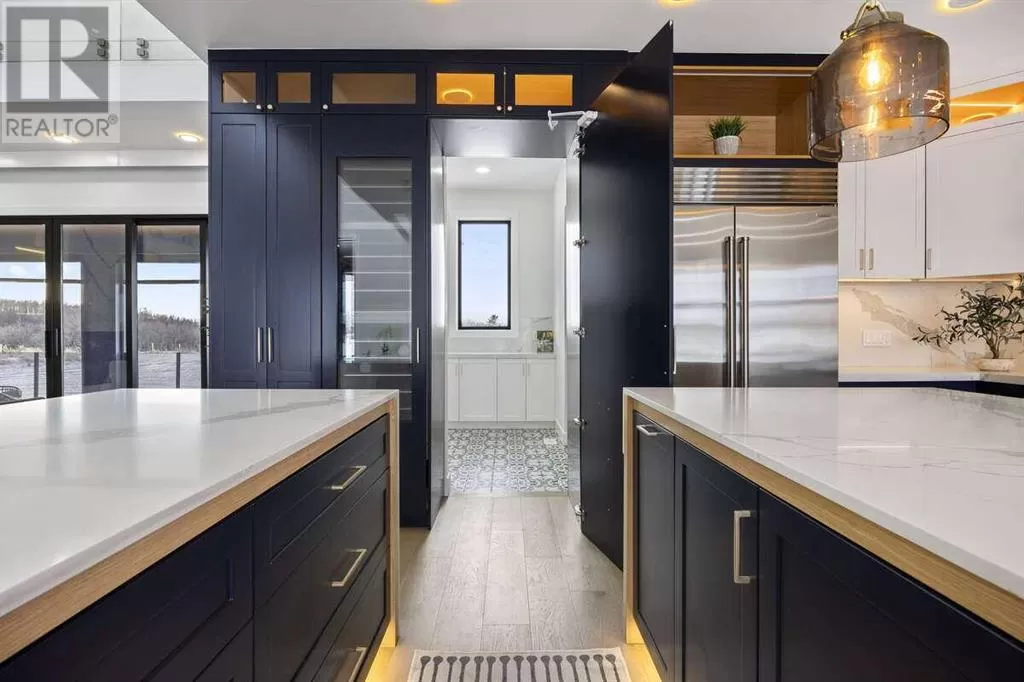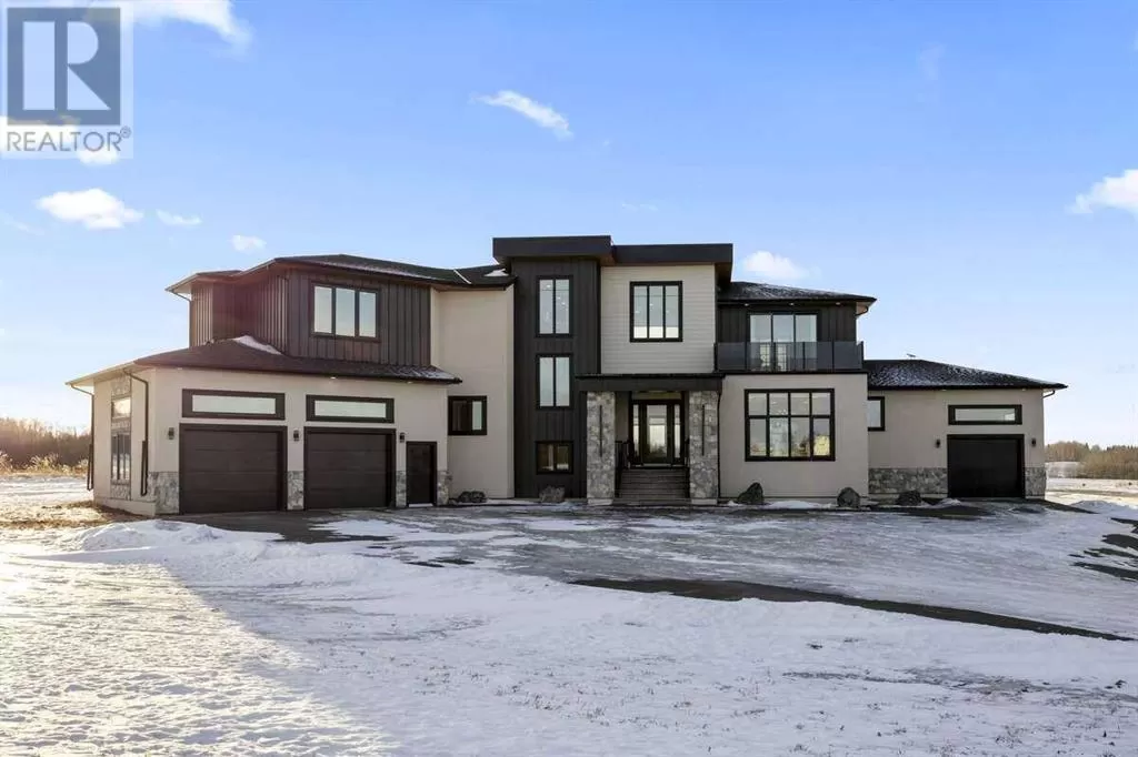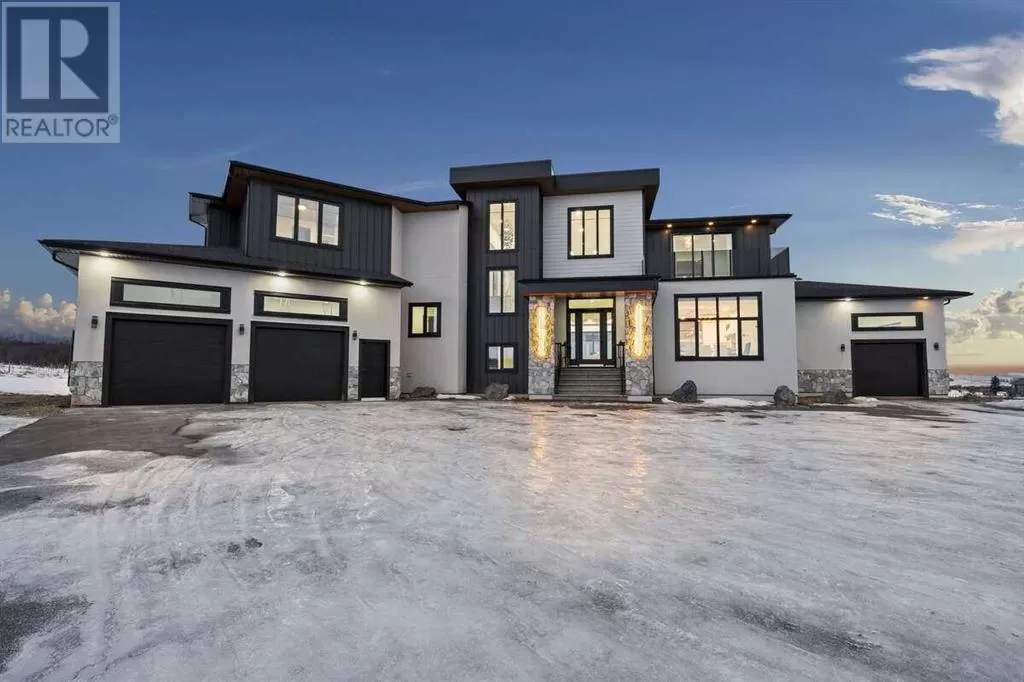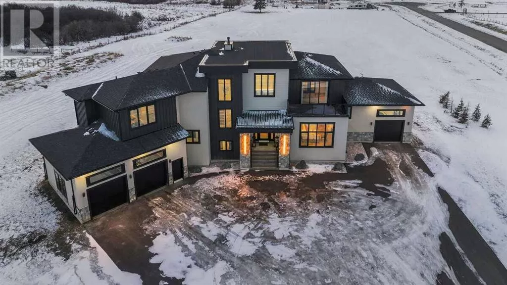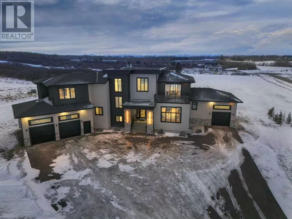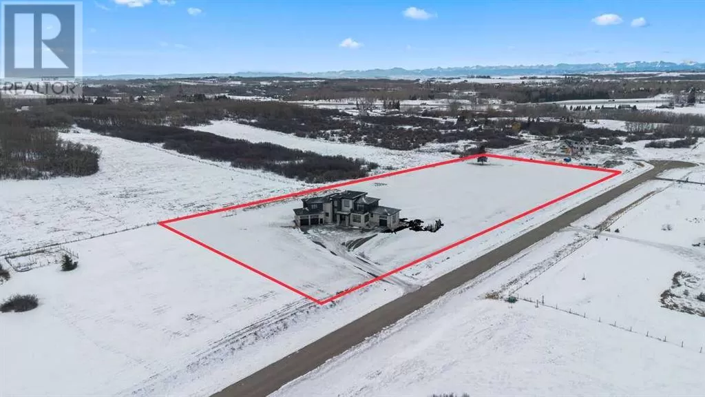 For more info, please click the "More Information" button. Welcome to an extraordinary blend of modern elegance and countryside charm. Built in 2023, this stunning 6-bedroom, 5.5-bathroom estate offers over 7,200 sq. ft. of meticulously designed living space, nestled on a picturesque 5-acre property. More than just a home, itâs a peaceful retreat surrounded by nature, yet conveniently close to Calgaryâs South Campus hospital, top-rated schools, and urban amenities, offering the perfect balance of serene country living and city convenience. As you enter through natural flat stone pillars, a grand entryway welcomes you into warm and expansive living areas set against the breathtaking backdrop of the Rocky Mountains. The living room features a towering stone fireplace that serves as a centerpiece, while a glass-surround walkway bathes the space in natural light. Telescoping glass doors seamlessly connect indoor and outdoor spaces, making it ideal for entertaining or relaxing with loved ones. The chefâs kitchen is the heart of the home, featuring double islands perfect for hosting, high-end appliances including a combination steam oven, and two butlerâs pantries. These pantries provide ample storage and include access to a hidden workspace and a single garage, adding both functionality and convenience to the kitchenâs design. The main-floor primary suite is a true sanctuary, boasting floor-to-ceiling west-facing windows that frame stunning views. The spa-inspired en-suite includes luxurious stone-accented walls, an oversized soaker tub, and a walk-in shower, while the custom-designed closet caters to a modern lifestyle with ample space and organization. Upstairs, three spacious bedrooms, each with walk-in closets and private bathrooms, provide comfort and privacy for family or guests. A striking glass walkway connects a custom home office and a cozy family room, creating a unique and inviting upper-level retreat. The lower level is designed for both relaxation and acti vity. Highlights include a home gym with a pro-height basketball hoop, a luxurious steam shower for post-workout relaxation, an additional bedroom, and a versatile flex room that opens directly to the backyard. The outdoor space offers endless possibilities. The expansive backyard is a blank canvas awaiting your visionâwhether itâs a vibrant garden, a playground, or even space for animals. The propertyâs 5-acre expanse ensures privacy and room to customize. Behind the beauty of this estate lies impeccable functionality. Two mechanical rooms house high-end systems, including advanced A/C, on-demand hot water, and multiple furnaces and boilers, ensuring comfort year-round. Premium finishes, custom flooring, and thoughtful details elevate the homeâs design. This property is more than a residence - itâs a lifestyle. Whether hosting grand gatherings, seeking a tranquil retreat, or making cherished family memories, this estate delivers it all. Donât miss your opportunity to own this incredible country home. (id:27476)
