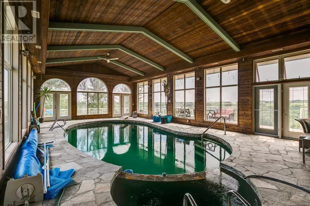 Nestled on 78 sprawling acres along the tranquil Sheep River, 354032 80 Street East Rural Foothills unveils itself as a prime estate, beckoning with its extensive river frontage and panoramic views. The property boasts a stately custom home, 12 bedrooms and 13 bathrooms plus a illegal 2 bedroom 1 bathroom suite, is a testament to craftsmanship and luxury, awaiting personalization to reflect your vision. This idyllic setting, once a cherished venue for weddings and events, now presents a canvas for myriad possibilities. The land's generous proportions and strategic location make it a canvas for development ventures ranging from a luxury residential community, to a rejuvenating resort-style sanctuary or an innovative sustainable living initiative. Amidst this picturesque landscape, privacy harmonizes effortlessly with accessibility, offering a retreat from the hustle of urban life while remaining conveniently reachable. Whether envisioning expansive gardens, small-scale farming, or engaging in equestrian pursuits and recreational activities, the vast expanse of this property invites exploration and fulfillment of diverse passions. The existing shop is ready for all your âpetâ projects, or easily converted into a barn for your animals. Alternatively keep the shop and use the properties massive size to build a barn, paddocks, arena, and still have room for a hay field. A rare gem in Okotoks area, this Sheep River Property stands as not just an investment opportunity but a testament to the seamless blend of natural beauty and developmental potential, promising a future limited only by imagination. (id:27476)