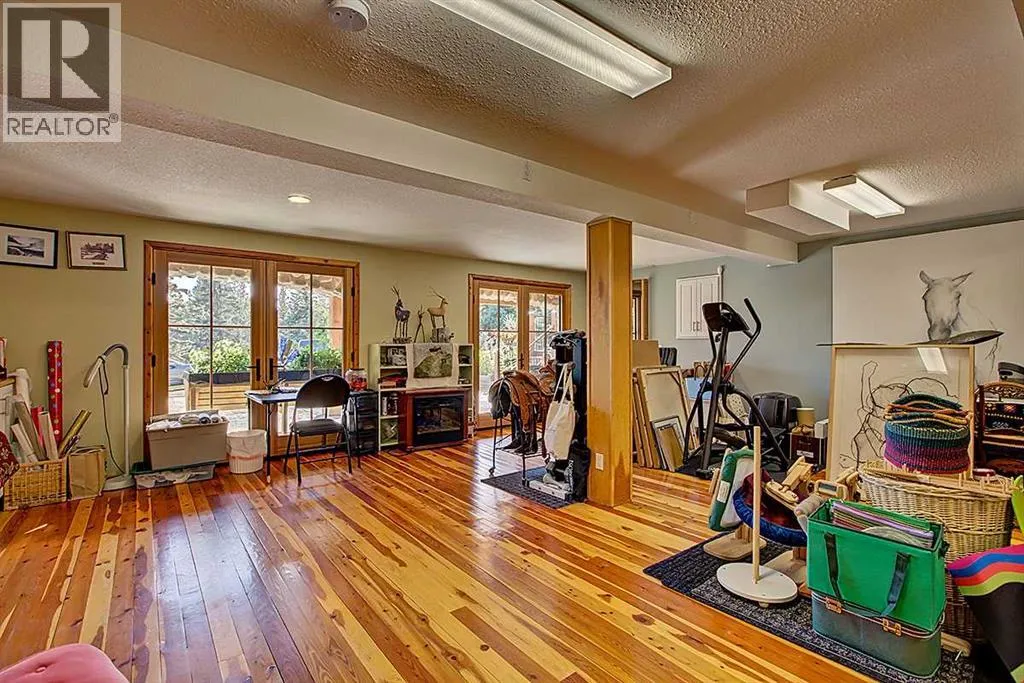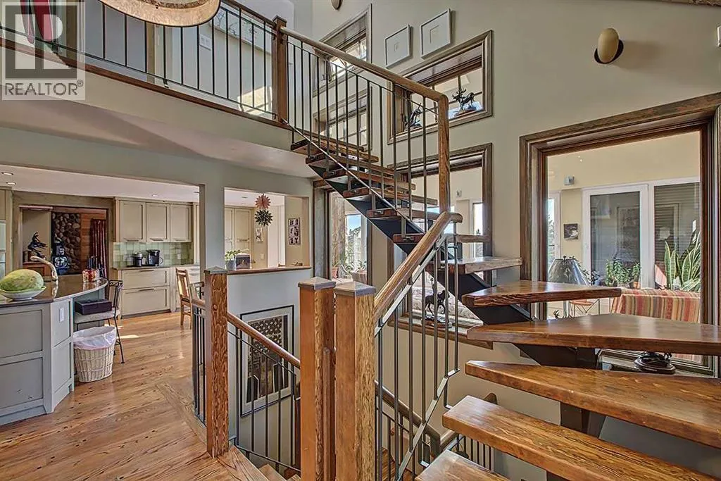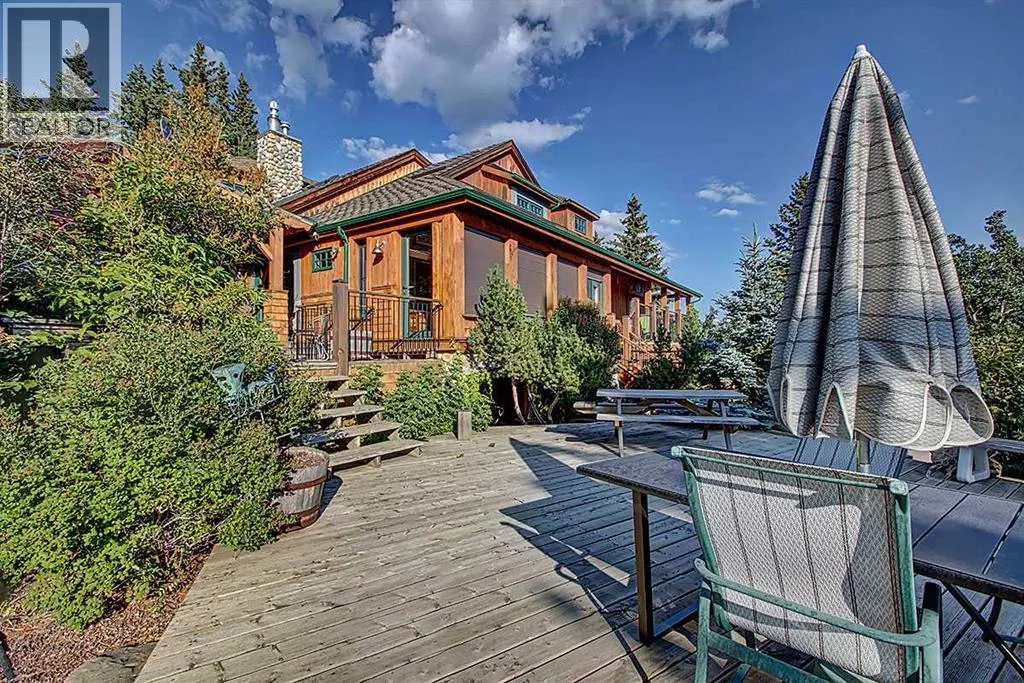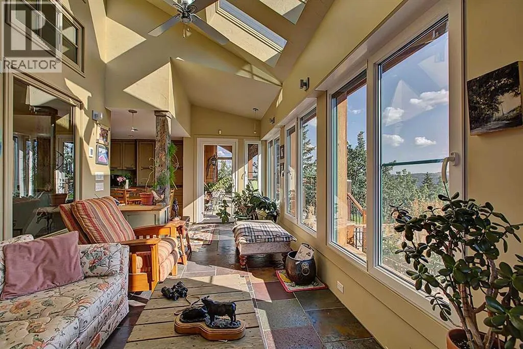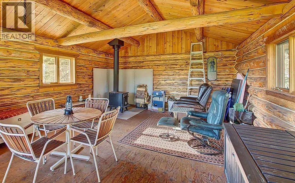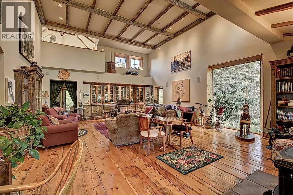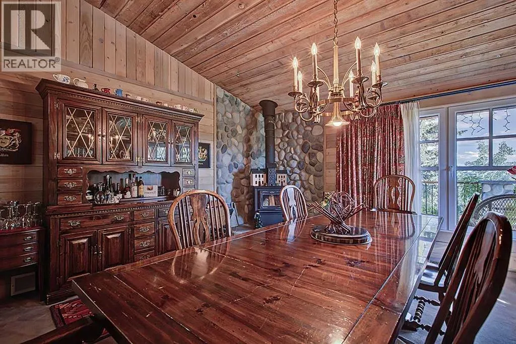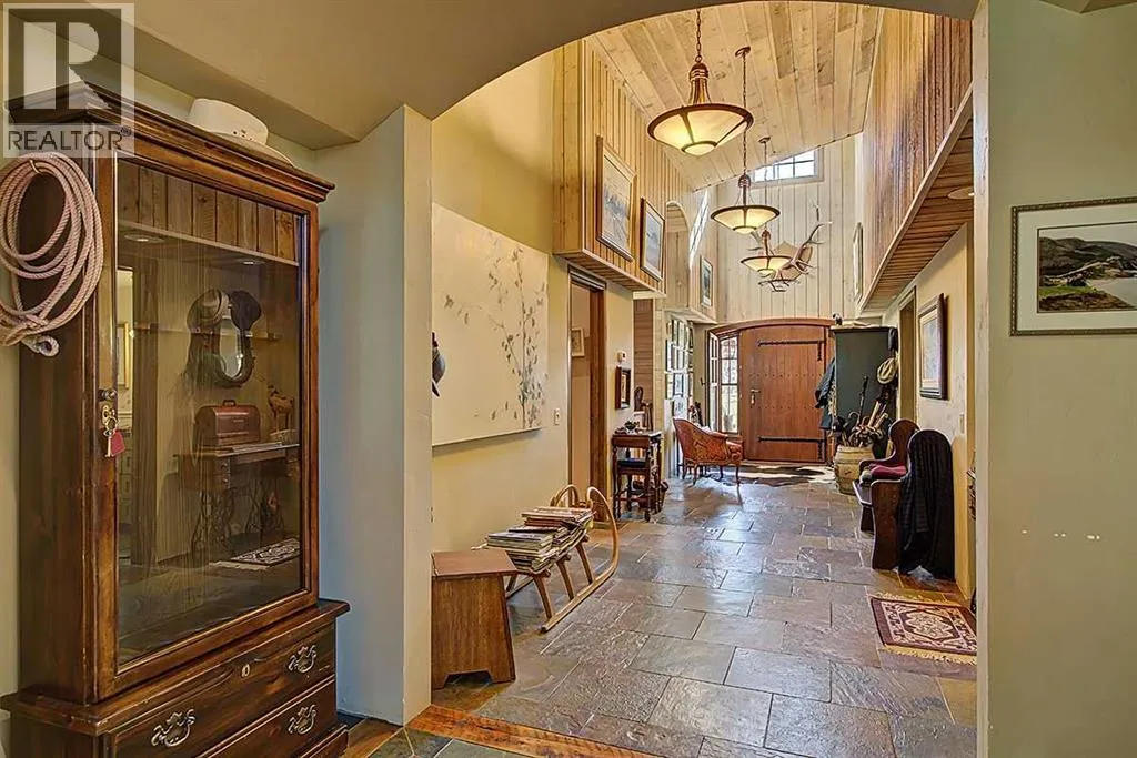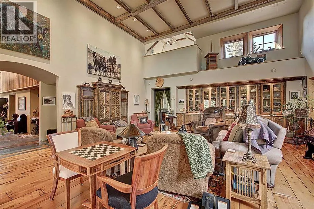 Welcome to Rancho Relaxo less than 20 mins from the edge of Calgary, this one-of-a-kind property is nestled atop a hill withbreathtaking 360 degrees views of the rolling foothills of southern Alberta. This 23-acre paradise could be the perfect haven for any horse lovers, boasting miles of fencing allowing your livestock free to roam the property. With over 5,000 square feet of developed living space, this homeoffers plenty of room for you to live and grow and to come home from a busy day to the peace and comfort of a one-of-a-kind property. Inside,youâll find three spacious bedrooms, with the option to convert the entire lower level into a place to hangout, games room or an additional fourthbedroom. The home features five well-appointed bathrooms, ensuring convenience for family and guests. Once you have stepped foot into theproperty take note of the high ceilings and the long hallway which leads you towards the massive and inviting family room, with its large windowsto make it light and bright, perfect to showcase the original wide plank hardwood floors, and cozy up to the wood-burning stove, itâs a perfectgathering spot during those Christmas holidays and could you just imagine in the corner a 15-foot-tall Christmas tree. The charming kitchenoffers ample storage and custom cabinetry, opening to a bright sunroom perfect for morning coffee or evening glasses of wine. Just off thekitchen is a quaint living room, complete with a gas fireplace, makes this space inviting, comfortable and forces you to relax and unwind at theend of each day. Adjacent to the kitchen across the hallway is the large dining room which is built for hosting and entertaining and features anadditional wood-burning stove for warmth and ambiance. Step outside in any direction onto one of the several decks, each positioned to capturestunning views of the surrounding property. Down the wooden walkway it leads you to the oversized three-car garage which includes acraftsmanâs workshop, a dream space f or any aspiring finishing carpenter. In addition to the main residence, and the HIDDEN JEM of this theproperty, features a hidden dream cabin, offering the ultimate escape for relaxation and perfect place to unplug. Two additional outbuildings anda large shed provide ample storage and utility for caring for horses or other creative adventures. Rancho Relaxo is a meticulously maintainedsanctuary ready for you to call home. Whether youâre seeking tranquility or an active rural lifestyle, this extraordinary property delivers the bestof both worlds. (id:27476)
