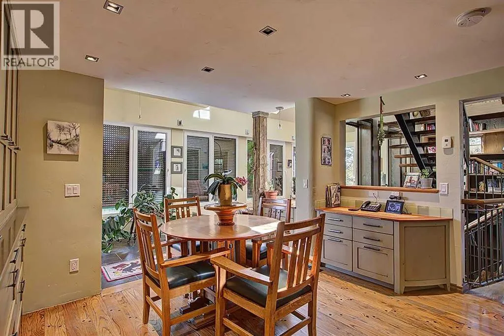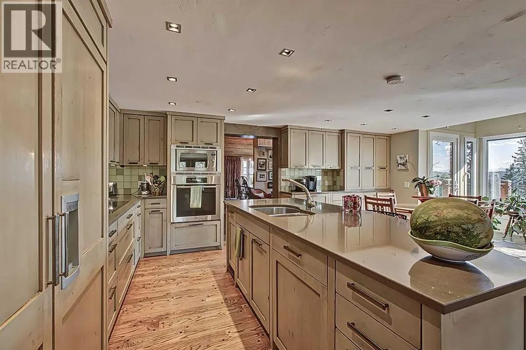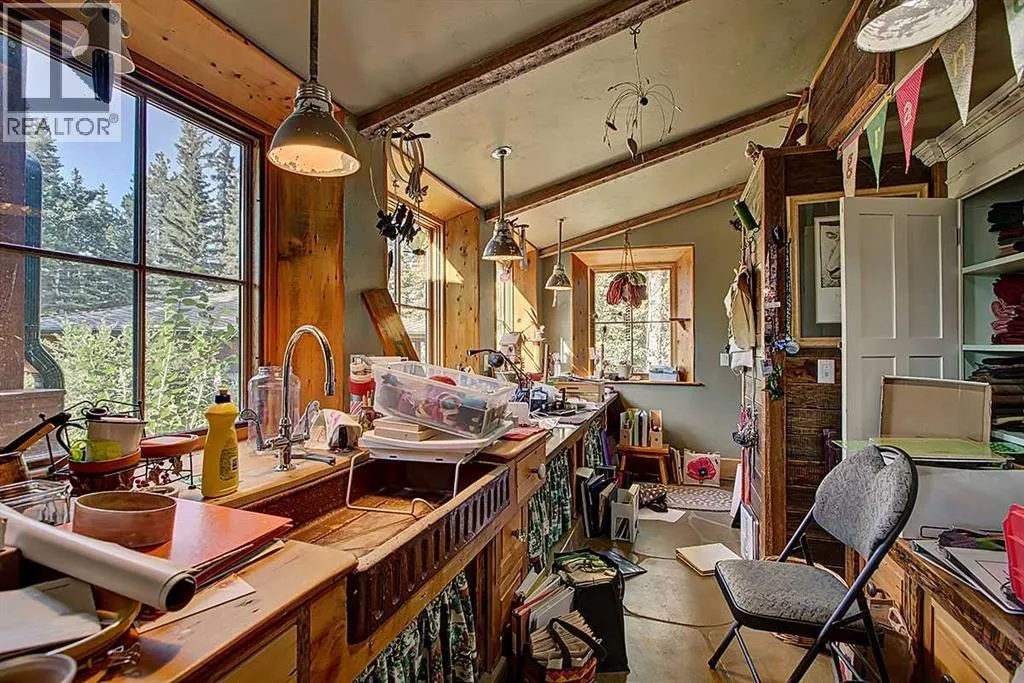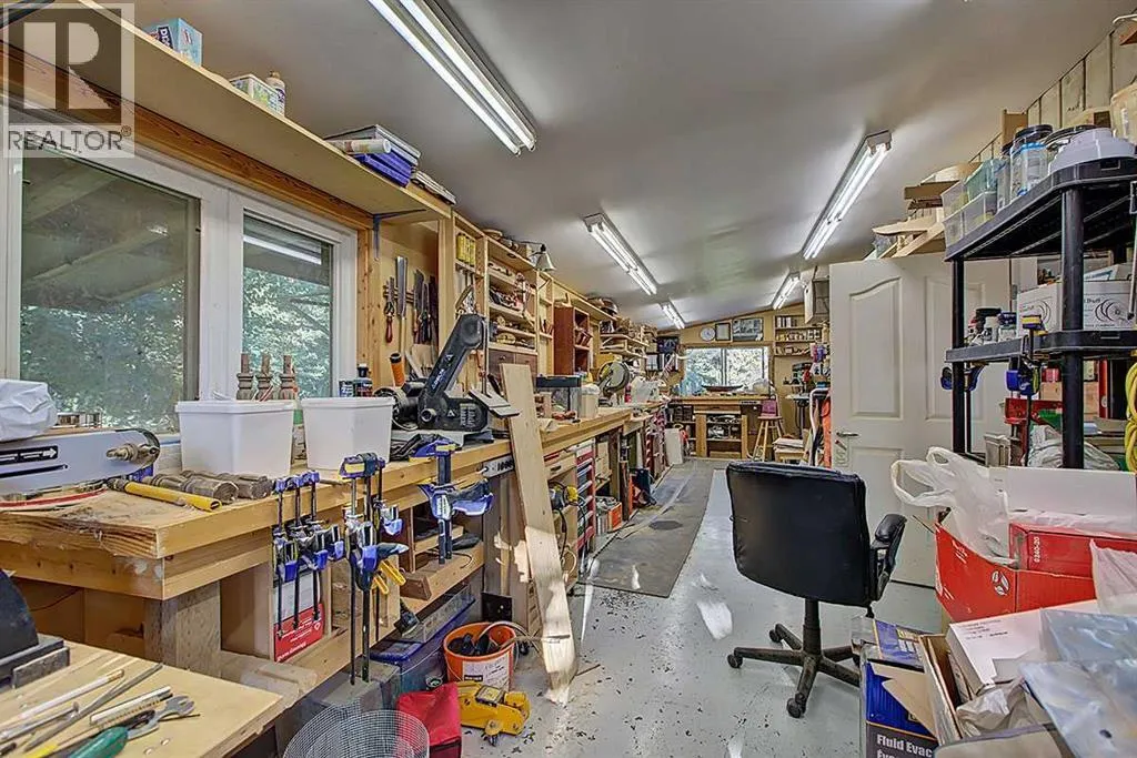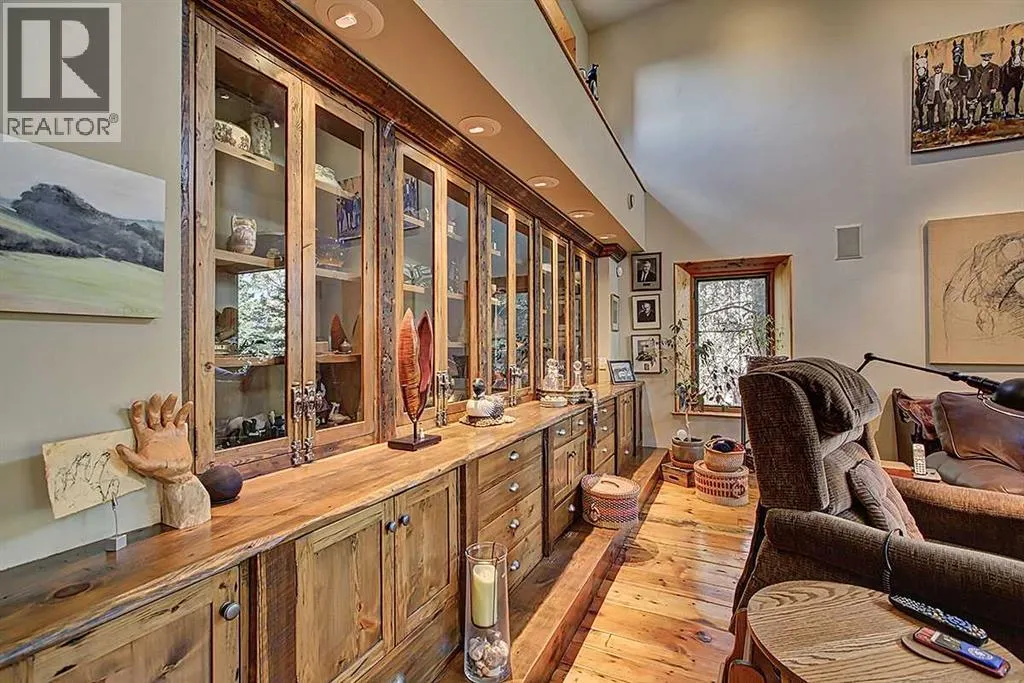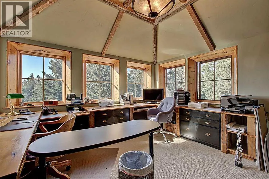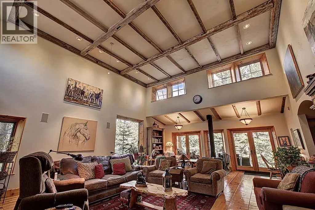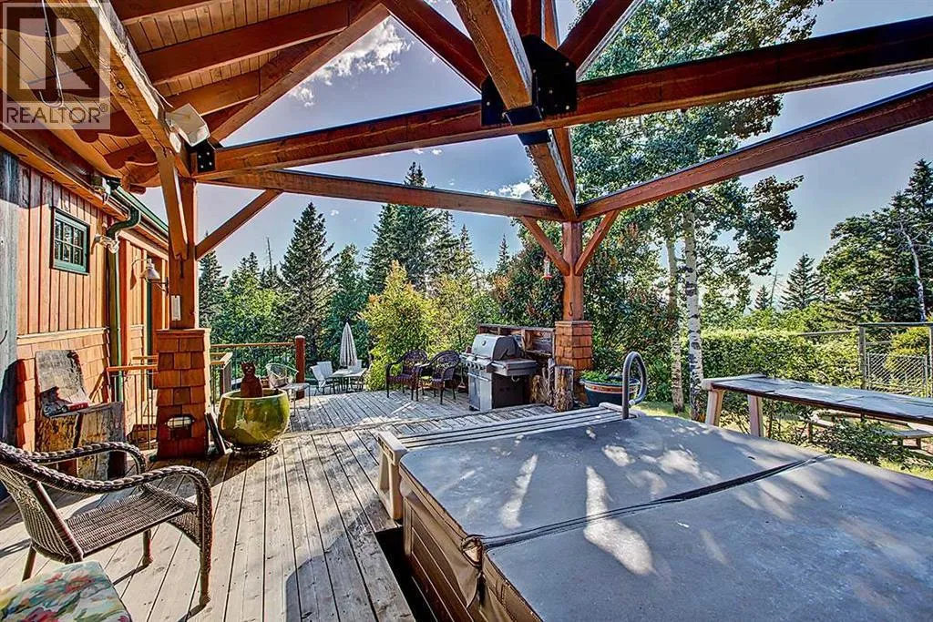 Welcome to Rancho Relaxo less than 20 mins from the edge of Calgary, this one-of-a-kind property is nestled atop a hill withbreathtaking 360 degrees views of the rolling foothills of southern Alberta. This 23-acre paradise could be the perfect haven for any horse lovers, boasting miles of fencing allowing your livestock free to roam the property. With over 5,000 square feet of developed living space, this homeoffers plenty of room for you to live and grow and to come home from a busy day to the peace and comfort of a one-of-a-kind property. Inside,youâll find three spacious bedrooms, with the option to convert the entire lower level into a place to hangout, games room or an additional fourthbedroom. The home features five well-appointed bathrooms, ensuring convenience for family and guests. Once you have stepped foot into theproperty take note of the high ceilings and the long hallway which leads you towards the massive and inviting family room, with its large windowsto make it light and bright, perfect to showcase the original wide plank hardwood floors, and cozy up to the wood-burning stove, itâs a perfectgathering spot during those Christmas holidays and could you just imagine in the corner a 15-foot-tall Christmas tree. The charming kitchenoffers ample storage and custom cabinetry, opening to a bright sunroom perfect for morning coffee or evening glasses of wine. Just off thekitchen is a quaint living room, complete with a gas fireplace, makes this space inviting, comfortable and forces you to relax and unwind at theend of each day. Adjacent to the kitchen across the hallway is the large dining room which is built for hosting and entertaining and features anadditional wood-burning stove for warmth and ambiance. Step outside in any direction onto one of the several decks, each positioned to capturestunning views of the surrounding property. Down the wooden walkway it leads you to the oversized three-car garage which includes acraftsmanâs workshop, a dream space f or any aspiring finishing carpenter. In addition to the main residence, and the HIDDEN JEM of this theproperty, features a hidden dream cabin, offering the ultimate escape for relaxation and perfect place to unplug. Two additional outbuildings anda large shed provide ample storage and utility for caring for horses or other creative adventures. Rancho Relaxo is a meticulously maintainedsanctuary ready for you to call home. Whether youâre seeking tranquility or an active rural lifestyle, this extraordinary property delivers the bestof both worlds. (id:27476)