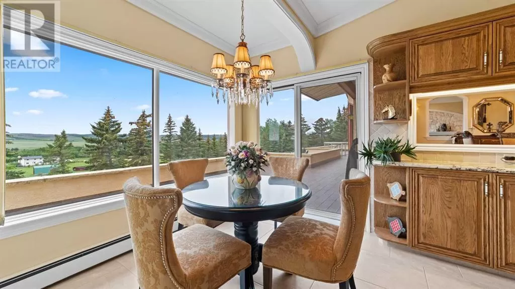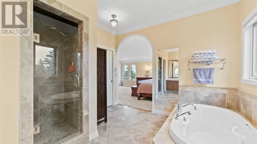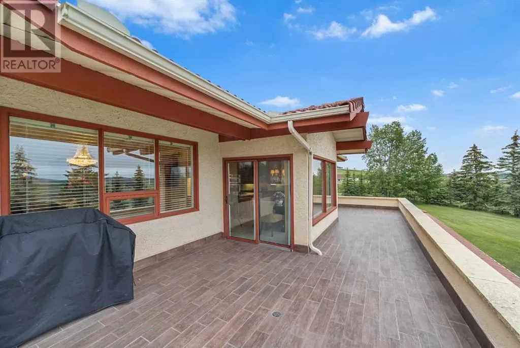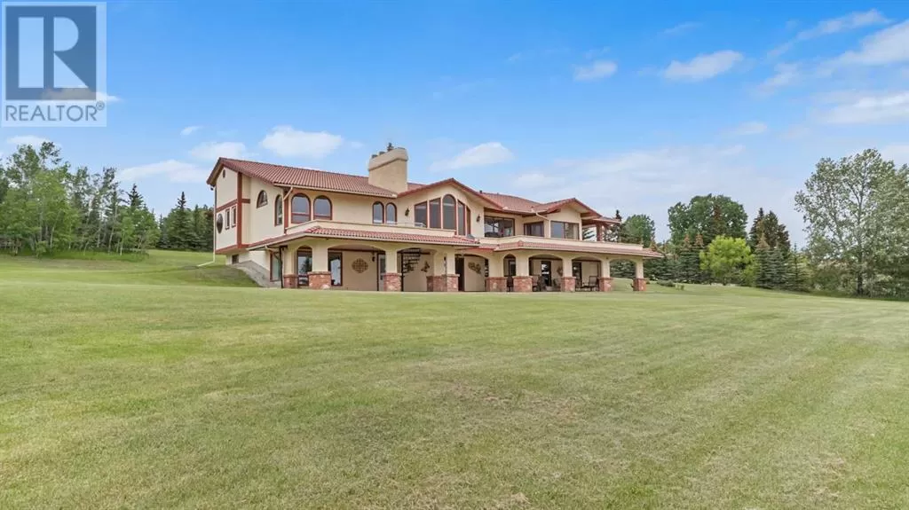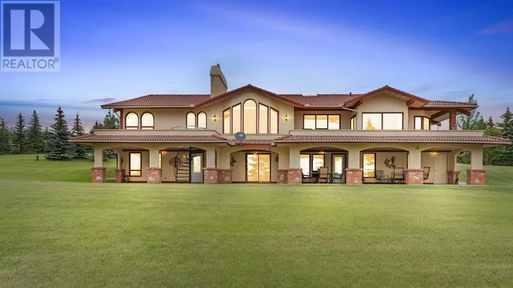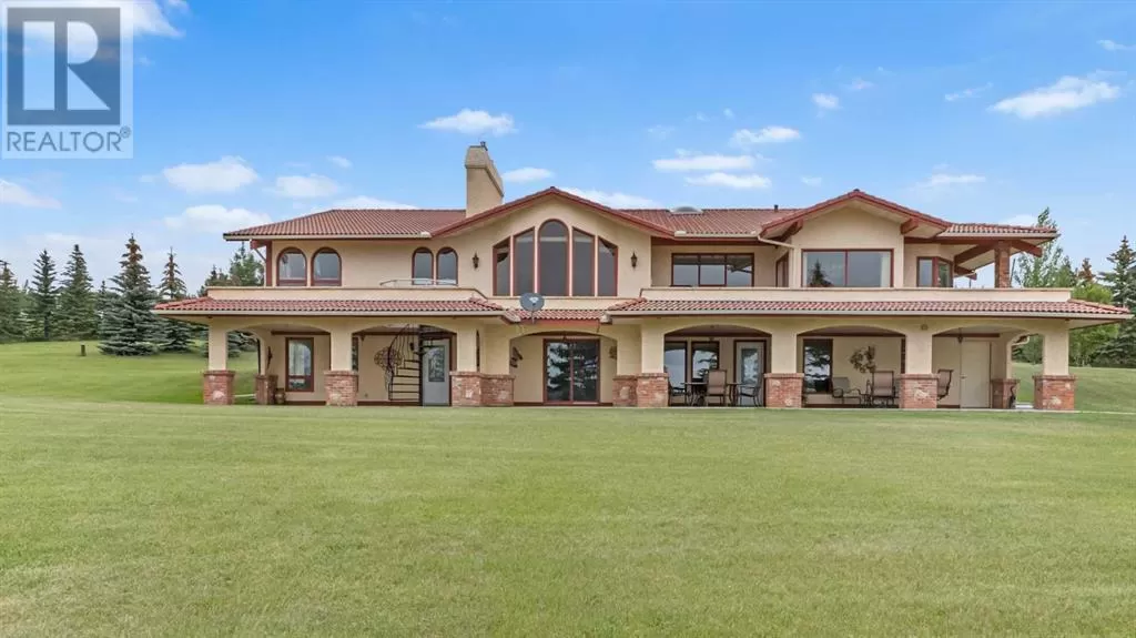 An exceptional opportunity to own nearly 20 acres just minutes from SW Calgary, Spruce Meadows, and the SW Ring Road, with breathtaking mountain views and room to grow. This property offers a rare combination of peaceful rural living, horse-ready infrastructure, and future development potential (subject to MD approval for subdivision).Ideal for equestrian enthusiasts, the land is cross-fenced into three separate pastures and includes a horse shelter, with plenty of space to expand. The custom-built walkout bungalow offers nearly 3900 square feet on the main floor and features 4 bedrooms, 3.5 bathrooms, a gourmet kitchen, curved staircase, vaulted ceilings, skylights, and 3 fireplacesâan elegant, spacious home designed for comfort and entertaining.Enjoy the convenience of a heated triple-attached garage plus a separate 3-car detached garage, ideal for vehicles, a workshop, or potential conversion into a barn. The walkout lower level is partially finished and offers flexible space, including the option to develop a self-contained living space.Whether you're seeking space for horses, investment potential, or simply a private retreat close to the city, this unique property delivers incredible value and versatility. Donât miss this chance to own in the foothills with views, privacy, and potential. (id:27476)
