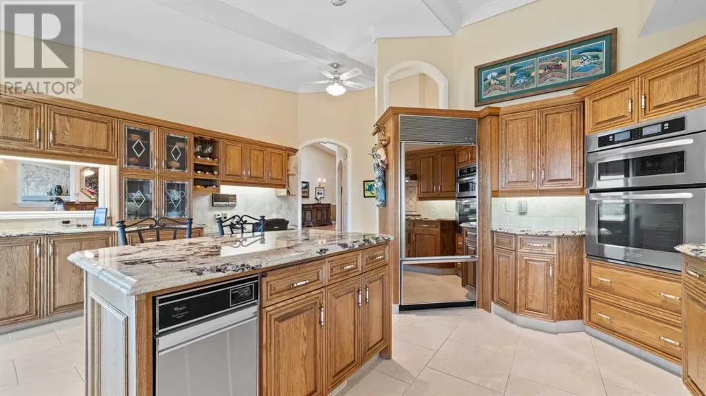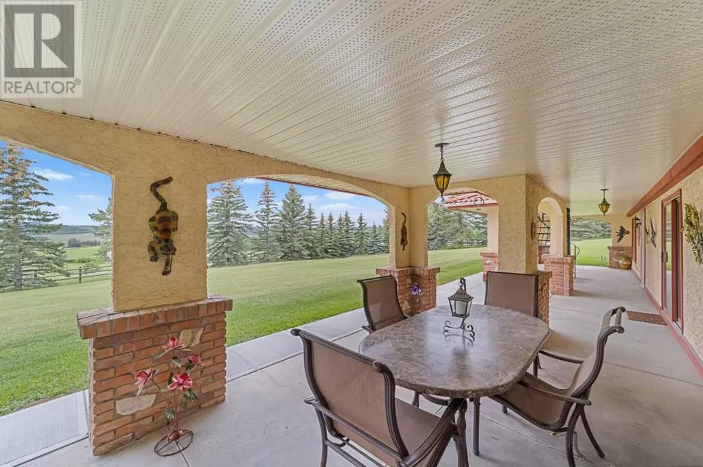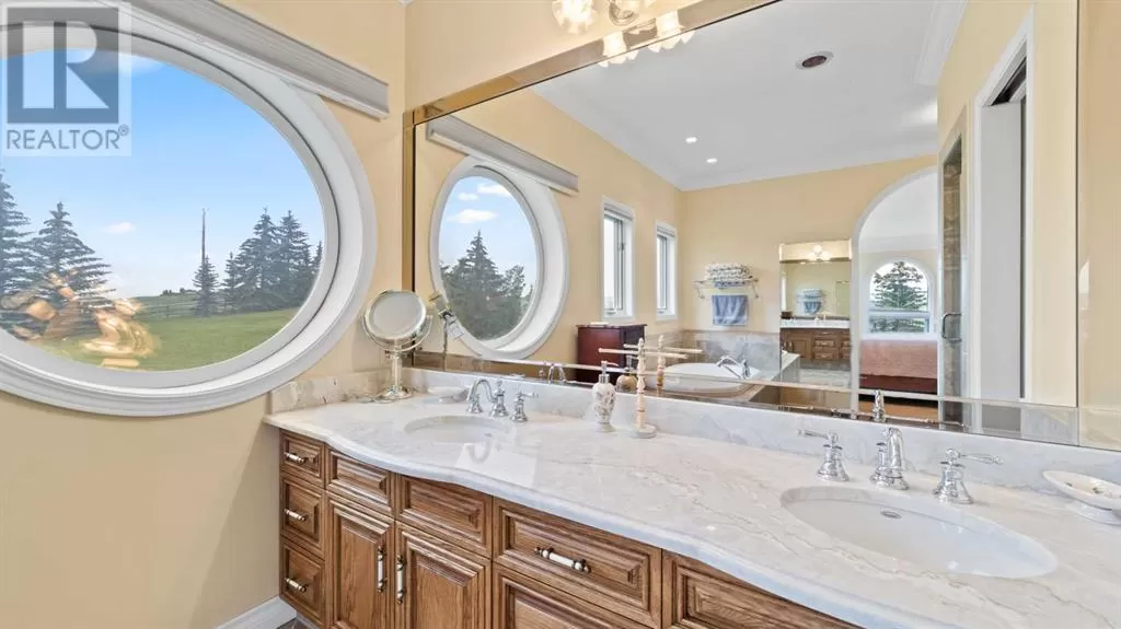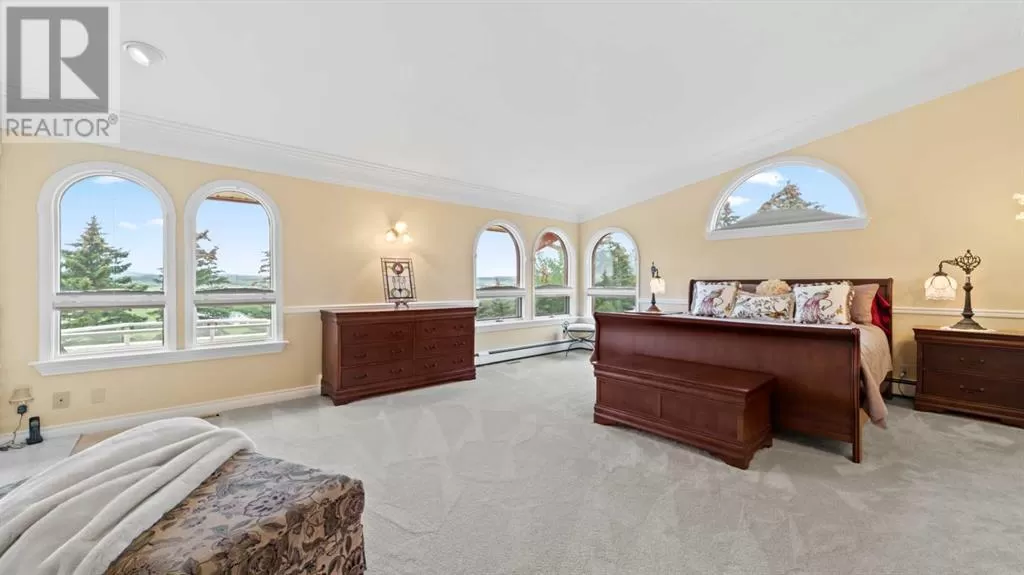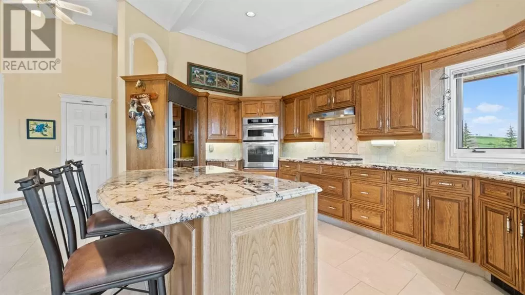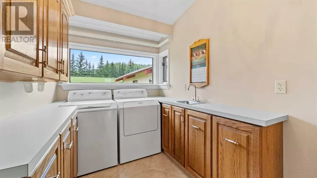 An exceptional opportunity to own nearly 20 acres just minutes from SW Calgary, Spruce Meadows, and the SW Ring Road, with breathtaking mountain views and room to grow. This property offers a rare combination of peaceful rural living, horse-ready infrastructure, and future development potential (subject to MD approval for subdivision).Ideal for equestrian enthusiasts, the land is cross-fenced into three separate pastures and includes a horse shelter, with plenty of space to expand. The custom-built walkout bungalow offers nearly 3900 square feet on the main floor and features 4 bedrooms, 3.5 bathrooms, a gourmet kitchen, curved staircase, vaulted ceilings, skylights, and 3 fireplacesâan elegant, spacious home designed for comfort and entertaining.Enjoy the convenience of a heated triple-attached garage plus a separate 3-car detached garage, ideal for vehicles, a workshop, or potential conversion into a barn. The walkout lower level is partially finished and offers flexible space, including the option to develop a self-contained living space.Whether you're seeking space for horses, investment potential, or simply a private retreat close to the city, this unique property delivers incredible value and versatility. Donât miss this chance to own in the foothills with views, privacy, and potential. (id:27476)