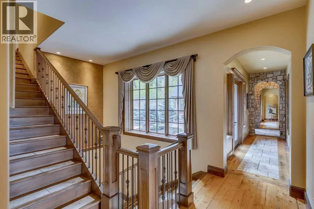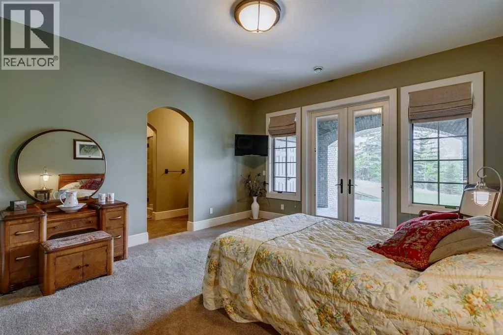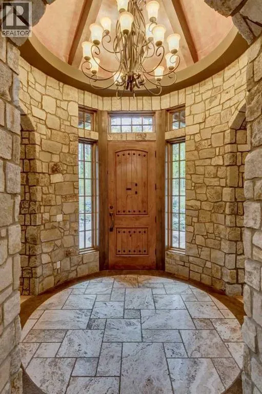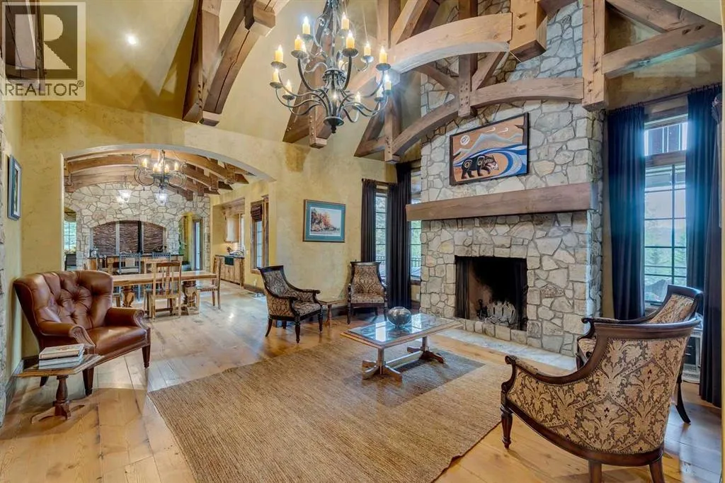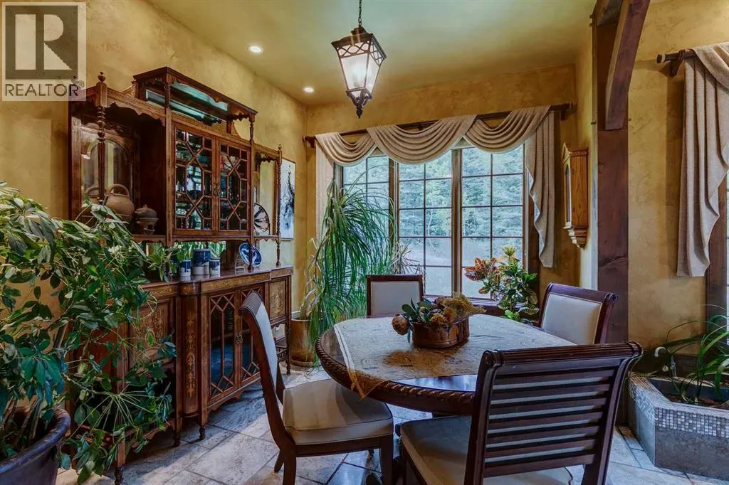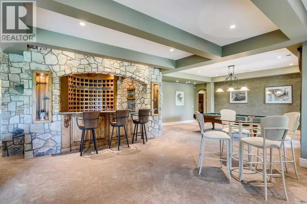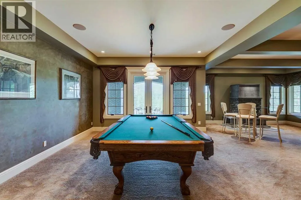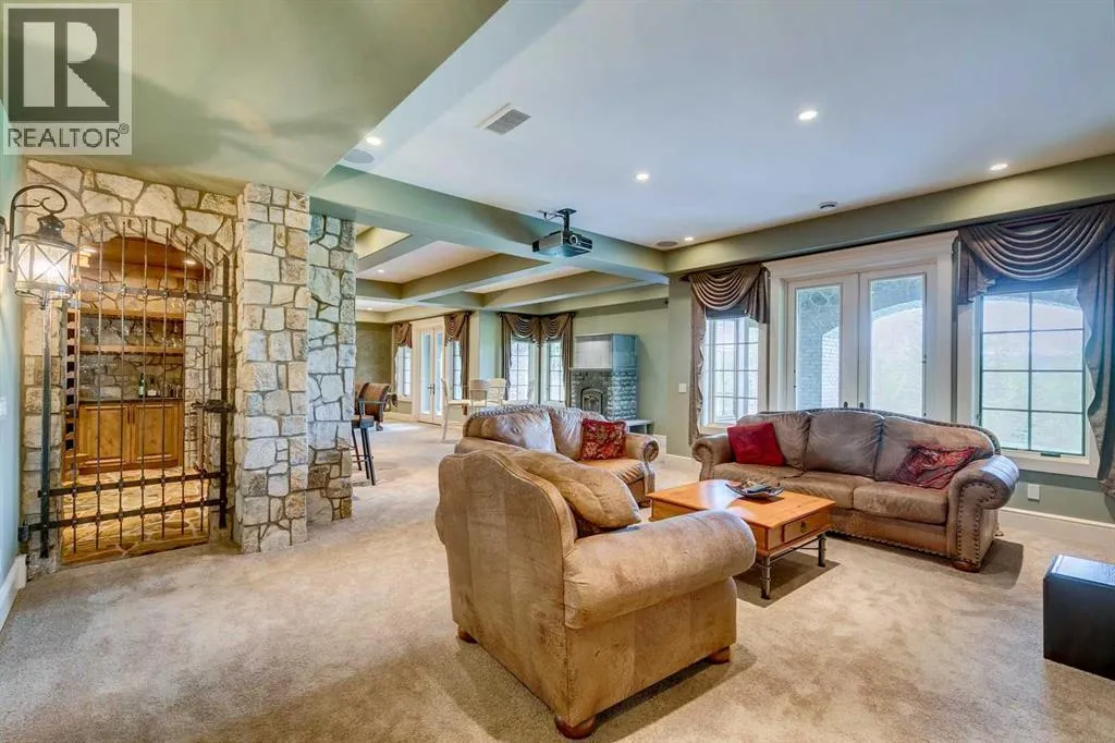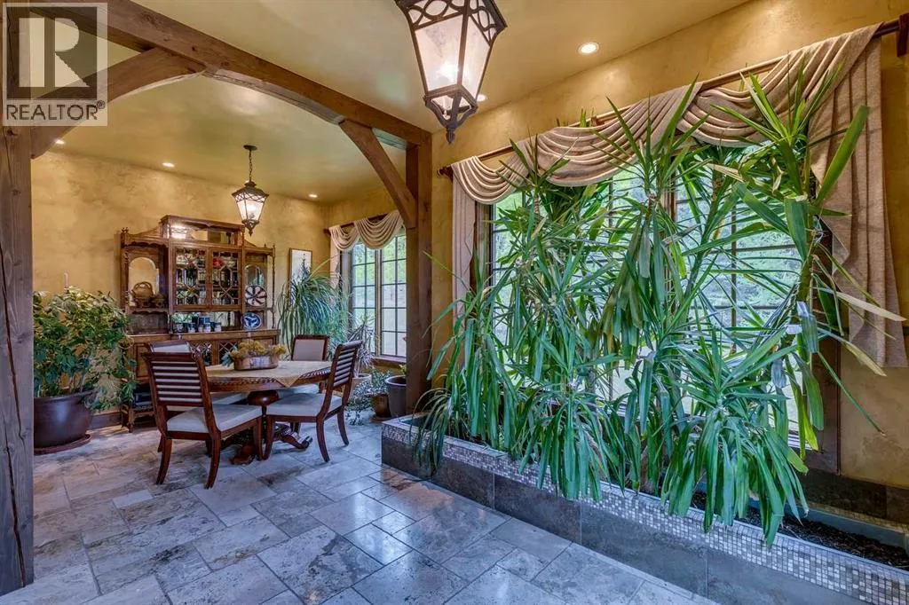 25 minutes from southwest Calgary city limits, this timber and stone masterpiece is set against the backdrop of the majestic Rockies, embraced by rolling ranch lands that offer endless natural beauty. Nestled between Brown-Lowery Provincial Park and Kananaskis Forest Reserve the home promises a lifestyle rooted in nature and refined living . The nearby charming towns of Millarville, Black Diamond and Bragg Creek host festivals and markets year round along with access to esteemed schools, shopping, entertainment and medical facilities. This 2011 SAM AwardâBest New Custom Home-winning residence captivates with its stone fireplaces, exposed timber beams, tall French doors under vaulted ceilings. By design, mornings begin in a bright courtyard featuring a serene fountain, while evenings are reserved for unwinding on a west-facing deck that showcases sunsets and mountain vistas âas far as the eye can see.â With amenities like a built-in gas BBQ, an outdoor stone fireplace, and overhead heaters beneath the shelter of a timber truss roof, every season is met with inviting warmth and style. The homeâs seamless flow unites a one and half story main floor, a walkout lower level, and an upper loft that can be converted to feature a fourth bedroom, ensuite bath and private denâtotaling 6,561 square feet of thoughtfully planned living space. The chefâs kitchen is a dream come true, featuring custom-built alder cabinets, an Aga vented gas range, an integrated fridge and freezer, and a plumbed coffee maker. This culinary space adjoins rooms that facilitate both formal dining and casual family gatherings, ensuring that every meal becomes a shared experience. True to its natural spirit, the home is built almost entirely of organic materials. A copper-seamed Coppola roof crowns the exterior alongside natural stone and brick facades, while reclaimed hardwoods and honed stone floors lend an artisanal touch throughout. Metal-clad fir windows and oversized French doors open onto wood -planked decks that embrace the walkout patio and extend to the hot tub areaâperfect for relaxing or entertaining in style. A Scandinavian-inspired spa, a three-piece bath, and a dedicated gym further round out a suite of wellness-oriented features. Inside, vaulted ceilings accented by fir timber beam trusses create a grand yet inviting atmosphere. Stone and granite countertops provide a luxurious touch in every room. Additional highlights include a home theater, wine cellar, billiards room, and a striking Tulikivi fireplace that anchors memorable family moments. An ensuite bedroom on the lower level ensures comfort and privacy for guests or extended family. Modern living integrated with timeless design. State-of-the-art equipment all working together to keep the air, water, and environment healthy, clean, and comfortable year-round. This move-in ready estate awaits your private viewing. (id:27476)