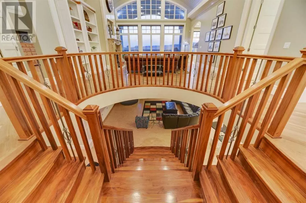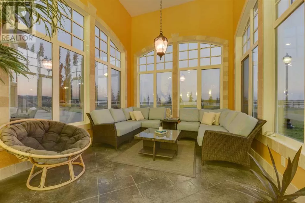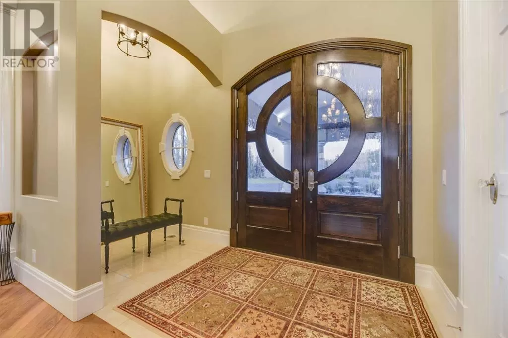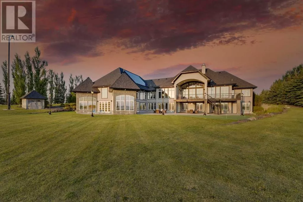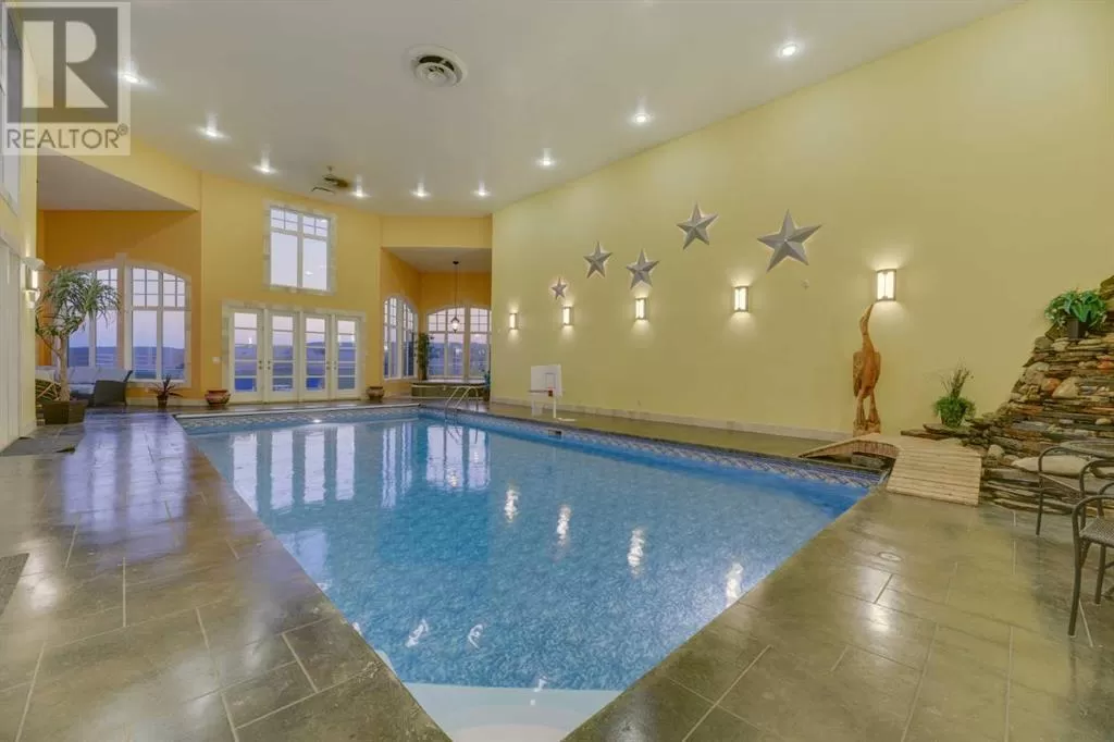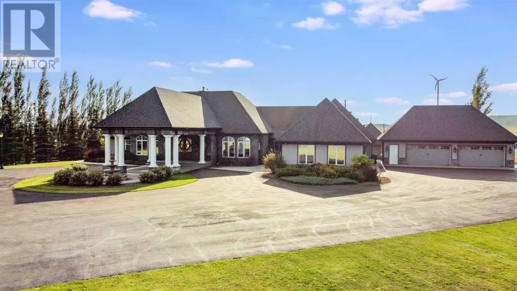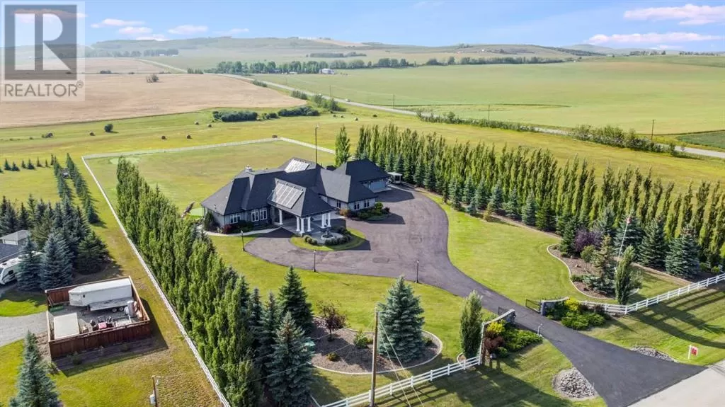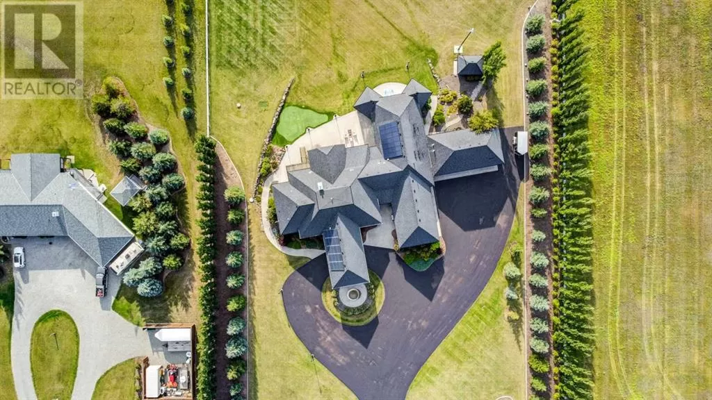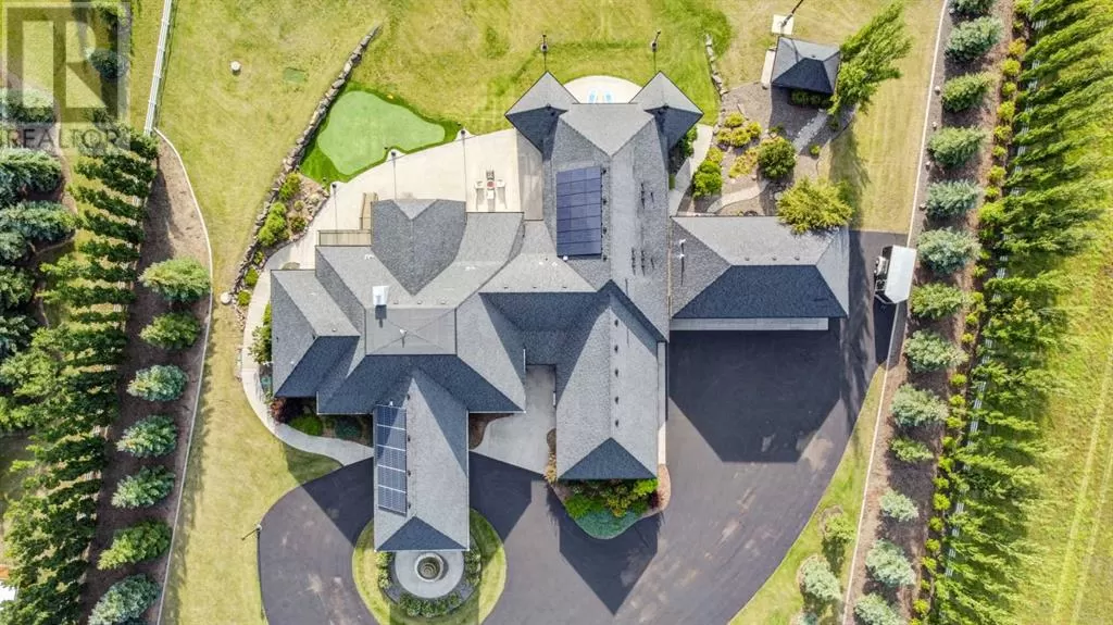 This extraordinary estate offers an unmatched lifestyle of luxury, serenity, and elegance. Set on 7.98 acres of meticulously manicured, gated grounds, this private sanctuary provides sweeping views of the majestic mountains and picturesque valleys. Located just minutes from the vibrant city of Calgary, the charming town of Okotoks, the Calgary Polo Club, and the prestigious Strathcona-Tweedsmuir School, this property blends the best of secluded country living with urban convenience.As you approach Through the secure private gates and drive up to your front door via a circular paved driveway, the estate makes a grand impression with a central fountain and a stately portico framing the striking Black Forest front door. The three-acre homesite is beautifully framed by low-maintenance white vinyl fencing and serene landscaping, creating a peaceful oasis that sets the tone for what lies within.Step inside and discover a home where comfort meets sophistication. The grand foyer with 85 ft barrel ceiling welcomes you with a stunning combination of pearlescent marble and black walnut flooring as you enter the main living area a crystal chandelier with hoist capability crowns the main level, adding a sparkling touch of refinement over your open Stairway to the lower level which offers more exquisite living space .The open-concept layout flows seamlessly into the great room, anchored by a custom wood-burning fireplace, creating a warm and inviting atmosphere perfect for quiet evenings or lively gatherings. This then leads you to a chefâs dream kitchen outfitted with a walnut island, premium Sub-Zero and Dacor appliances, and four dishwashersâdesigned for effortless entertaining. The primary suite is a private retreat, complete with a spa-inspired lounge and a dream-worthy walk-in closet. Throughout the home, thoughtful design and high-end finishes enhance every room.As you head down to the lower level Walk-out you will enjoy your evening with movies, sports or game in your large Recreation games room with a dedicated sports bar with four televisions. This level also offers a workout area along with 2 additional spacious bedrooms and access to your fantastic indoor pool with State of the art ventilation system, indoor area with solarium area and hot tub, and sauna, from here you also have out door access to a huge aggregate patio, ideal for entertaining guests or just relaxing taking in the amazing sunsets, or (for the golf enthusiast) you are just steps to your four-hole putting green-that adds a playful and social element to the home.Outdoors, the luxury continues with a tranquil waterfall and lounge area, and a spacious patio ideal for entertaining or simply enjoying Albertaâs stunning sunsets. Car enthusiasts will appreciate the attached and detached quad garages-both finished to the highest standardâwith a car lift, loft space, and ample storage (id:27476)