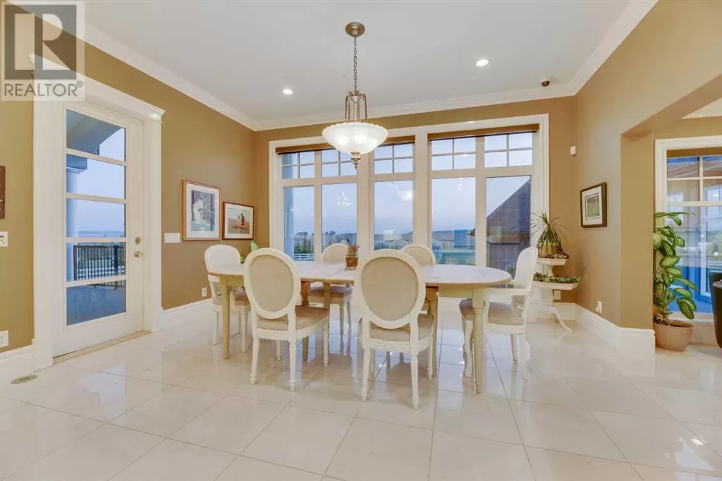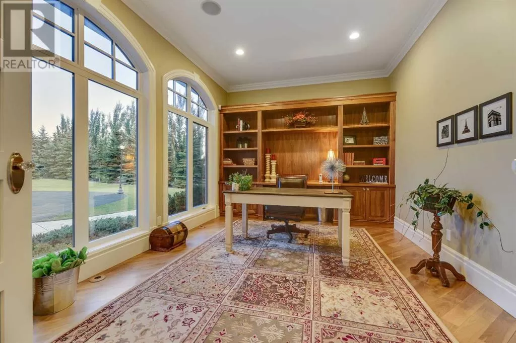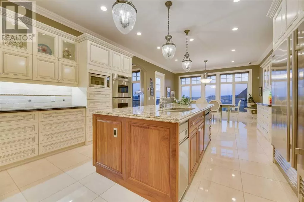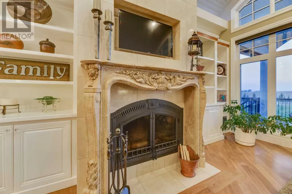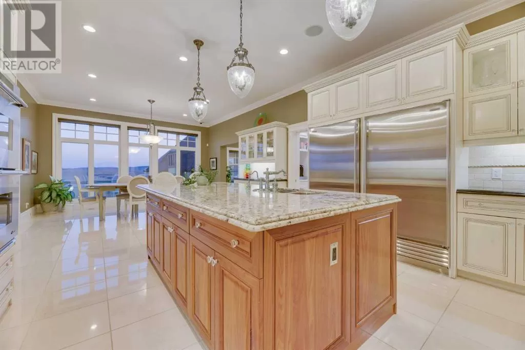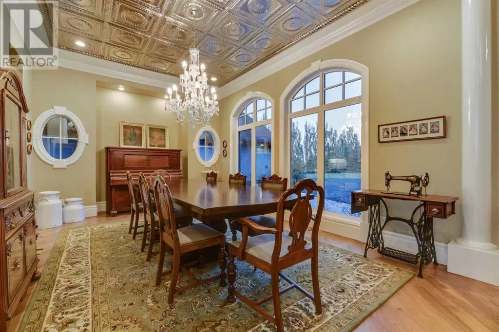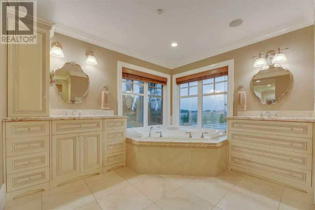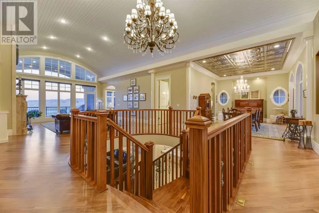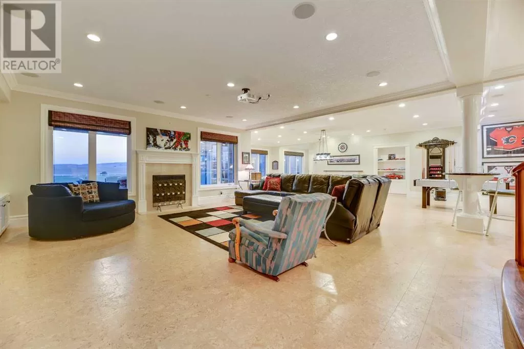 This extraordinary estate offers an unmatched lifestyle of luxury, serenity, and elegance. Set on 7.98 acres of meticulously manicured, gated grounds, this private sanctuary provides sweeping views of the majestic mountains and picturesque valleys. Located just minutes from the vibrant city of Calgary, the charming town of Okotoks, the Calgary Polo Club, and the prestigious Strathcona-Tweedsmuir School, this property blends the best of secluded country living with urban convenience.As you approach Through the secure private gates and drive up to your front door via a circular paved driveway, the estate makes a grand impression with a central fountain and a stately portico framing the striking Black Forest front door. The three-acre homesite is beautifully framed by low-maintenance white vinyl fencing and serene landscaping, creating a peaceful oasis that sets the tone for what lies within.Step inside and discover a home where comfort meets sophistication. The grand foyer with 85 ft barrel ceiling welcomes you with a stunning combination of pearlescent marble and black walnut flooring as you enter the main living area a crystal chandelier with hoist capability crowns the main level, adding a sparkling touch of refinement over your open Stairway to the lower level which offers more exquisite living space .The open-concept layout flows seamlessly into the great room, anchored by a custom wood-burning fireplace, creating a warm and inviting atmosphere perfect for quiet evenings or lively gatherings. This then leads you to a chefâs dream kitchen outfitted with a walnut island, premium Sub-Zero and Dacor appliances, and four dishwashersâdesigned for effortless entertaining. The primary suite is a private retreat, complete with a spa-inspired lounge and a dream-worthy walk-in closet. Throughout the home, thoughtful design and high-end finishes enhance every room.As you head down to the lower level Walk-out you will enjoy your evening with movies, sports or game in your large Recreation games room with a dedicated sports bar with four televisions. This level also offers a workout area along with 2 additional spacious bedrooms and access to your fantastic indoor pool with State of the art ventilation system, indoor area with solarium area and hot tub, and sauna, from here you also have out door access to a huge aggregate patio, ideal for entertaining guests or just relaxing taking in the amazing sunsets, or (for the golf enthusiast) you are just steps to your four-hole putting green-that adds a playful and social element to the home.Outdoors, the luxury continues with a tranquil waterfall and lounge area, and a spacious patio ideal for entertaining or simply enjoying Albertaâs stunning sunsets. Car enthusiasts will appreciate the attached and detached quad garages-both finished to the highest standardâwith a car lift, loft space, and ample storage (id:27476)