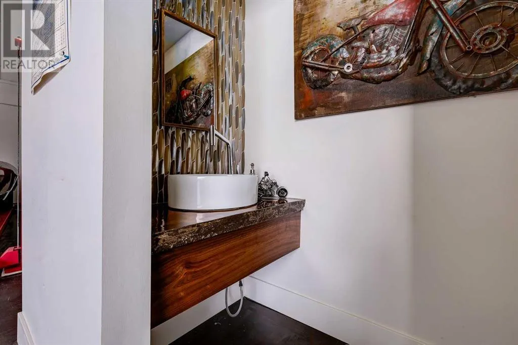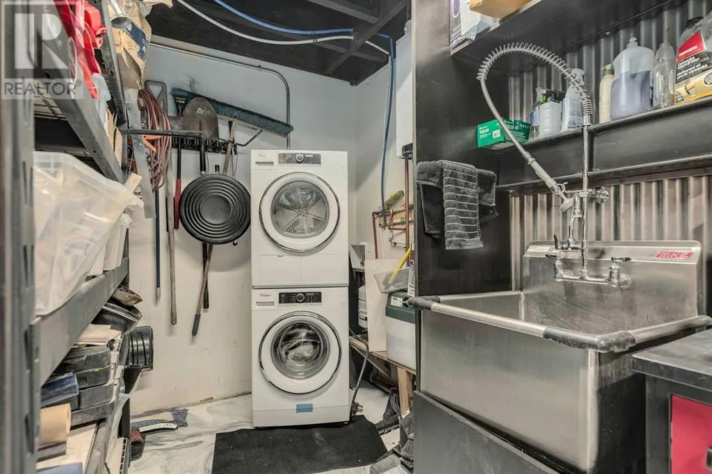 Your Dream Garage awaits in the form of the largest double unit at the exclusive STASH â Luxury Garages! Youâll be the envy of all your friends in this fully developed designer garage & entertainment hideaway, ready for you to STASH your Toys! Your guests will be in awe with this 3,800 sq ft dream space. The main floor boasts a feature wall, warm cement flooring with epoxy coating, storage space, washer/dryer and half bathroom. Up the timber staircase, the mezzanine hosts your expansive kitchenette with custom cabinetry, full sized bar fridge, dishwasher, double refrigerated drawers and two big screen TV rooms! Offering a full bathroom to clean up after spending the day playing with your toys. Youâll feel right at home in this private club atmosphere where you can socialize with like minded individuals. You will rest well knowing your most prized possessions are tucked away safely in the fully secure and gated facility with high efficiency construction and LED lighting. Call to tour this amazing project! There is also an owners lounge with two bathrooms, kitchenette, pool table and fire place you can use as a part of this exclusive project. (id:27476)