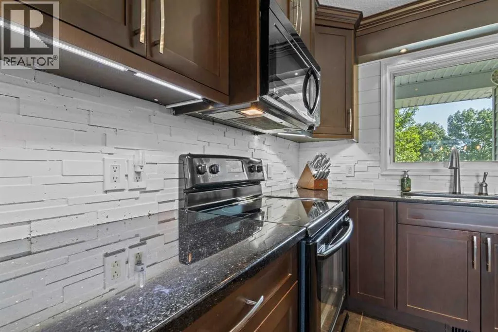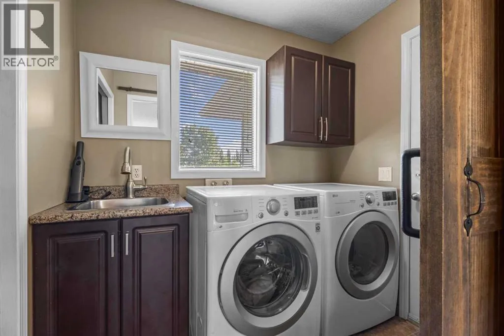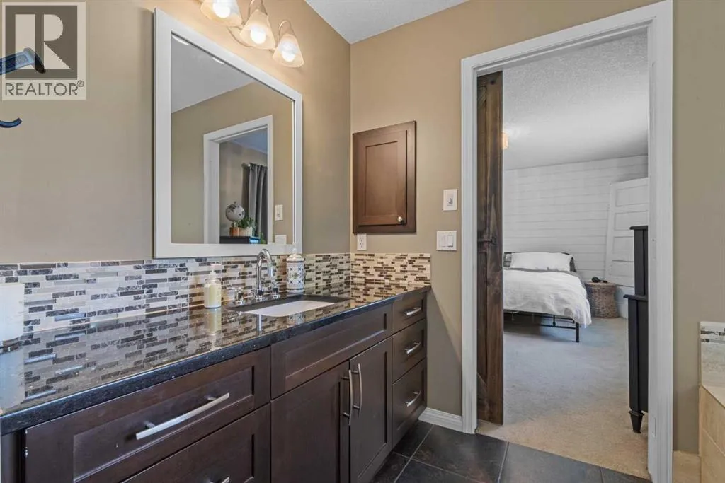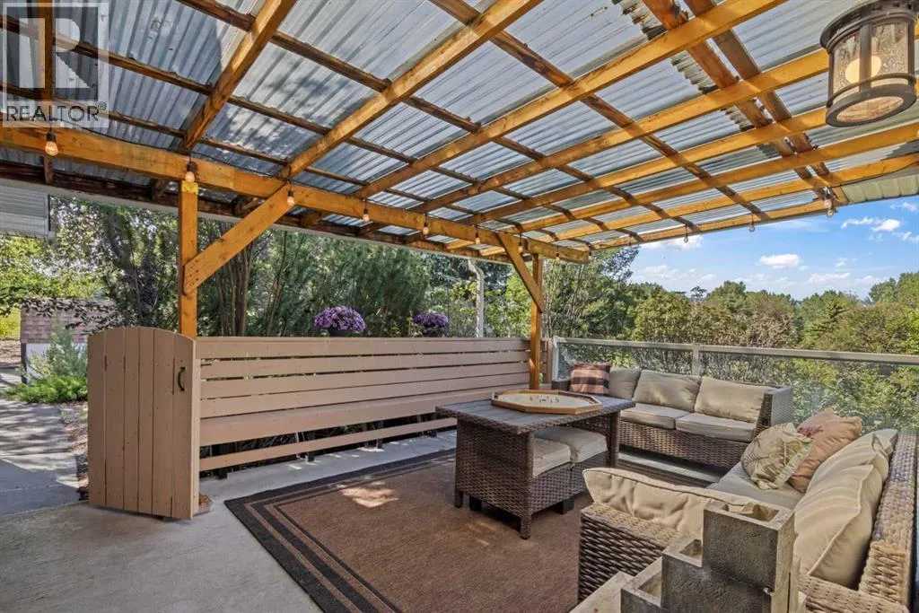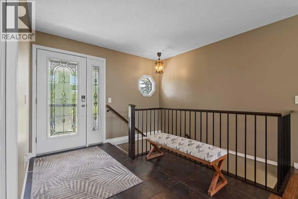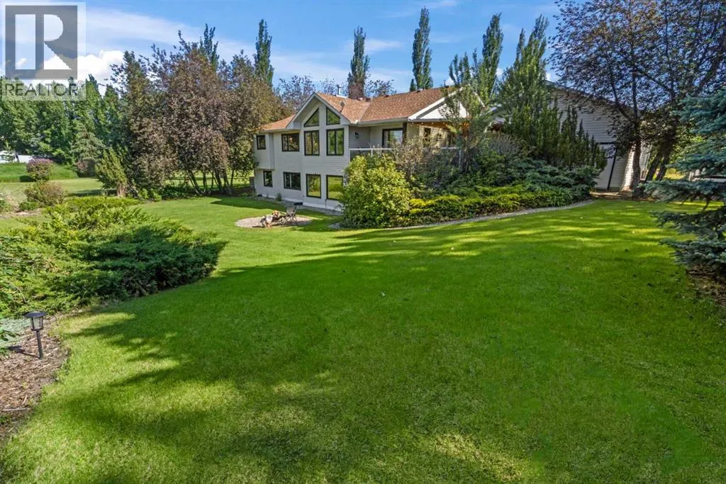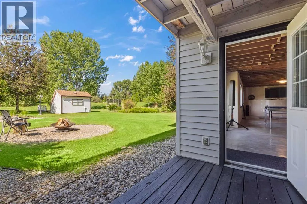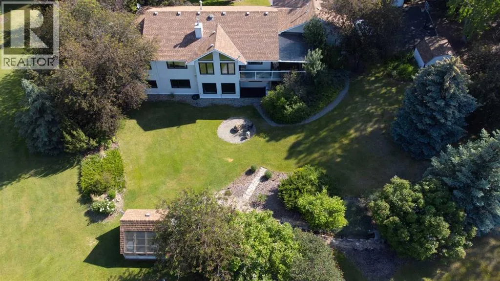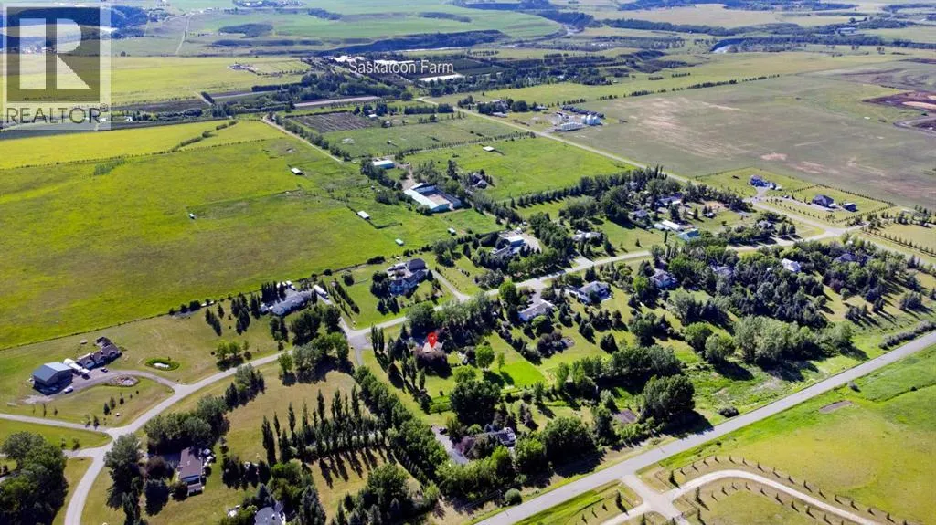 Welcome to acreage living at its finest in the sought-after Highwood Meadows subdivisionânestled on 2.13 BEAUTIFULLY LANDSCAPED acres just west of the iconic Saskatoon Farm. This UPDATED WALKOUT BUNGALOW seamlessly blends MODERN FARMHOUSE charm with SERENE COUNTRY LIVING, offering over 1,500 sq ft on the main level and room to grow in the partially finished lower level. Step inside to discover a bright and open living room with soaring VAULTED ceilings, HAND-SCRAPED HARDWOOD floors, and FLOOR-TO-CEILING WINDOWS that flood the space with natural light. A cozy gas fireplace, with TRAVERTINE TILE and a CEDAR MANTLE, creates a warm and inviting focal point. The dining area showcases UPDATED LIGHTING, stylish SHIPLAP feature walls, and direct access to a COVERED DECKâperfect for indoor-outdoor entertaining. The kitchen is complete with CEILING HEIGHT SOFT CLOSE CABINETRY, travertine tile backsplash, UNDERMOUNT LIGHTING, and easy access to the MAIN FLOOR LAUNDRY and mudroom. The primary suite overlooks the private backyard with a WALK-IN CLOSET and a 4-piece ENSUITE featuring a GRANITE VANITY, JETTED TUB, and separate GLASS/TILE SHOWER. Two additional bedrooms and another full 4-piece bathroom complete the main floor. Downstairs, the WALKOUT BASEMENT is drywalled with ELECTRICAL & PLUMBING COMPLETEDâready for your finishing touches. The spacious layout offers a MASSIVE REC/GAMES ROOM perfect for entertaining, a 4TH bedroom, a 2-piece bath, and a dedicated GYM SPACE. Step outside to the LOWER PATIO and enjoy evenings around the FIRE PIT. Additional features include: NEW SEPTIC TANK. NEW WINDOWS along the back of the home, Oversized HEATED double attached GARAGE with adjacent asphalt parking pad, INVISIBLE FENCING for pets, POWERED GREENHOUSE and dedicated GARDEN AREA. Easy access to Okotoks and a short commute to Calgary. This property offers the peace and privacy of acreage living with all the conveniences of city life just minutes away. Donât miss your chance to own t his exceptional home! (id:27476)