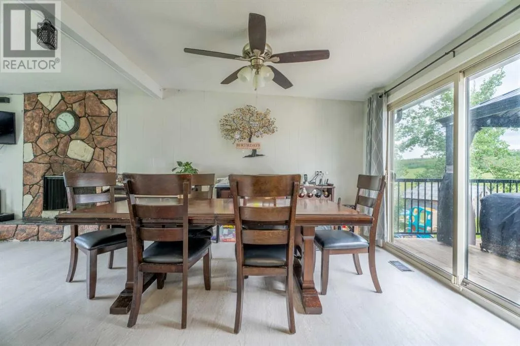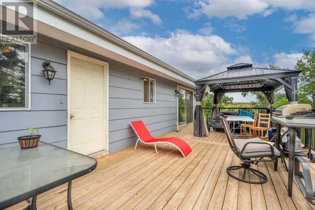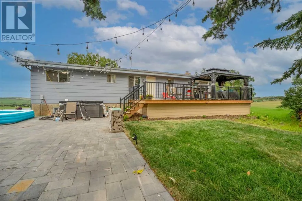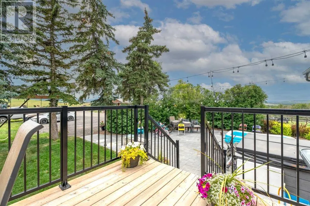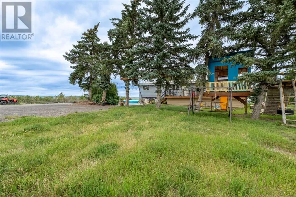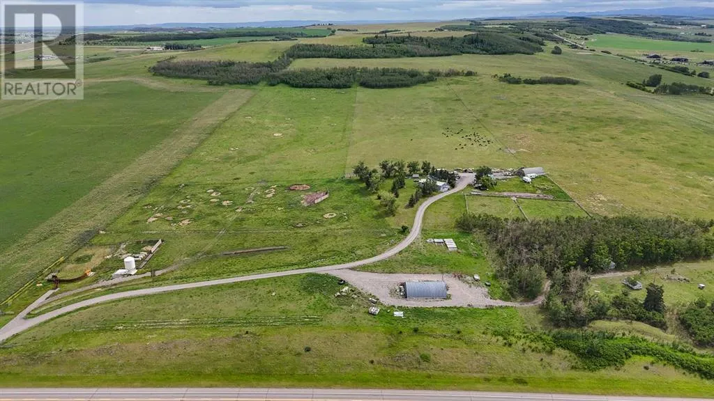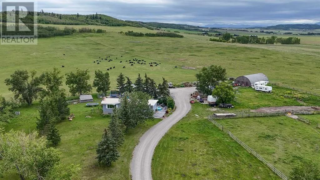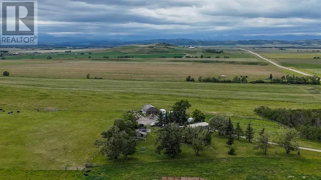 Welcome to your dream country retreat, nestled on 145.11 acres in picturesque Foothills County. Perfectly set up for cattle, horses, or any four-legged friends you wish to raise, this property features mature trees, rolling pastures, and 180-degree unobstructed views of the Rocky Mountains and Foothills, offering the ultimate rural lifestyleâjust minutes from Diamond Valley and Okotoks. The 1,300 sq. ft. bilevel home is warm and inviting, with five bedrooms and three full bathrooms, ideal for family living. Enjoy cozy evenings by the wood-burning fireplace, and host gatherings on the expansive outdoor patio and large back deck, where you can watch breathtaking sunsets over the hills. Families will also appreciate school bus service to both public and Catholic schools, ensuring convenient access to education while still enjoying the peace of country living. For livestock and equipment needs, the property is exceptionally well-equipped with a drive-through Quonset featuring horse stalls, a second Quonset ideal for equipment storage, and an additional shed for extra space. All outbuildings are powered with electricity, while stock waterers and strategically placed water hydrants ensure convenience and efficiency for your animals and operations. The land is cross-fenced, making it ideal for grazing and easy livestock management. This acreage offers the best of both worlds when it comes to location and accessibility. It sits along Highway 7, providing excellent year-round access for cattle, agricultural, or commercial operations. Moving livestock, hauling equipment, or transporting goods is effortless with the direct highway frontageâyet the home itself is set far enough back from the road, surrounded by mature trees and natural landscaping, creating a peaceful, private setting where you wonât hear the traffic. There is also an opportunity to lease the land to a neighboring farmer, offering potential supplemental income or an option for those who want to enjoy the rural lifestyle without actively farming the entire acreage. Ask for further details on leasing arrangements. This prime location offers the perfect balance of rural serenity and convenience, situated just minutes from Diamond Valley, Okotoks, and all essential amenities. From the âBack 40,â youâll enjoy incredible panoramic views of the rolling Foothills and the majestic Rocky Mountains, creating a truly breathtaking backdrop for your country lifestyle. Whether youâre looking for a working cattle operation, an equestrian setup, or a private countryside escape, this property is a rare find with endless potential. Donât miss this opportunity to own a true Foothills gem with room to grow, play, and thrive! (id:27476)