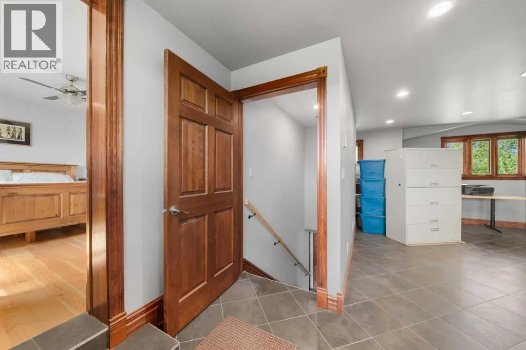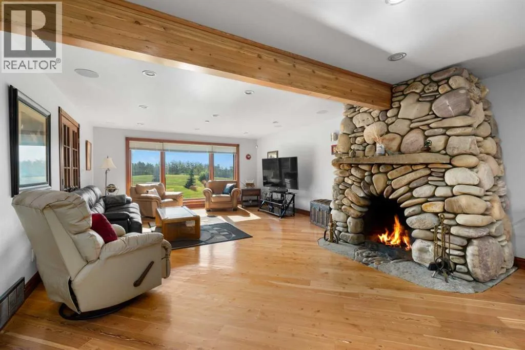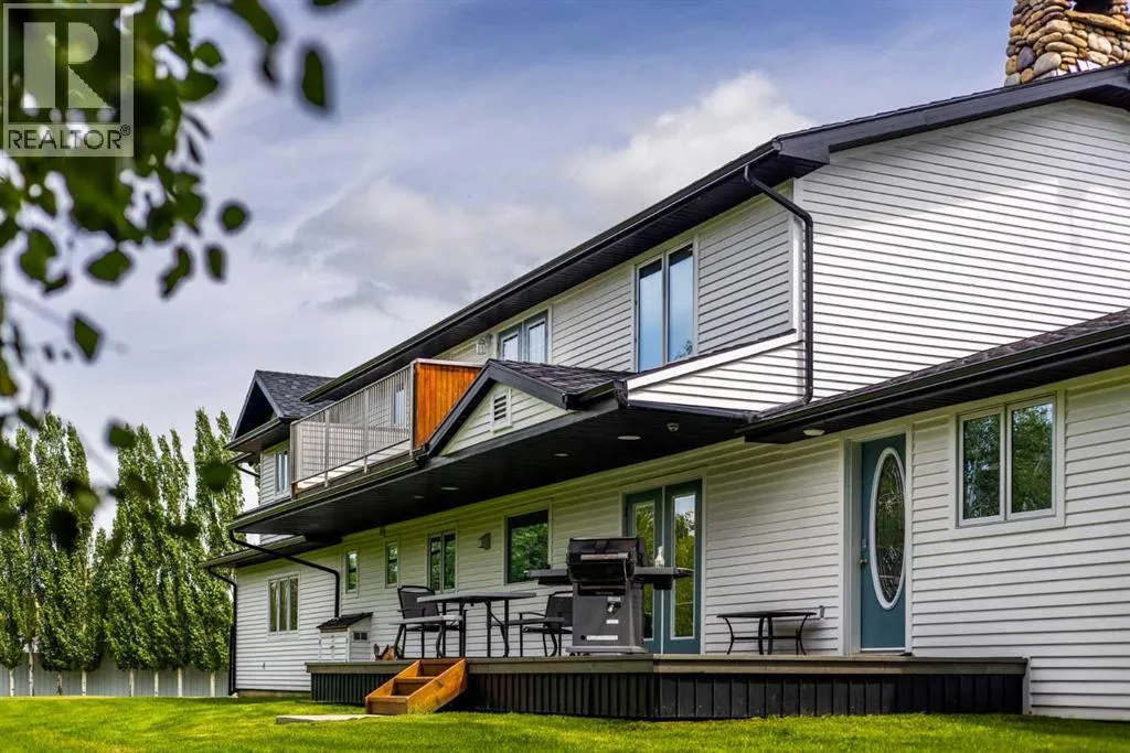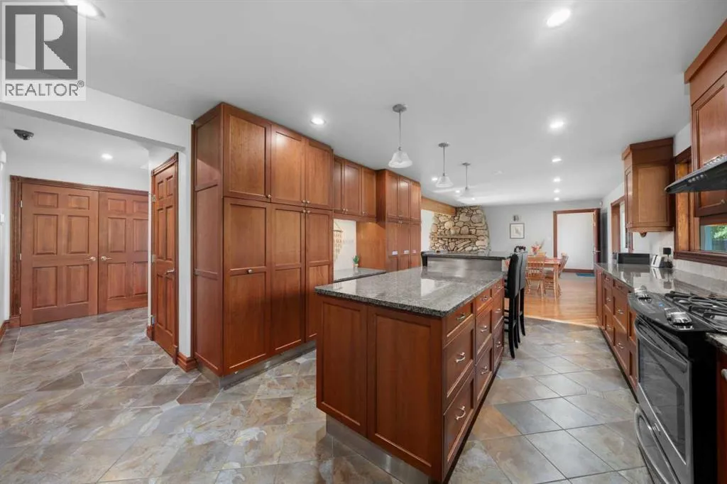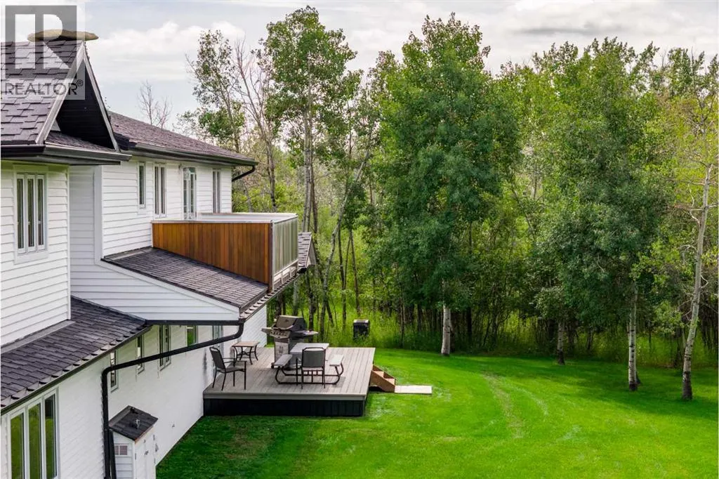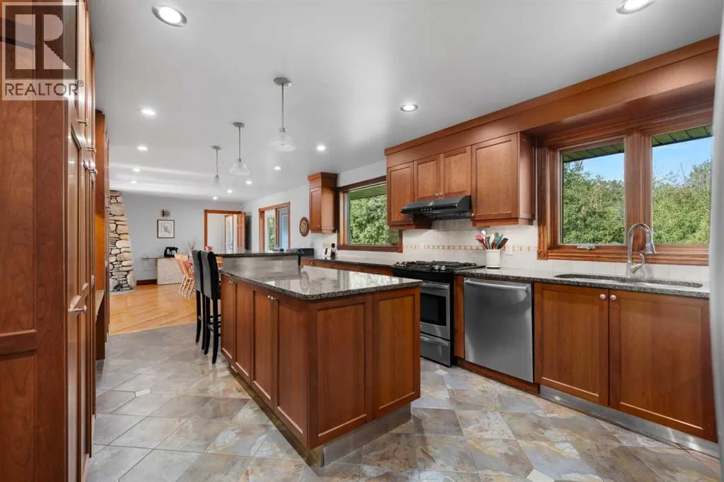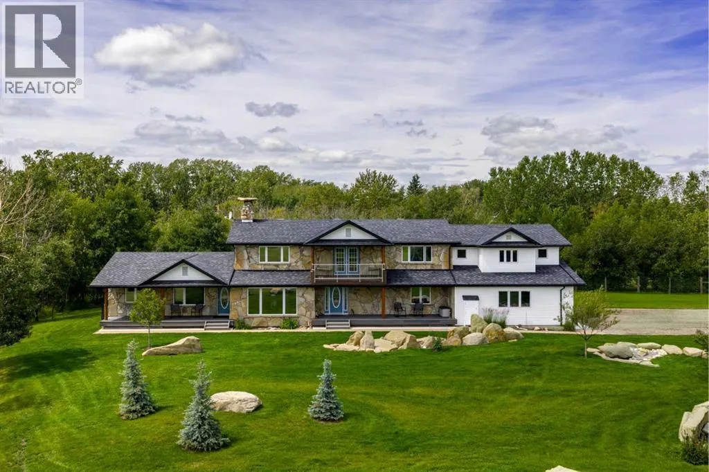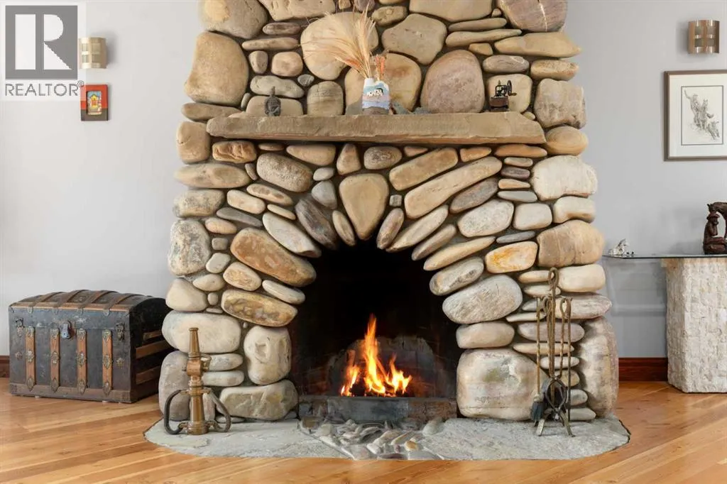 Incredibly rare opportunity to own a 13.84-acre urban acreage in the centre of Okotoks, offering unmatched privacy, character, and convenience, On TWO TITLES. Located in the Sheep River Valley, this one-of-a-kind property is surrounded by forests, wildlife, and green space, yet is within walking distance to schools, shopping, dining, recreation, entertainment and the river pathway system. The land features a private GATED DRIVEWAY , wired for a FUTURE ELECTRIC SECURITY GATE with CONTROLS INSIDE the HOME. The custom-built two-storey home offers over 4,100 sq ft of beautifully crafted living space, HUGE BONUS ROOM OFFICE above the garage and LEGAL SUITE. Designed with award-winning masonry, the exterior showcases full-bed locally sourced sandstone and fieldstone. Construction highlights include fir TIMBER FRAMING, 7â11â thick R30 exterior walls, R50 ATTIC INSULATION , and TRIPLE-PANE energy-efficient windows and 50 YEAR ARCHITECTURAL SHINGLES. Inside, the home features SOLID FIR DOORS, natural fir trim and casings, and 3-inch thick fir hardwood and tile flooring throughout. The main level includes a custom kitchen with SOLID CHEERY CABINETRY, GRANITE COUNTERTOPS, island seating, a pull out pantry, and a dedicated coffee station. Adjacent is a formal dining room, generous living room with an ORIGINAL RUMFORD-STYLE FIELDSTONE FIREPLACE, a large WELL APPOINTED OFFICE, and THREE MAIN-LEVEL DECKS to enjoy the peaceful surroundings. Oversized windows throughout the home provide natural light and sweeping sunrise and sunset views from nearly every room. Upstairs, you'll find THREE SPACIOUS BEDROOMS, a flexible-use library space, and TWO BALCONIES capturing both east- and west-facing views. A large laundry room with deck access was previously used as a kitchenette, with all original plumbing and wiring still in place. The BONUS ROOM over the garage is perfect for a home office, studio, or gym, featuring HEATED TILE flooring, seven large windows, hardwired data lines, and DUA L ACCESS from either the primary bedroom or a private stairwell from the garage. The lower level includes a full bathroom, ample storage, flexible finished space, and direct garage access to the heated oversized double garage. The home is HARDWIRED for a COMPREHENSIVE SECURITY SYSTEM, including 8 cameras, motion sensors, glass-break sensors, and electronic exterior door locks. The LEGAL 1-BEDROOM ground-level SUITE offers private front and rear entrances, INDEPENDENT UTILITIES, a full kitchen, bathroom with laundry, and a private living areaâideal for guests, family, or income. The custom built hemlock front gate pillars are hardwired to the house for cameras and electric gate controls. This private in-town retreat offers an exceptional blend of craftsmanship, seclusion, and convenience, with flexibility for multigenerational living, home-based businesses, or rental opportunities. An adjacent 21-acre parcel is also available for purchaseâplease inquire for details. (id:27476)