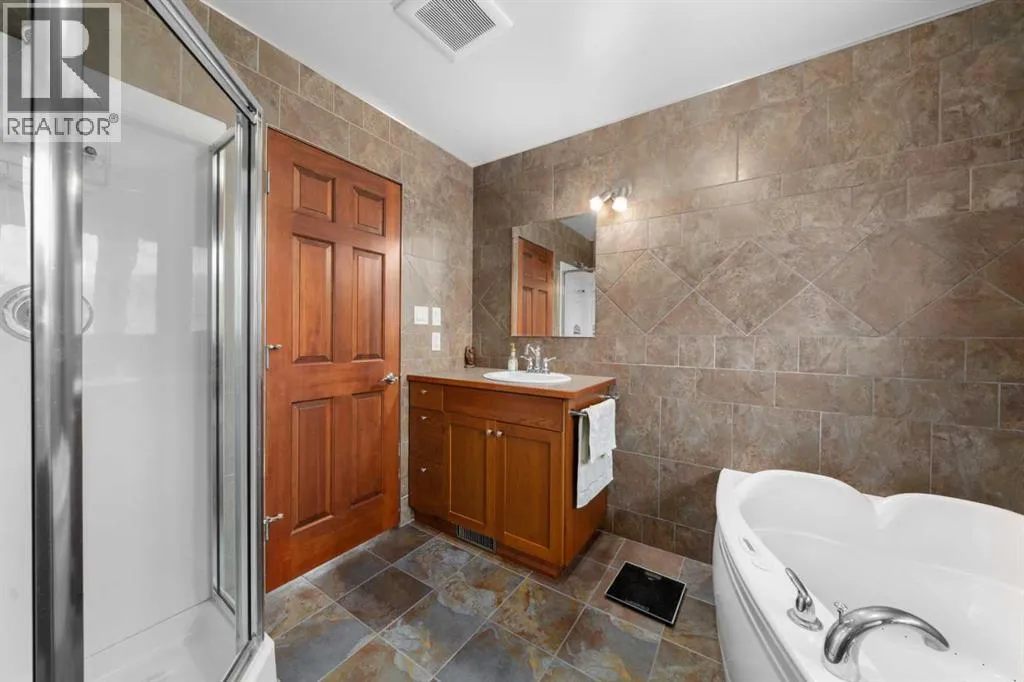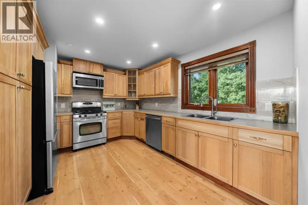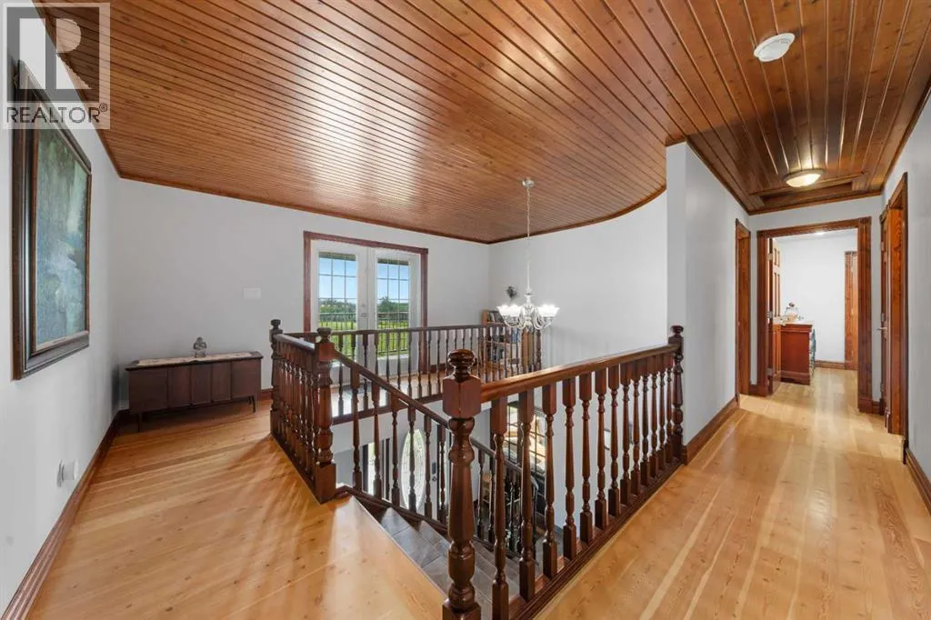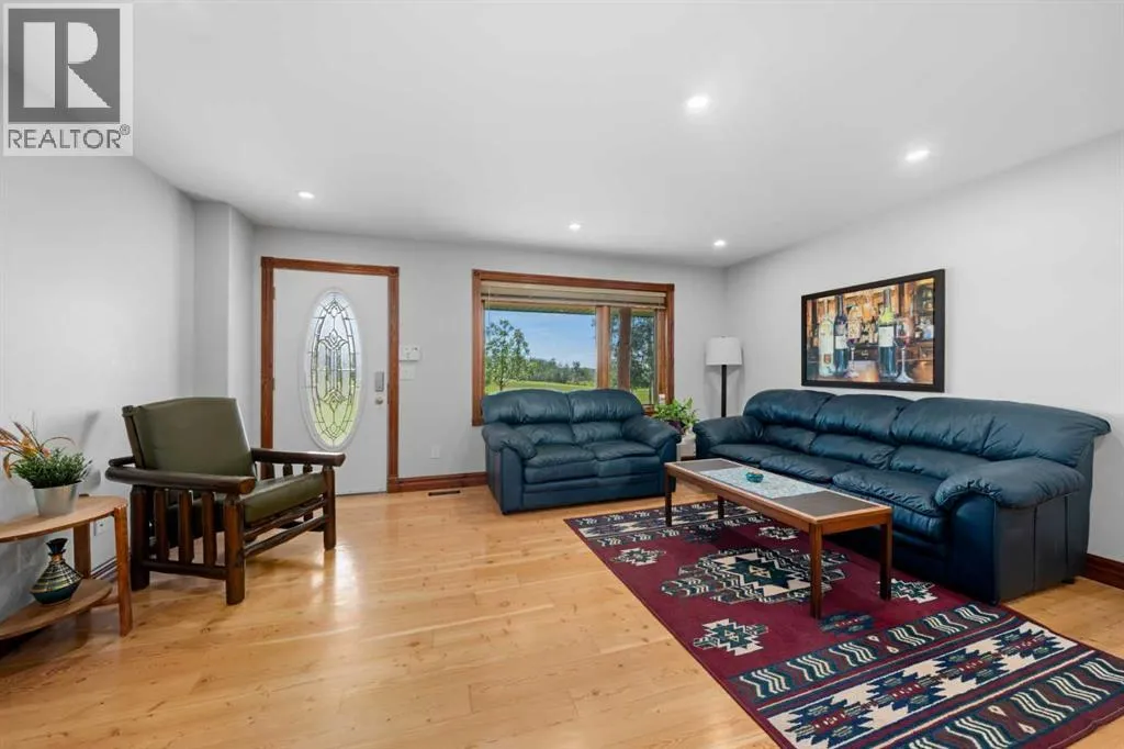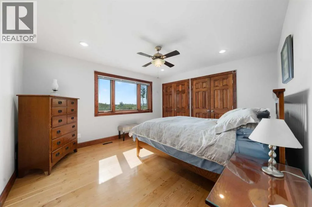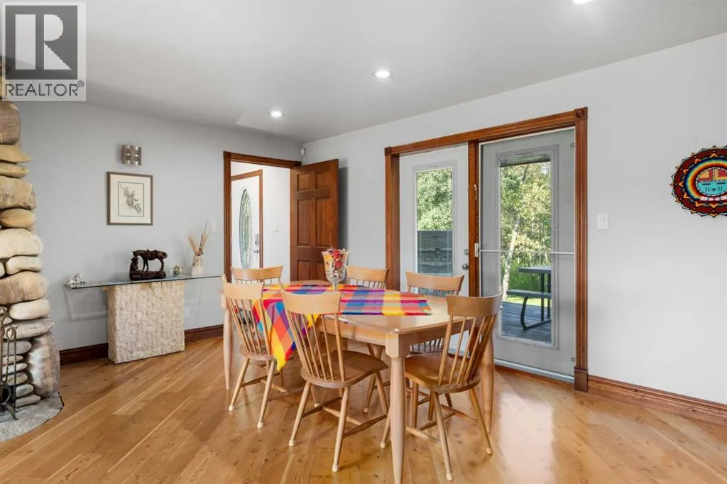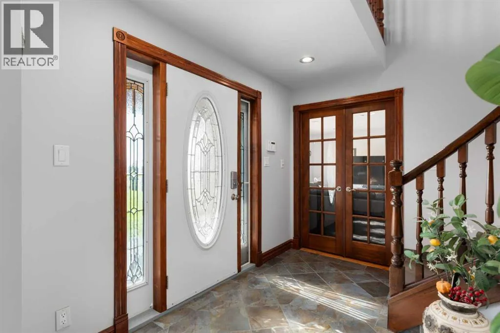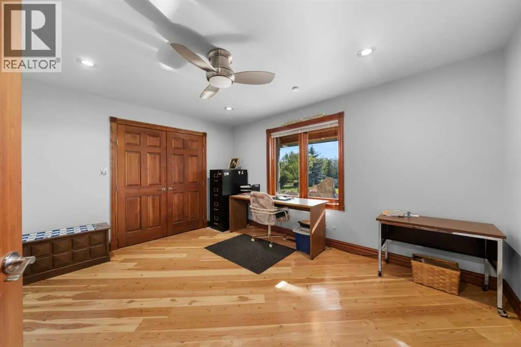 Incredibly rare opportunity to own a 13.84-acre urban acreage in the centre of Okotoks, offering unmatched privacy, character, and convenience, On TWO TITLES. Located in the Sheep River Valley, this one-of-a-kind property is surrounded by forests, wildlife, and green space, yet is within walking distance to schools, shopping, dining, recreation, entertainment and the river pathway system. The land features a private GATED DRIVEWAY , wired for a FUTURE ELECTRIC SECURITY GATE with CONTROLS INSIDE the HOME. The custom-built two-storey home offers over 4,100 sq ft of beautifully crafted living space, HUGE BONUS ROOM OFFICE above the garage and LEGAL SUITE. Designed with award-winning masonry, the exterior showcases full-bed locally sourced sandstone and fieldstone. Construction highlights include fir TIMBER FRAMING, 7â11â thick R30 exterior walls, R50 ATTIC INSULATION , and TRIPLE-PANE energy-efficient windows and 50 YEAR ARCHITECTURAL SHINGLES. Inside, the home features SOLID FIR DOORS, natural fir trim and casings, and 3-inch thick fir hardwood and tile flooring throughout. The main level includes a custom kitchen with SOLID CHEERY CABINETRY, GRANITE COUNTERTOPS, island seating, a pull out pantry, and a dedicated coffee station. Adjacent is a formal dining room, generous living room with an ORIGINAL RUMFORD-STYLE FIELDSTONE FIREPLACE, a large WELL APPOINTED OFFICE, and THREE MAIN-LEVEL DECKS to enjoy the peaceful surroundings. Oversized windows throughout the home provide natural light and sweeping sunrise and sunset views from nearly every room. Upstairs, you'll find THREE SPACIOUS BEDROOMS, a flexible-use library space, and TWO BALCONIES capturing both east- and west-facing views. A large laundry room with deck access was previously used as a kitchenette, with all original plumbing and wiring still in place. The BONUS ROOM over the garage is perfect for a home office, studio, or gym, featuring HEATED TILE flooring, seven large windows, hardwired data lines, and DUA L ACCESS from either the primary bedroom or a private stairwell from the garage. The lower level includes a full bathroom, ample storage, flexible finished space, and direct garage access to the heated oversized double garage. The home is HARDWIRED for a COMPREHENSIVE SECURITY SYSTEM, including 8 cameras, motion sensors, glass-break sensors, and electronic exterior door locks. The LEGAL 1-BEDROOM ground-level SUITE offers private front and rear entrances, INDEPENDENT UTILITIES, a full kitchen, bathroom with laundry, and a private living areaâideal for guests, family, or income. The custom built hemlock front gate pillars are hardwired to the house for cameras and electric gate controls. This private in-town retreat offers an exceptional blend of craftsmanship, seclusion, and convenience, with flexibility for multigenerational living, home-based businesses, or rental opportunities. An adjacent 21-acre parcel is also available for purchaseâplease inquire for details. (id:27476)