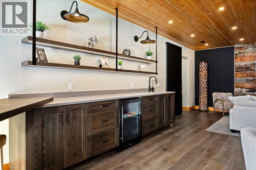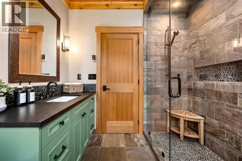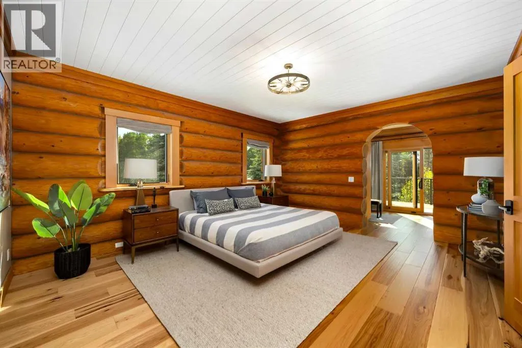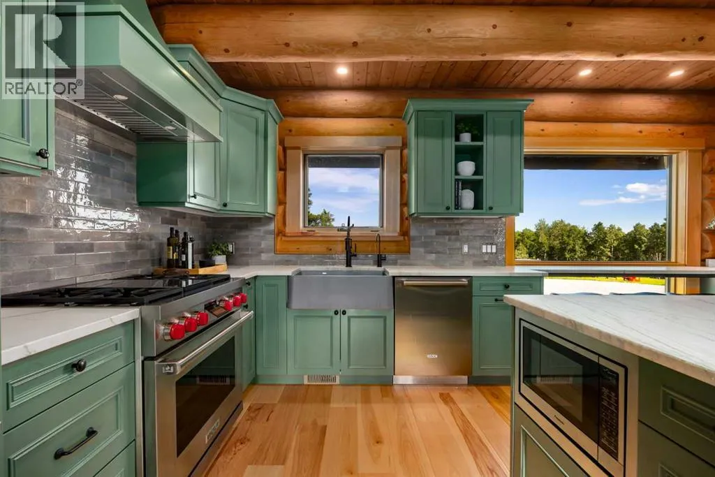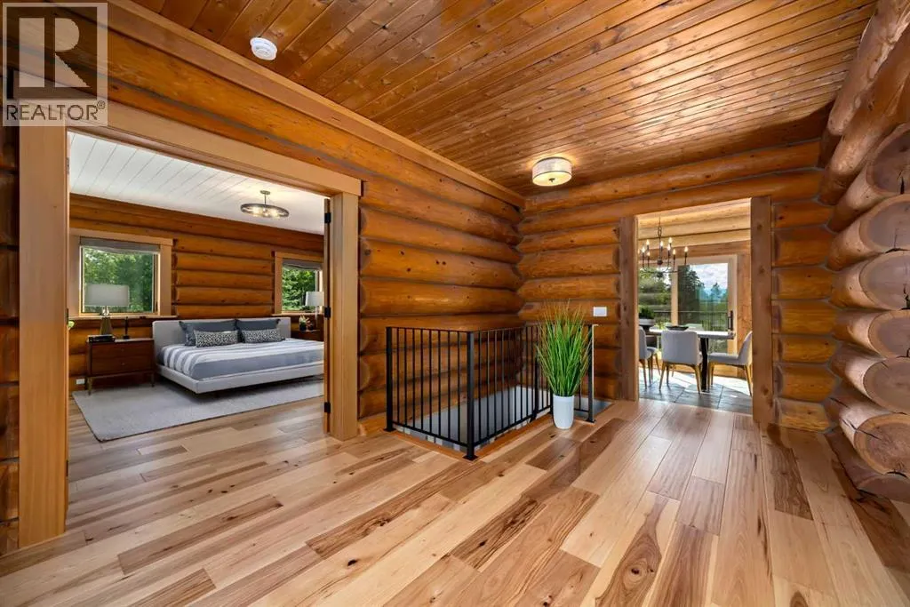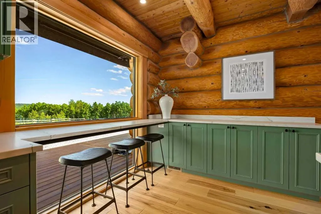 Set against a backdrop of Rocky Mountain views, this masterfully renovated 17 acre estate just minutes from Bragg Creek offers an exceptional blend of rural tranquility and sophisticated living. Thoughtfully redesigned from the ground up between 2022 and 2024, the 4000+ sq ft of living space has undergone a complete transformation, creating an elegant, turnkey property ideal for those seeking space, privacy, and unparalleled craftsmanship â all within a convenient reach of Calgary.This 4 bedroom, 3 bathroom home was completely stripped to the studs and professionally rebuilt with high-end materials and a timeless design. Natural hickory and oak flooring, Osmo-finished wood accents, and custom lighting bring a soft, organic feel to the space, while oversized Lux triple-pane windows frame the surrounding landscape and bathe the interior in natural light.At the heart of the home is a chefâs kitchen that seamlessly blends functionality with luxury. Outfitted with WOLF appliances, rich Luna quartzite countertops, farmhouse sink, and handcrafted cabinetry, itâs designed to elevate both everyday living and entertaining. The adjoining living spaces are equally as inviting, anchored by an Oracle gold-trimmed wood burning fireplace and offering effortless flow onto cedar patios that overlook the meticulously landscaped grounds.The master suite is a private sanctuary with direct patio access, a steam shower, and a custom walk-in closet. All bathrooms have been fully renovated with in-floor heating and premium finishes. Downstairs, the walkout basement features a theatre room and a custom gas fireplace, creating a cozy and versatile retreat.Behind the scenes, the electrical and plumbing systems have been comprehensively upgraded, including smart wiring, 200-amp service, a high-efficiency HVAC system, AC, and advanced water treatment system. The house and garage feature durable Allura siding designed to complement the log elements, topped with premium metal DECRA shing les. Front and rear cedar patios have been refinished, while engineered drainage, new sod, auto gate, and a gravel drive enhance both function and curb appeal. The garage has been fully updated with epoxy floors, new doors, heating and lighting. For your equestrian enthusiast, this property is fully equipped and ready. The heated barn includes six Hi-Hog fir and steel box stalls, wash bay, spacious tack room, and mechanical, all serviced by 100-amp power. A 60x180 indoor riding arena with a 12-foot bay door provides a year-round training space, complemented by a 60x120 outdoor arena, four turnout paddocks, and mulched perimeter riding trails. Three automatic livestock hydrants support ease of care, while the land itself offers privacy, space, and functionality with uninterrupted mountain vistas. (id:27476)