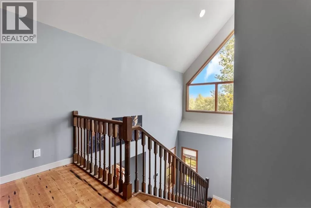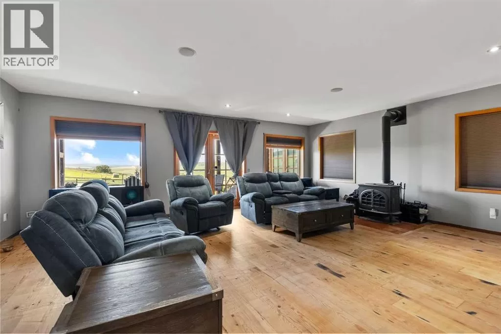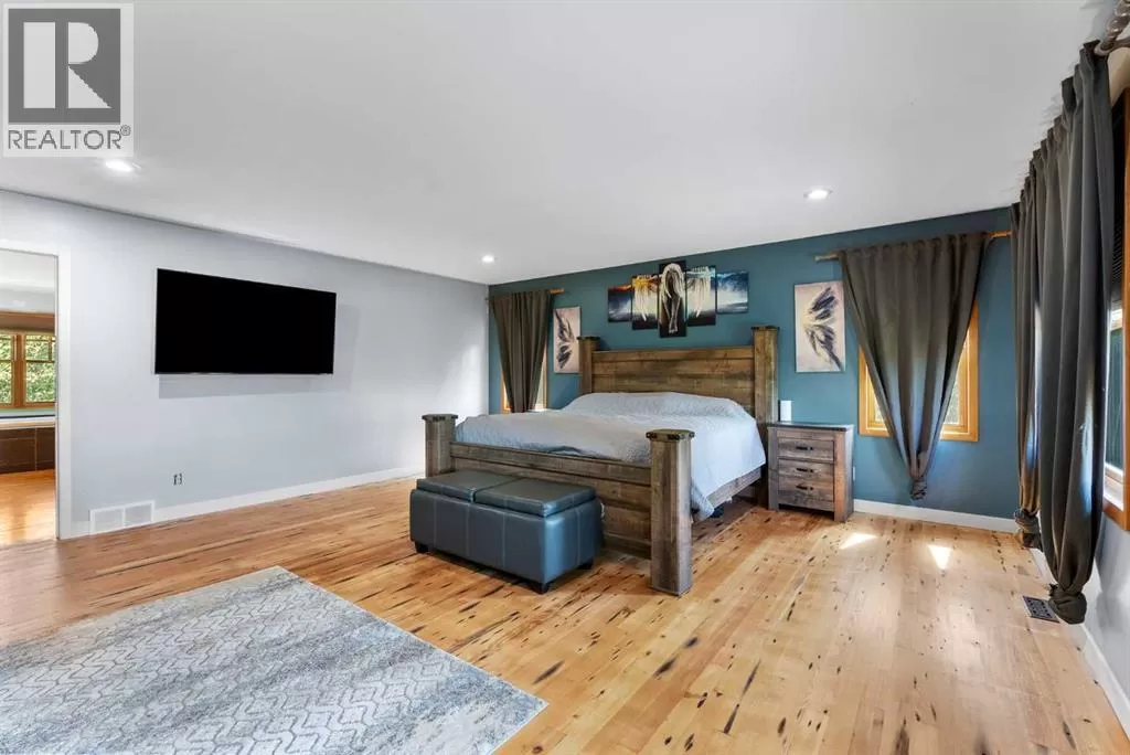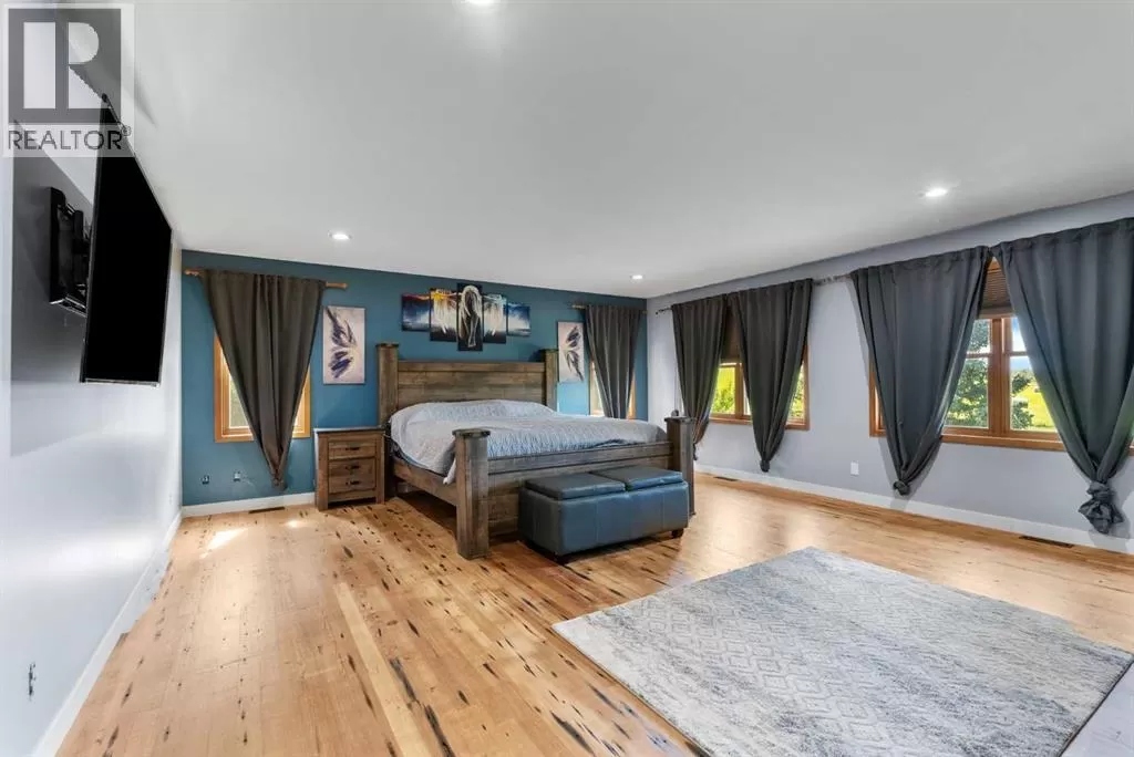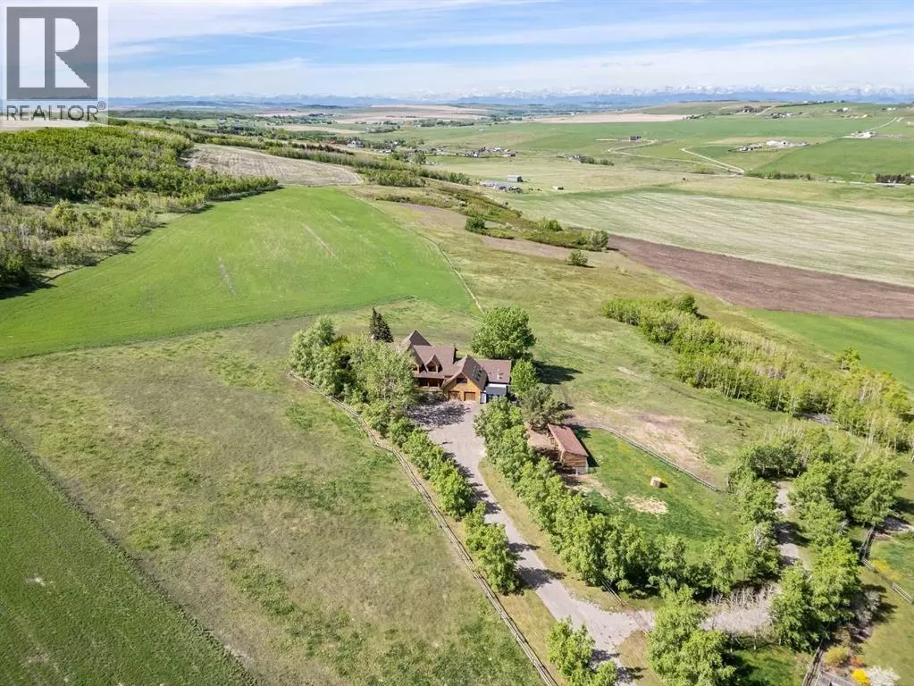 Discover the ultimate retreat at this secluded hilltop estate, boasting breathtaking mountain views and nestled on over 5 acres of lush land. YOU WILL NOT FIND A BETTER PRICE PER SQUARE FOOT HOME! This stunning cedar-wrapped residence features 8 spacious bedrooms and 8 bathrooms, offering nearly 8,200 square feet of beautifully developed space. Fully fenced and perfect for horses or family pets, this property provides ample room for a large family to thrive. Enjoy the serene surroundings, complete with mature trees and expansive views. The home includes two master bedrooms, a main floor bedroom, and a separate office space. A remarkable 1,363 square-foot recreation/flex room awaits, ideal for a dance or art studio, games room, or even converting back into an indoor pool. Step outside to unwind around the fire pit, take a dip in the new swim spa, or explore the picturesque walking and riding trails among the mature landscaping. With plenty of accommodations for out-of-town guests, including RV parking, this home is perfect for entertaining. Special features such as hand-scraped hardwood flooring throughout, granite countertops, upgraded appliances, a cozy wood-burning stove, and generously sized bedrooms and bathrooms enhance the appeal of this family haven. Conveniently located just a short 7-minute drive from Okotoks, this estate offers the perfect blend of privacy and accessibility. (id:27476)